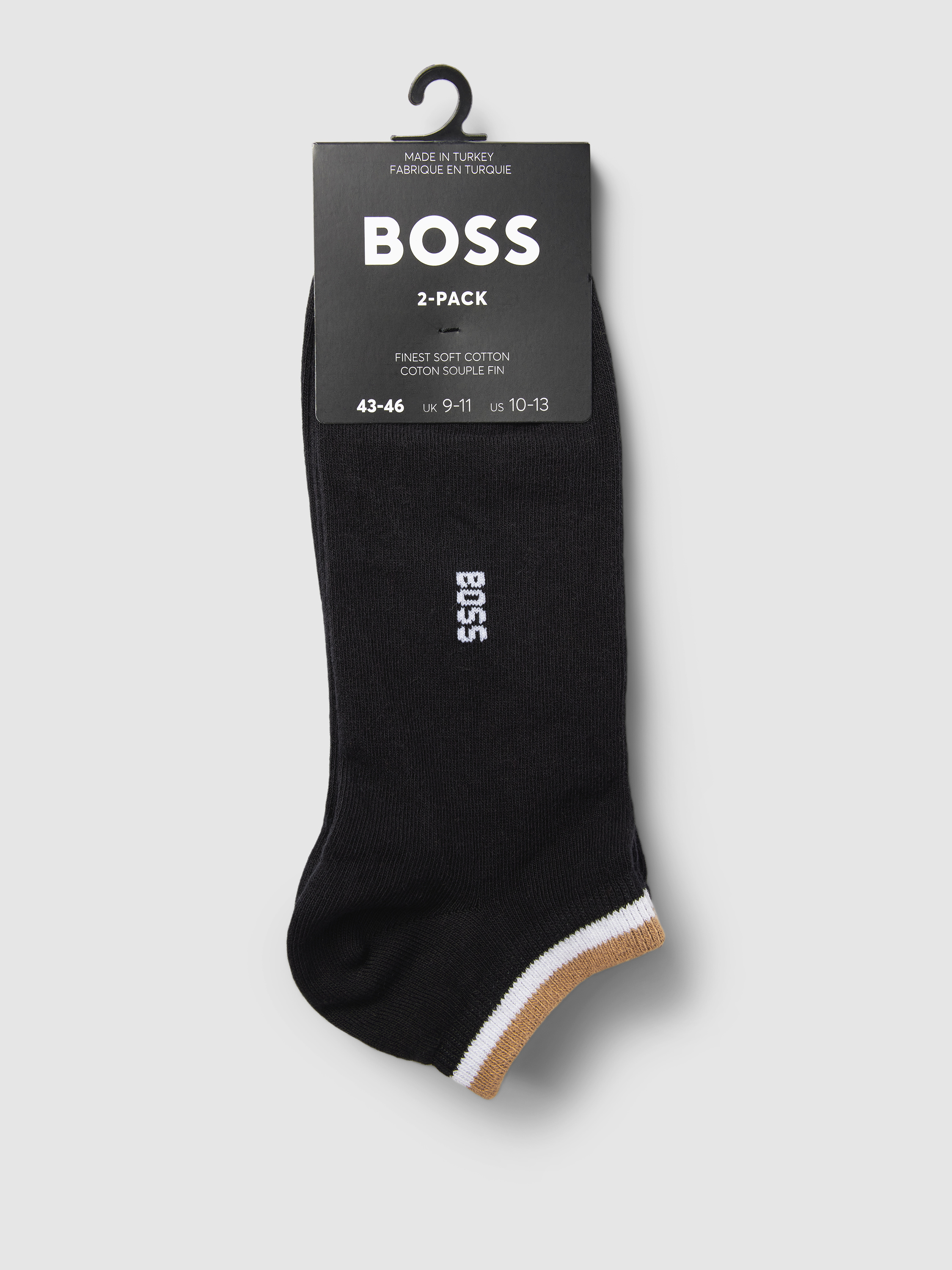 Die Herren Sneaker-Socken von BOSS im 2er-Pack zeigen sich in schlichter Optik: Unifarben gehalten, werden sie durch ein dezentes Label-Detail und feine Kontraststreifen aufgelockert. Der Baumwoll-Mix fühlt sich angenehm an und trägt sich im Alltag leicht. Durch ihre Passform eignen sie sich gut für sportliche Aktivitäten wie auch für entspannte Stunden.