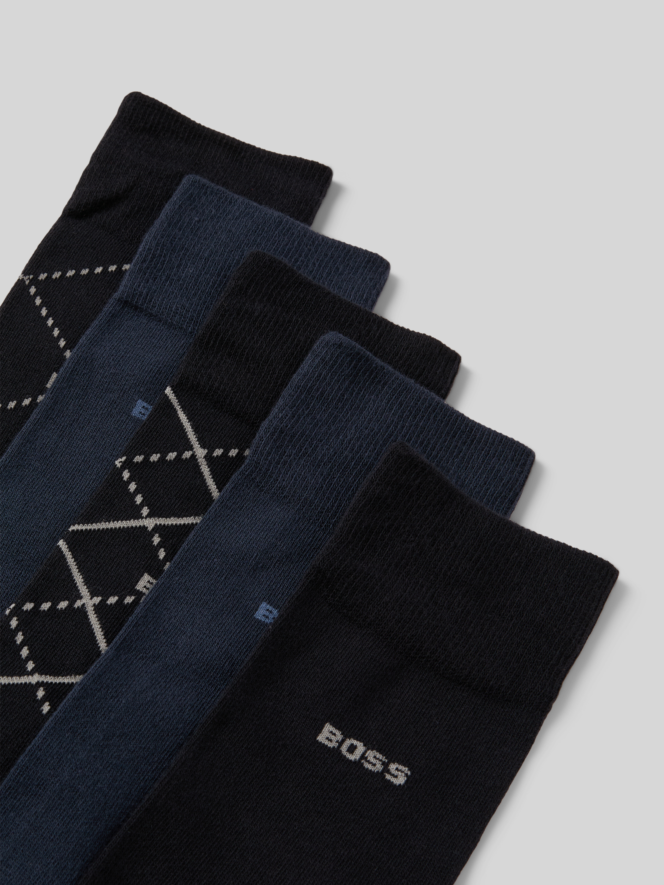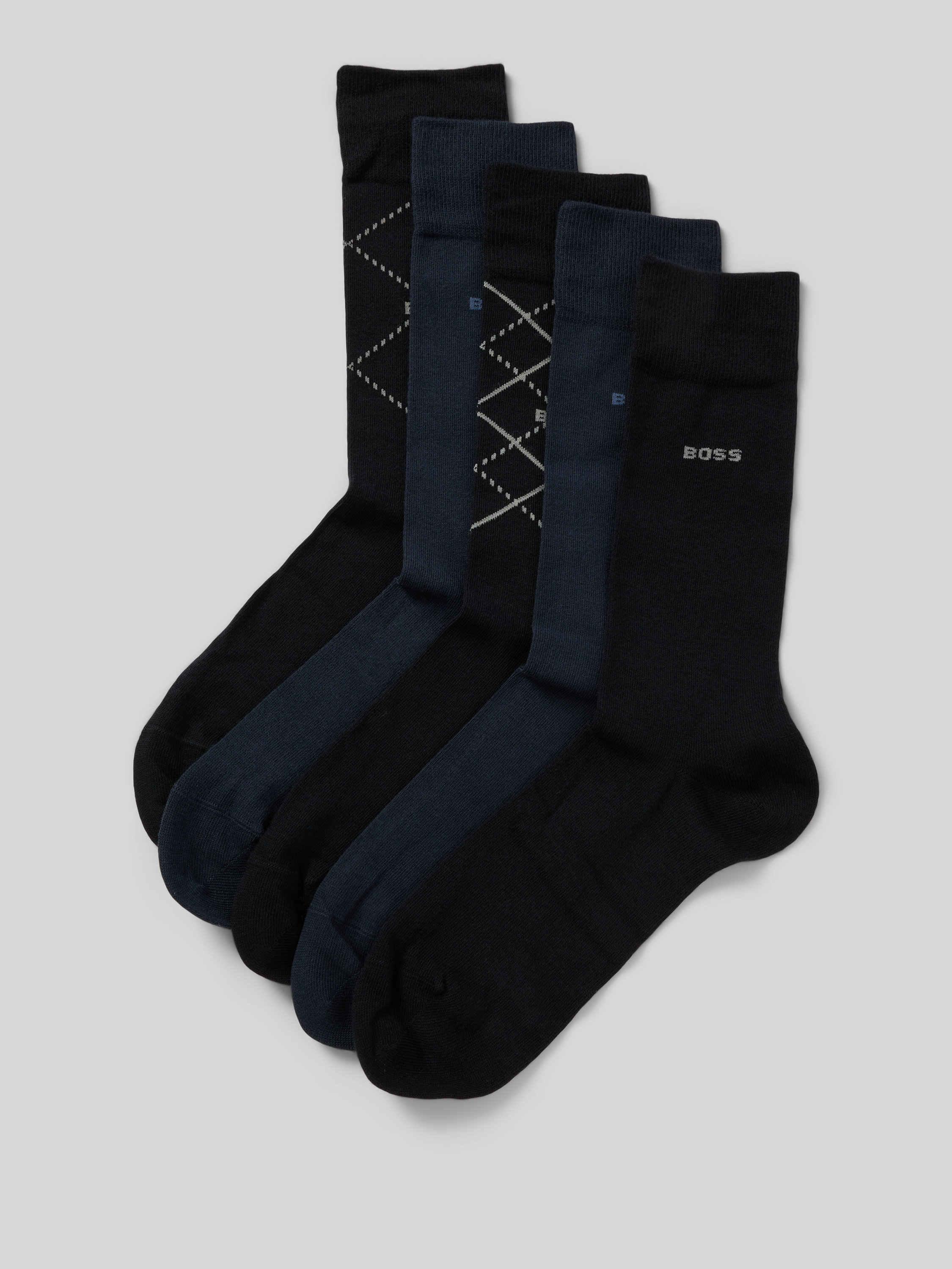 Die Herren Socken von BOSS im 5er-Pack zeigen sich in abwechslungsreicher Optik: mal unifarben, mal mit Tartan-Muster. Durch den feinen Baumwoll-Mix und die glatte Materialverarbeitung fühlen sie sich angenehm leicht auf der Haut an. Im Alltag sorgt der elastische Bundabschluss für guten Sitz, ohne einzuengen.