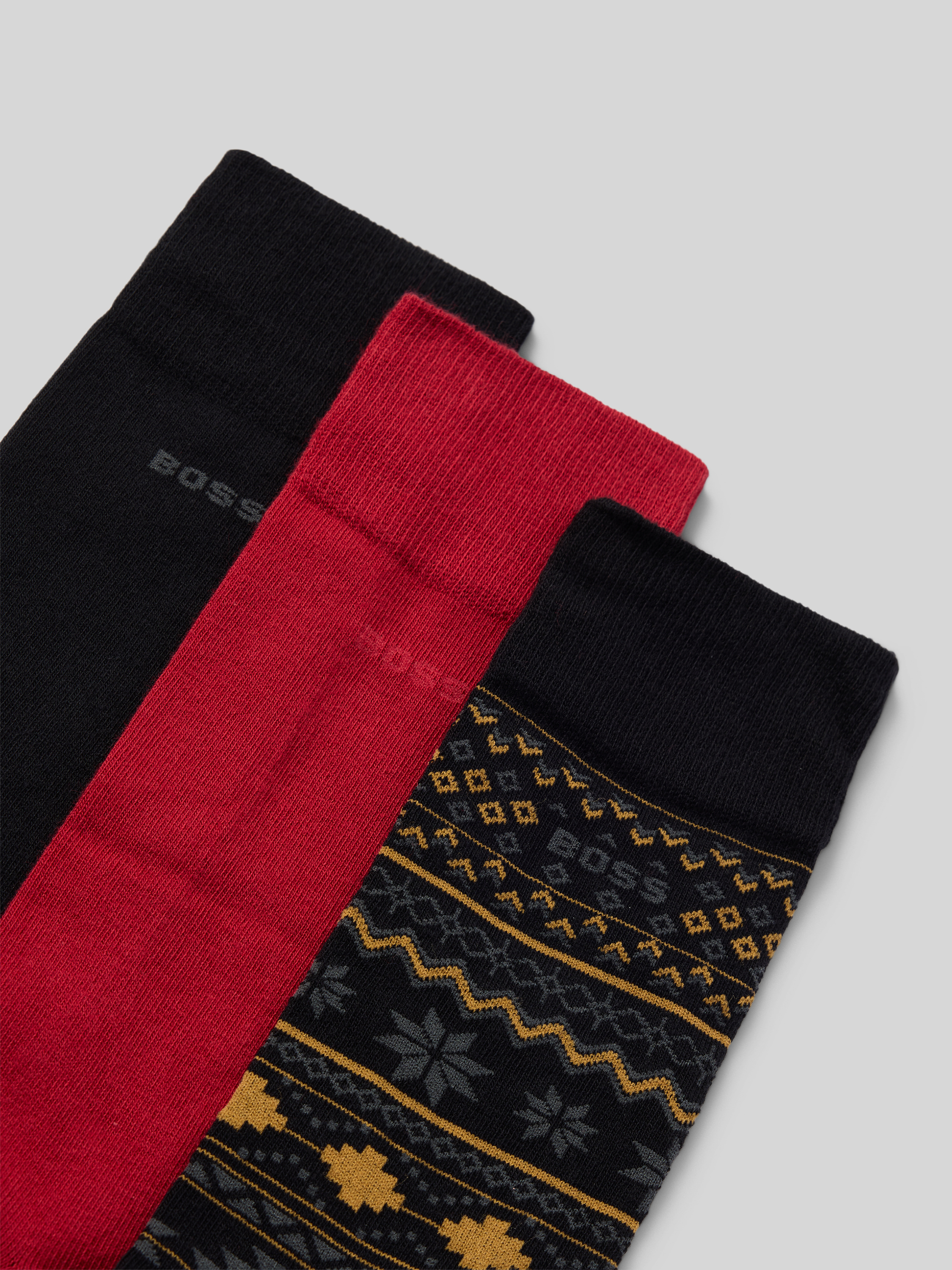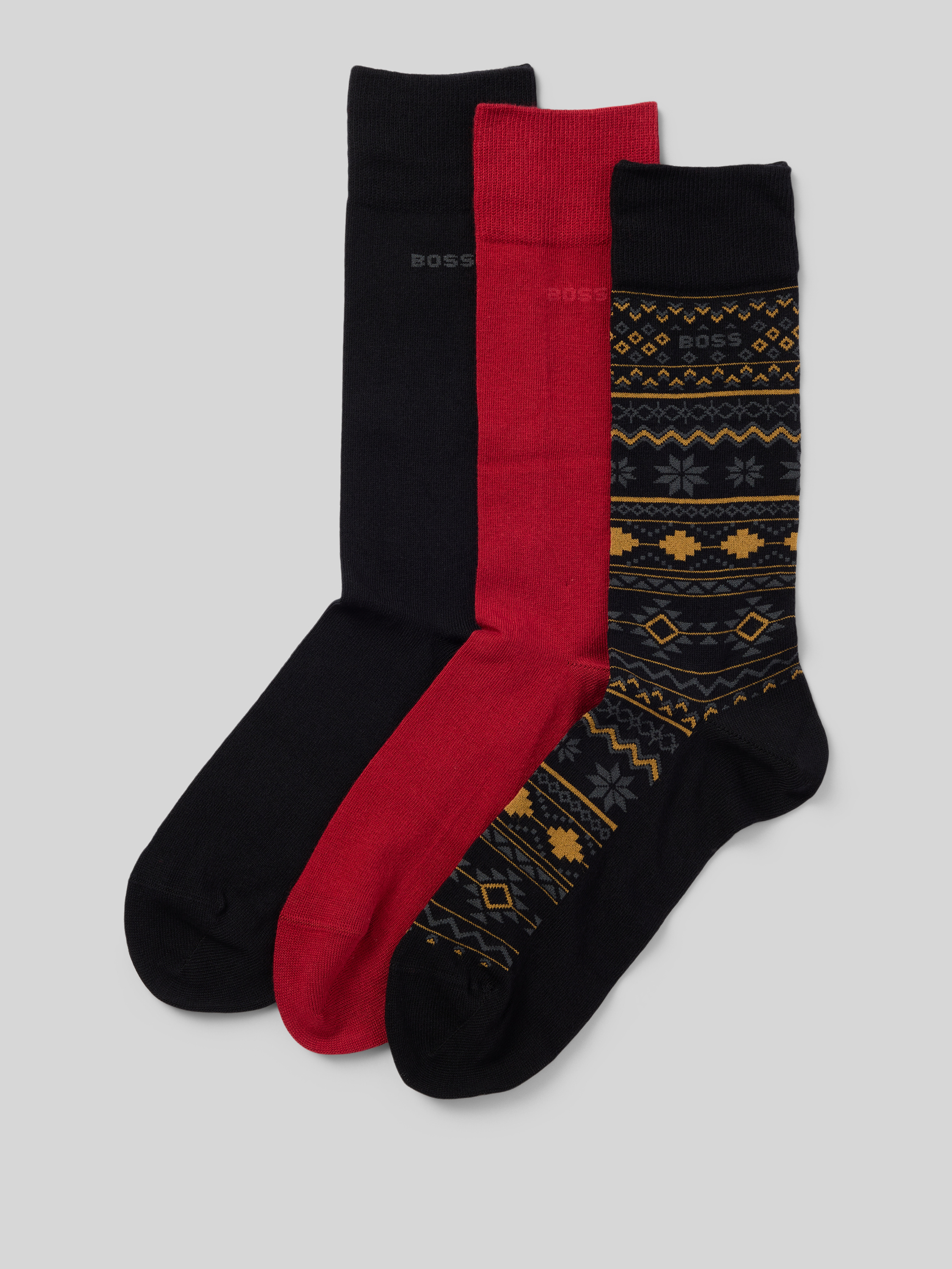 Das Herren Geschenkset Socken von BOSS, Modell Winter, kombiniert schlichte Optik: Unifarben mit dezentem Allover-Muster und einem kleinen Label-Schriftzug. Durch den Baumwoll-Mix fühlt sich das Material angenehm auf der Haut an und unterstützt den Tragekomfort im Alltag. Im praktischen Multipack: 3er-Pack findet man verschiedene Designs für unterschiedliche Anlässe.