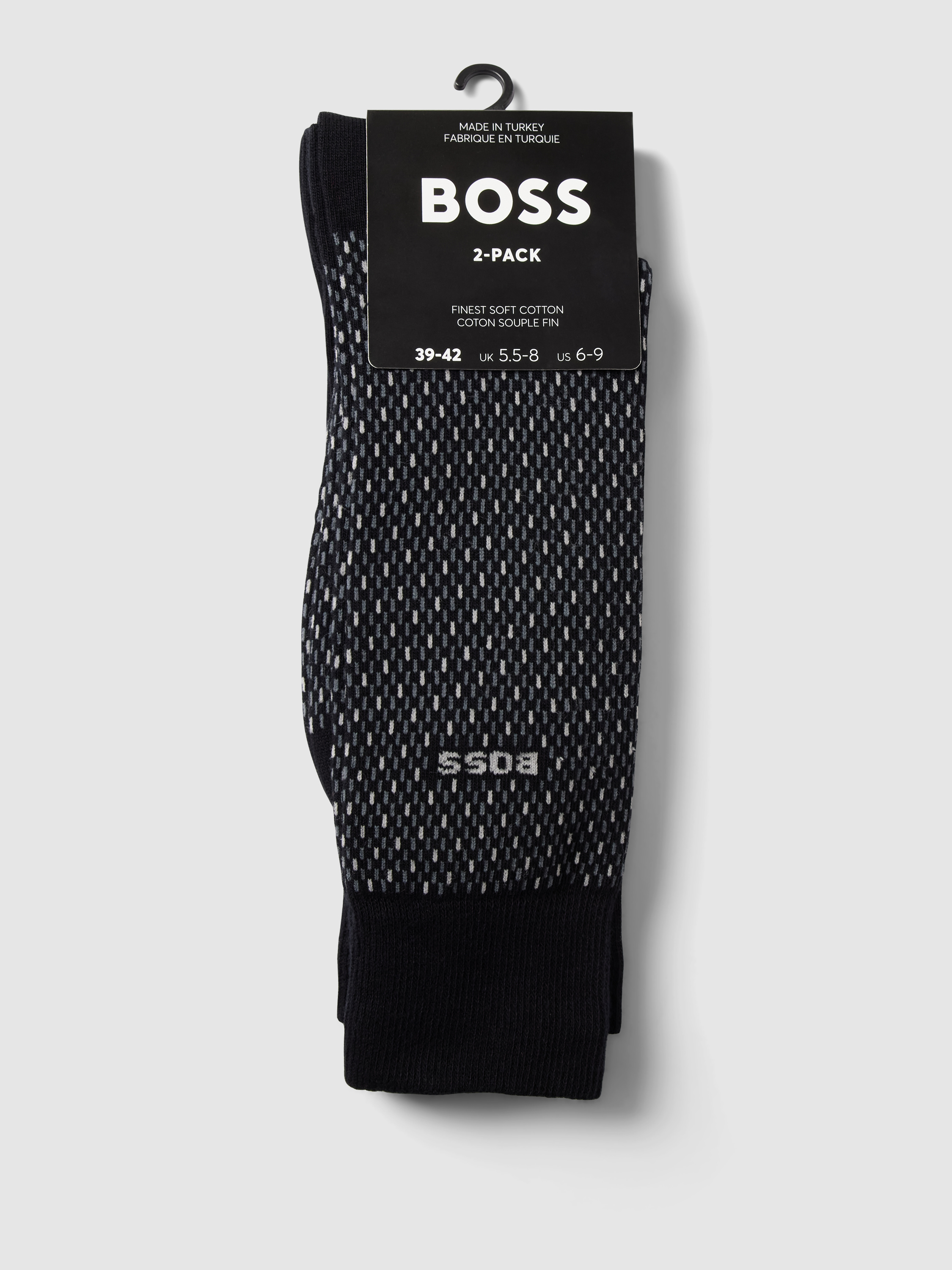 Die Herrensocken von BOSS im praktischen 2er-Pack kombinieren einen angenehmen Baumwoll-Mix mit einem dezenten Label-Detail. Durch die bequeme Passform lässt sich der Alltag entspannt gestalten, während die formstabilen Bündchen zuverlässig sitzen. So eignet sich das Modell für vielseitige Anlässe.