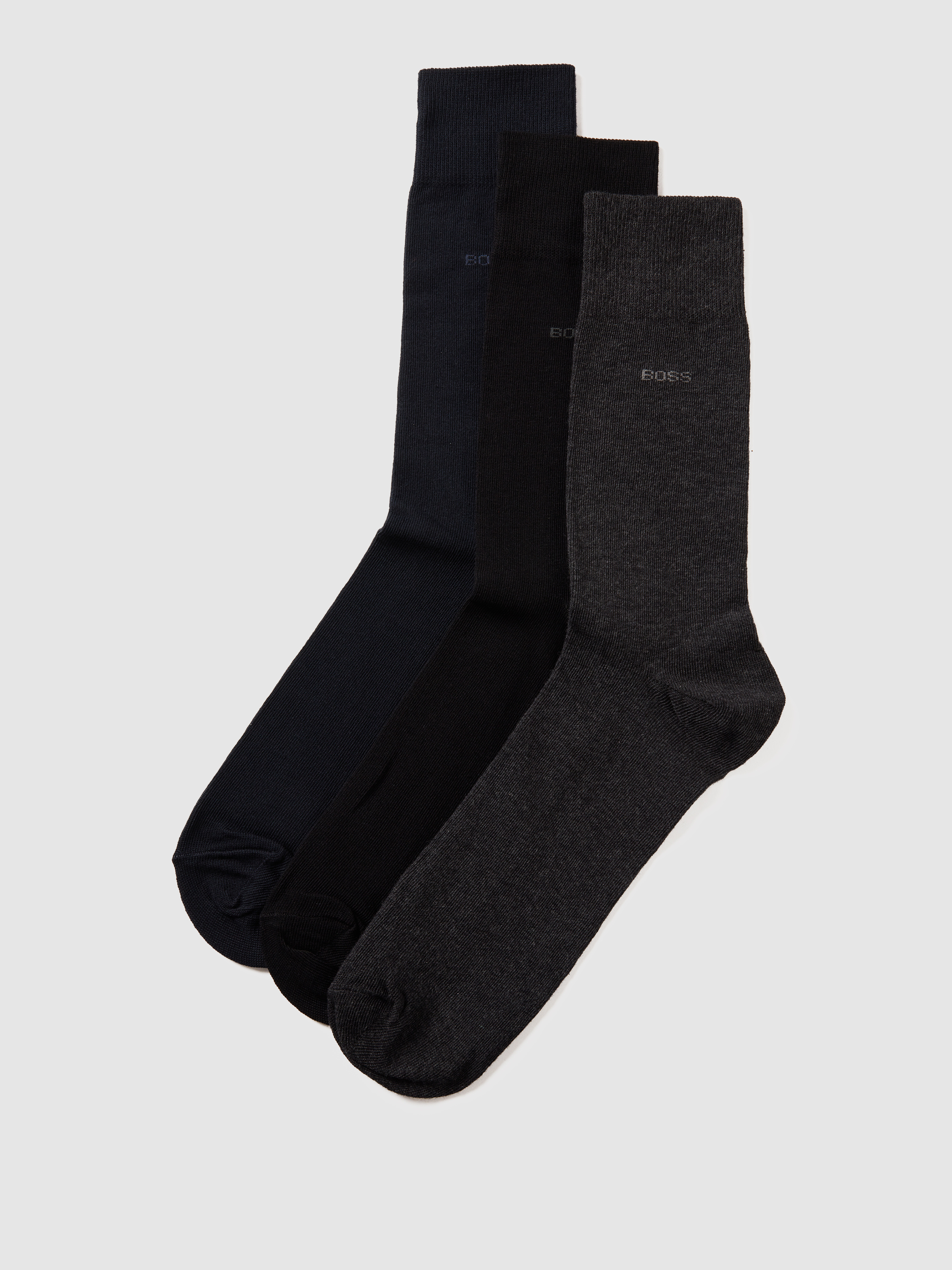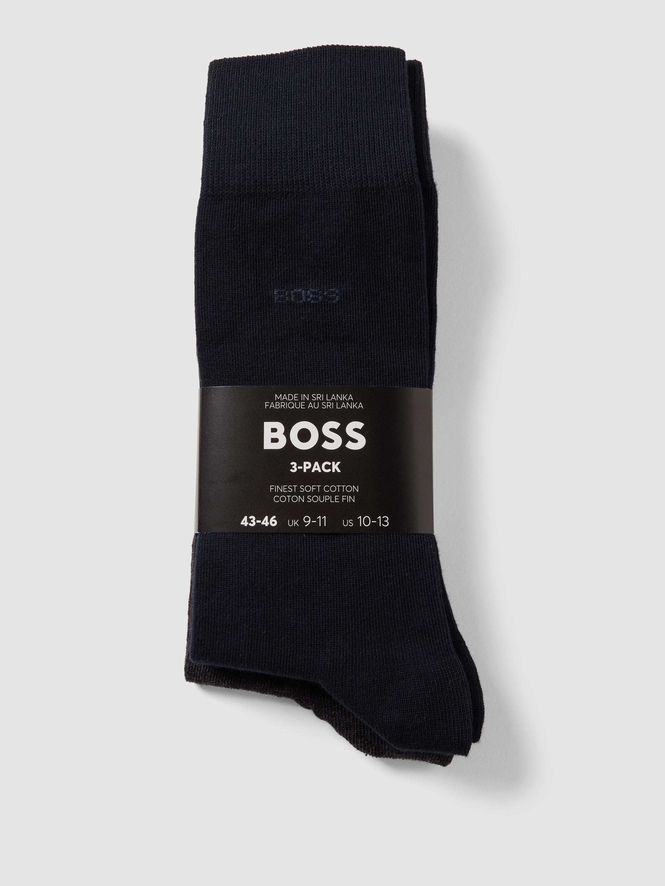 Die Herren Socken von BOSS im 3er-Pack vereinen Komfort und Stil. Der Baumwoll-Mix mit Stretch-Anteil sorgt für eine angenehme Passform, während das unifarbene Design mit dezentem Label-Detail überzeugt. Die Rippenbündchen bieten zusätzlichen Halt und unterstützen den täglichen Tragekomfort.