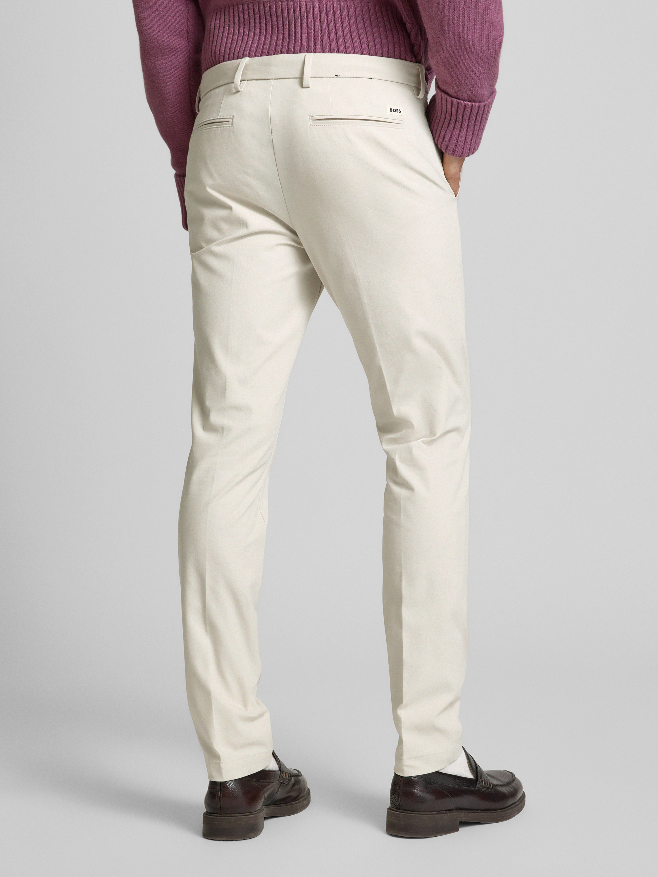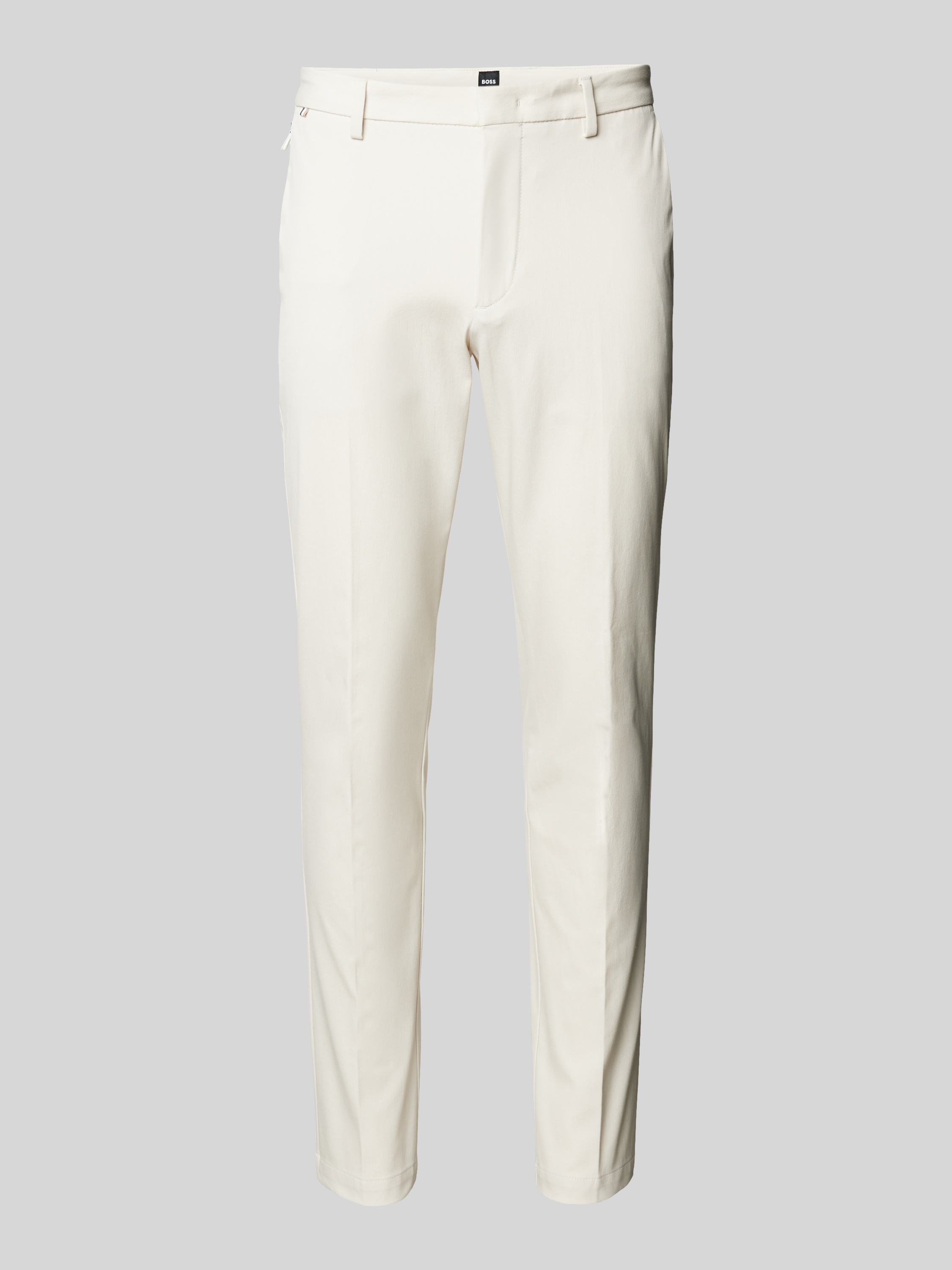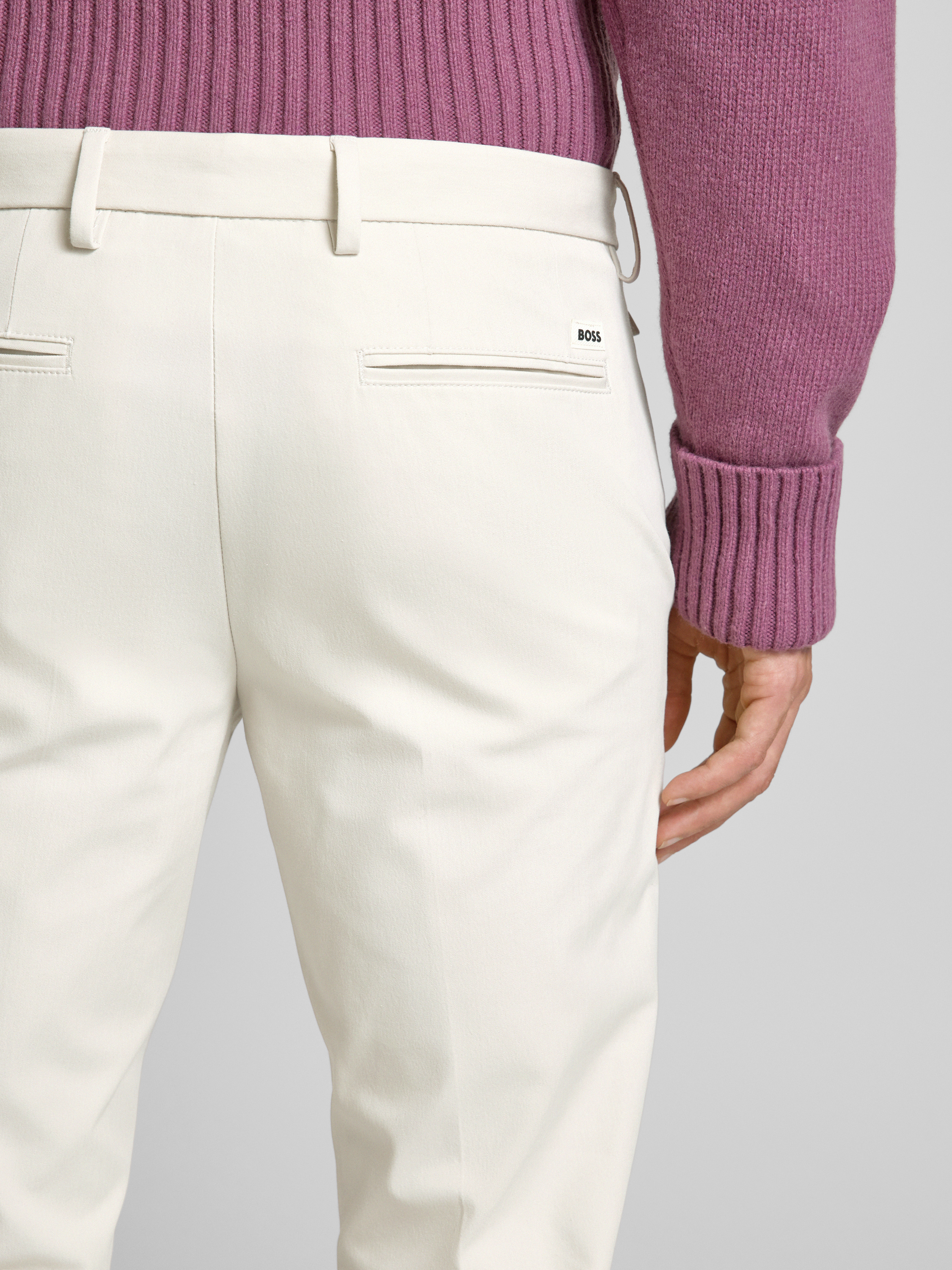 Die Stoffhose 'Kaito' von BOSS kombiniert einen geraden Schnitt mit einem Baumwoll-Mix, der für angenehmen Tragekomfort sorgt. Französische Eingrifftaschen verleihen der Hose eine elegante Note, während die Gesäßtaschen praktische Funktionalität bieten. Ideal für einen stilvollen und gleichzeitig bequemen Auftritt.