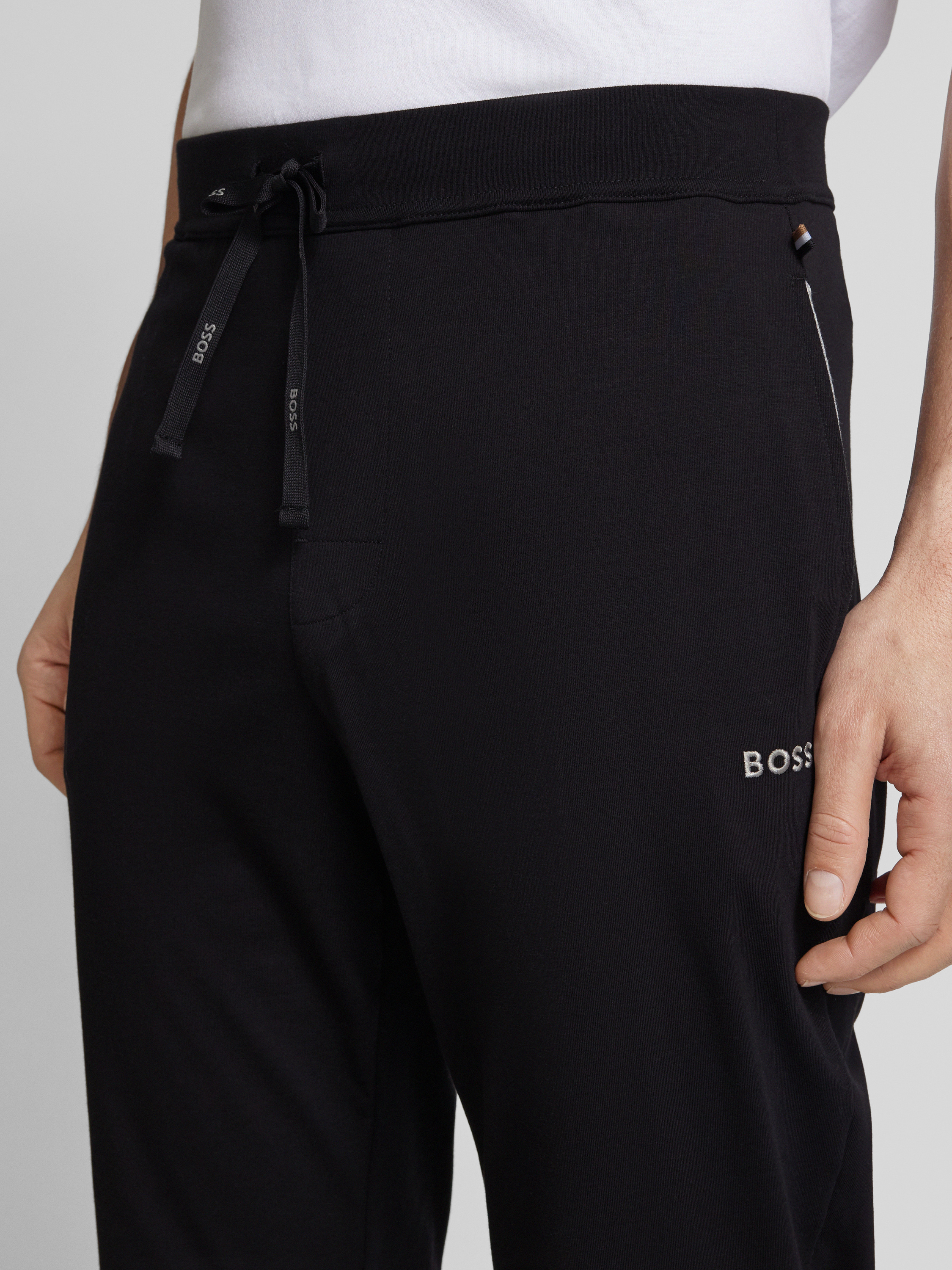 Die Sweatpants von BOSS, Modell 'Mix&Match', sind aus einem angenehmen Baumwoll-Mix mit Stretch-Anteil gefertigt und bieten durch den Regular Fit hohen Tragekomfort. Das unifarbene Design wird durch ein dezentes Label-Stitching akzentuiert. Der elastische Bund mit Tunnelzug sorgt für eine individuelle Passform.