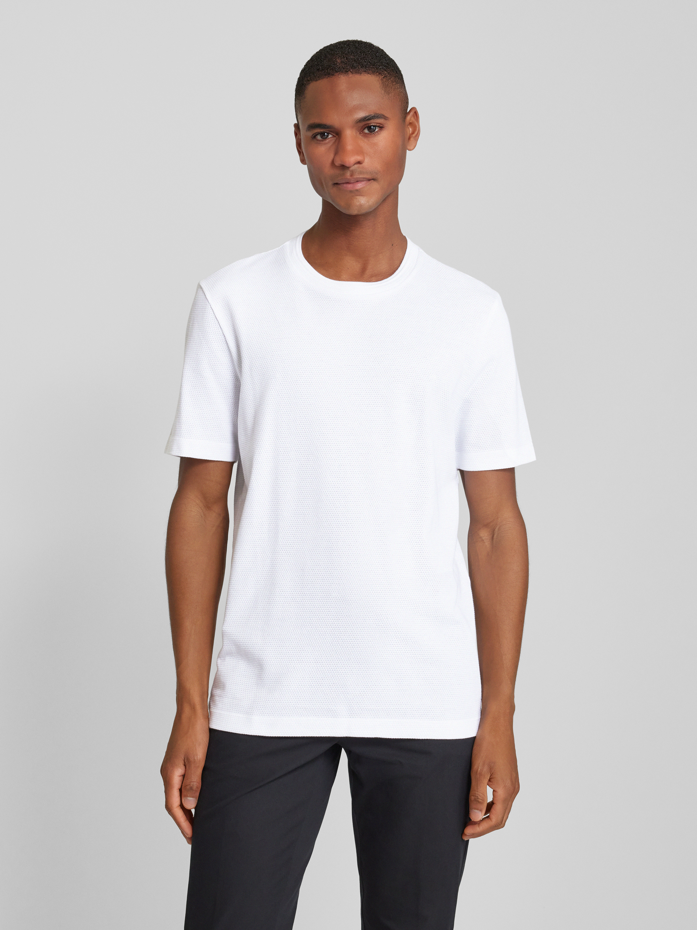 BOSST-Shirt mit geripptem Rundhalsausschnitt Modell 'TIBURT' in weiss
