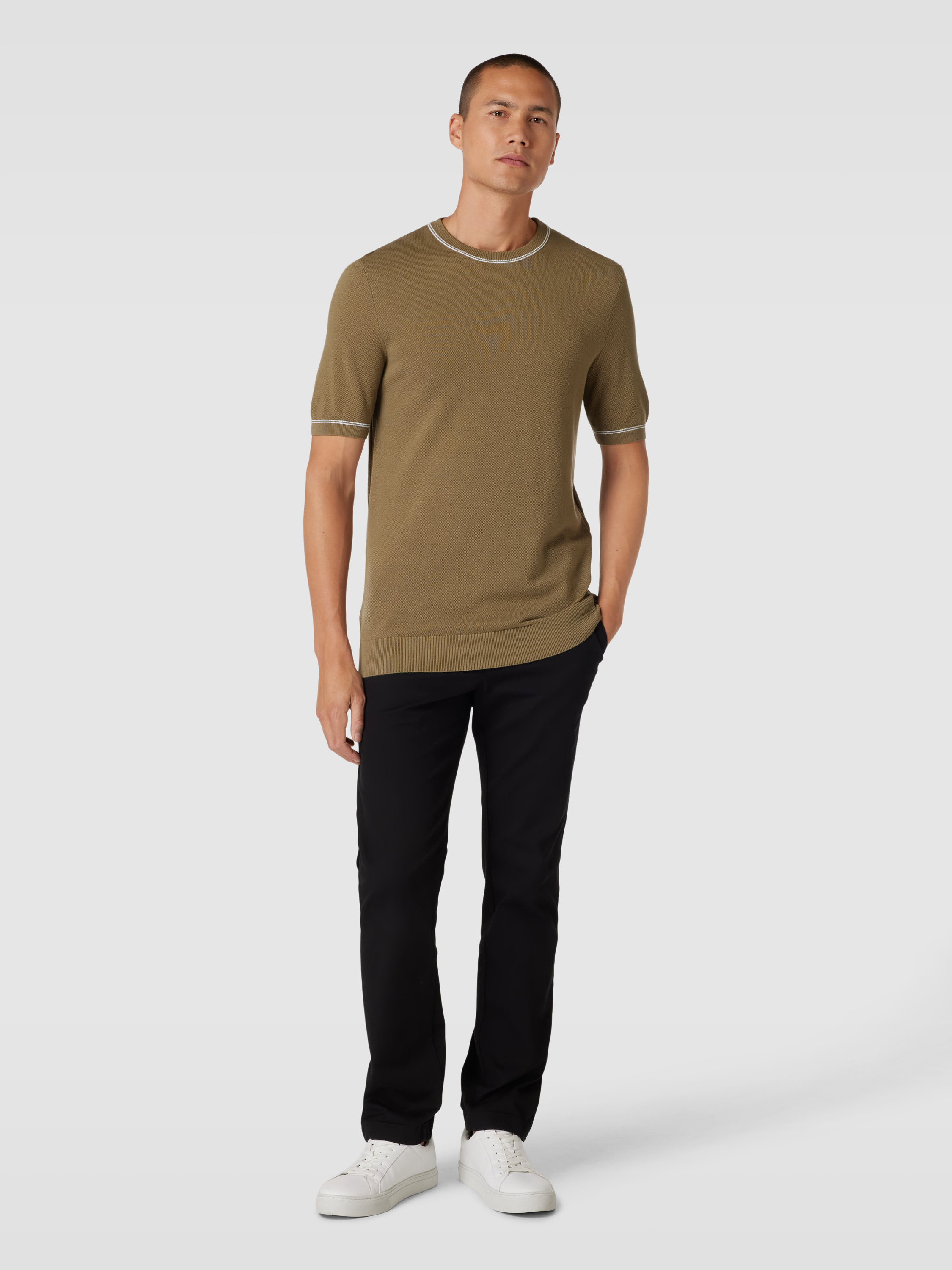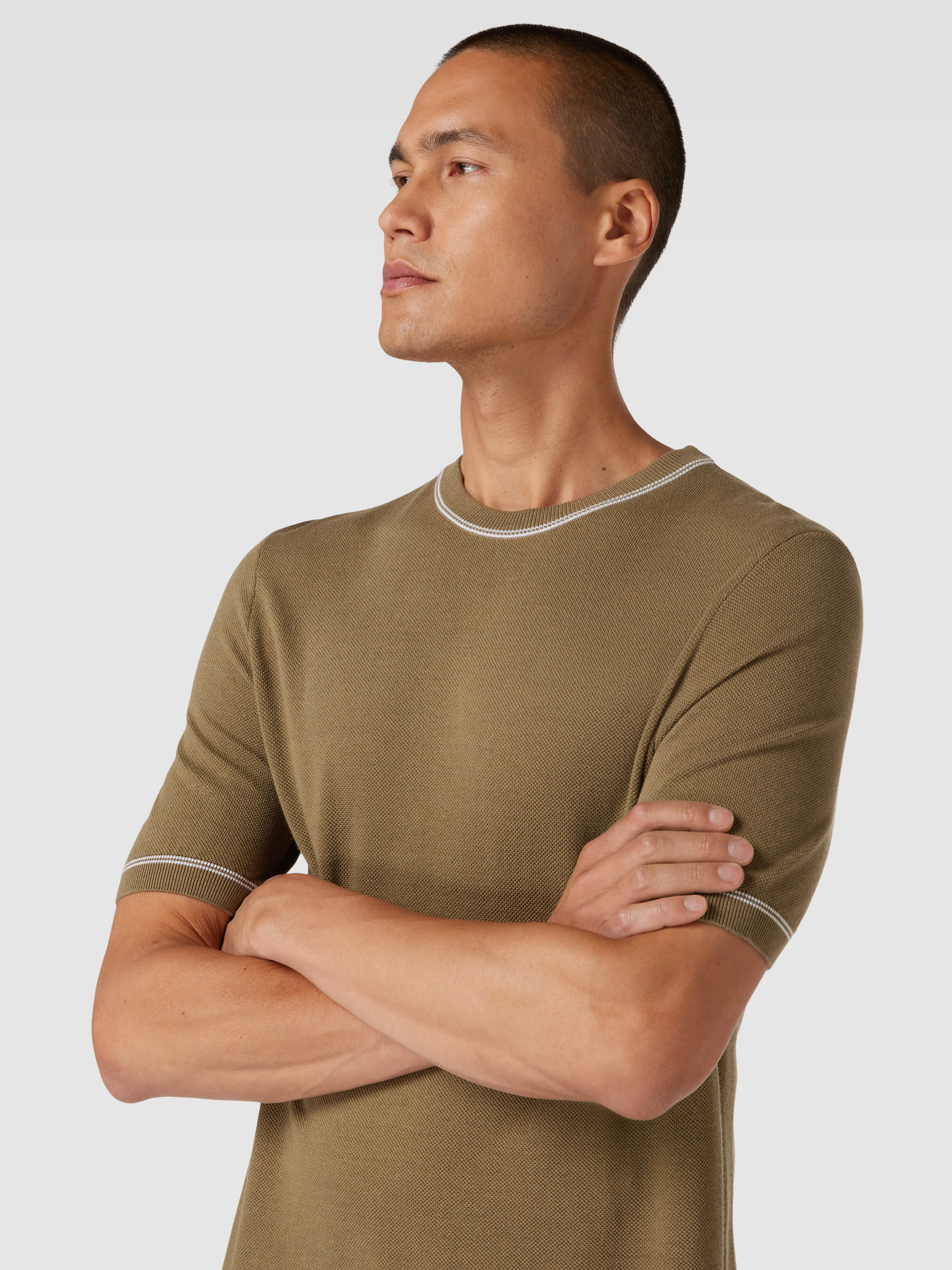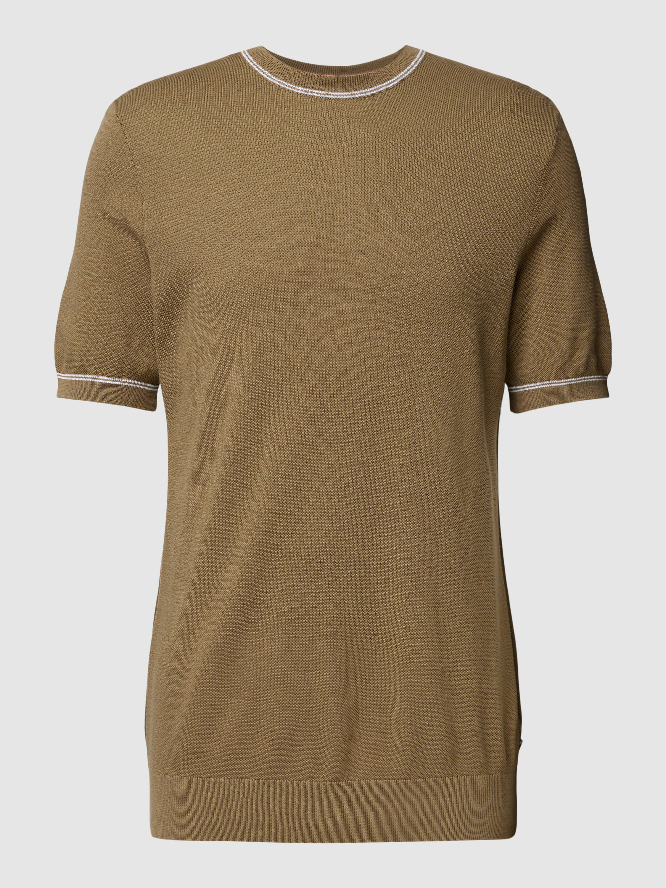 Das Herren T-Shirt von BOSS, Modell 'Oricco', kombiniert einen Baumwoll-Lyocell-Mix mit einem regulären Schnitt für optimalen Tragekomfort. Das unifarbene Design wird durch dezente Kontraststreifen akzentuiert, die eine stilvolle Note verleihen. Ein Rundhalsausschnitt und gerippte Abschlüsse runden den Look ab.