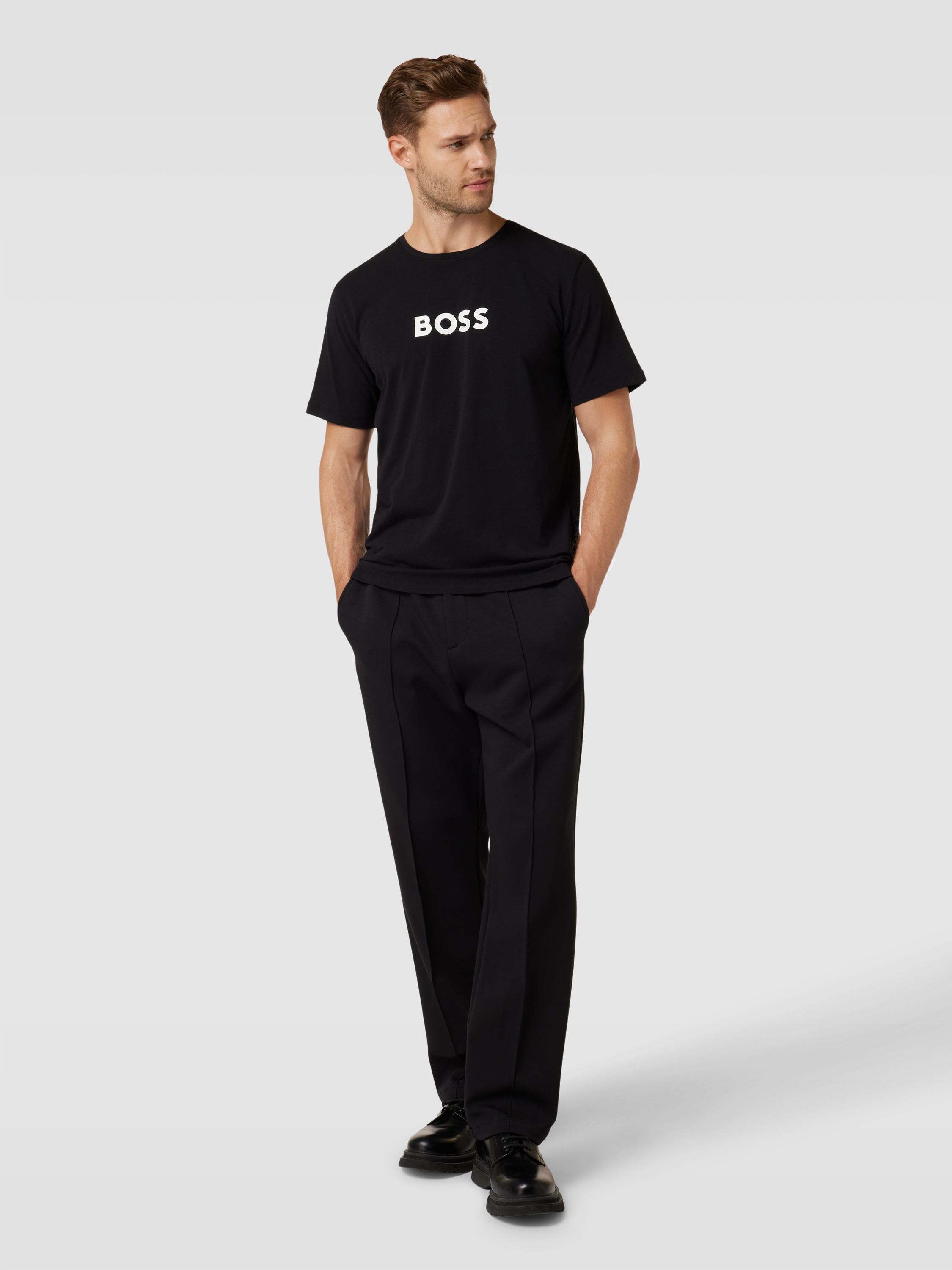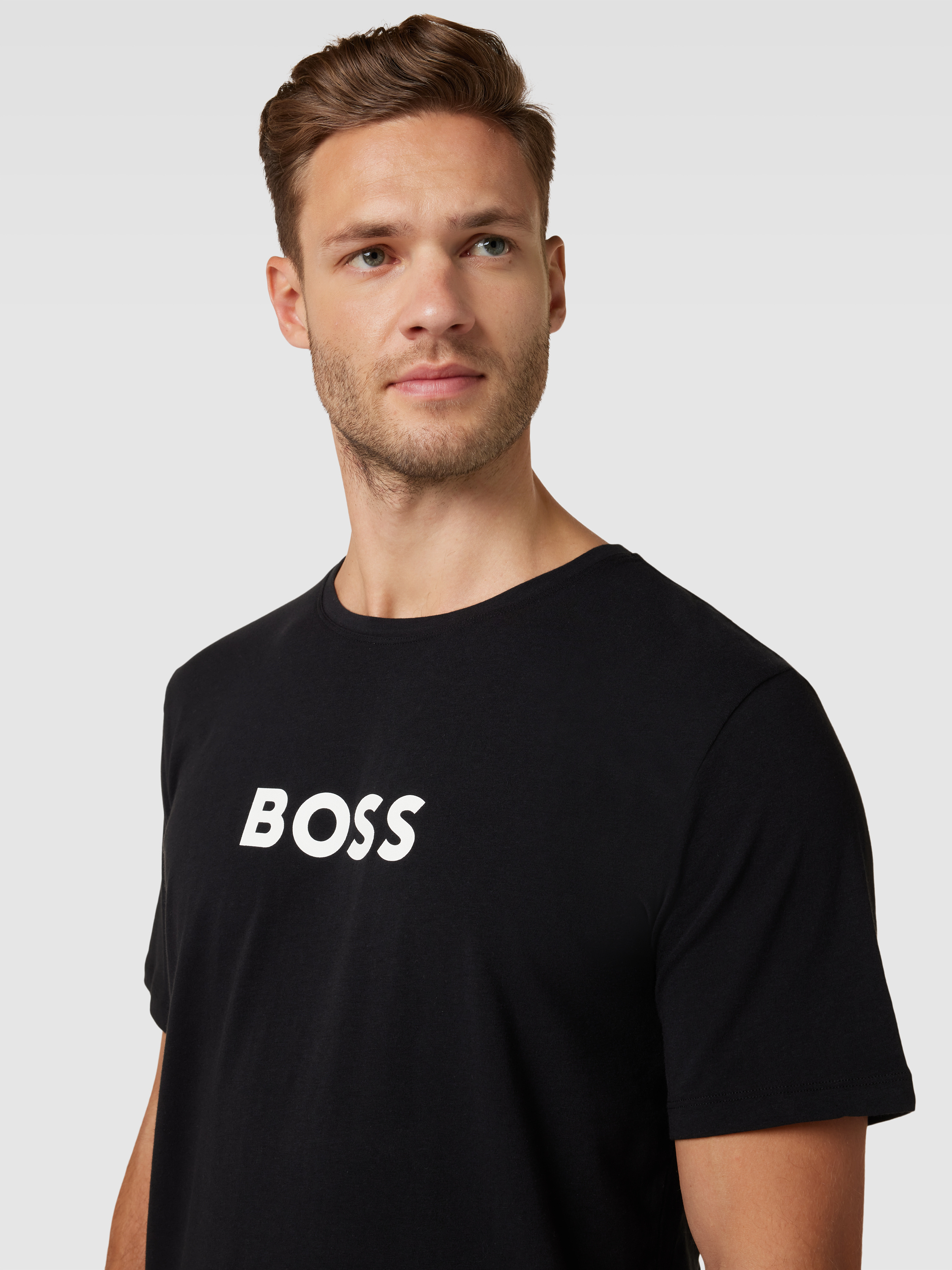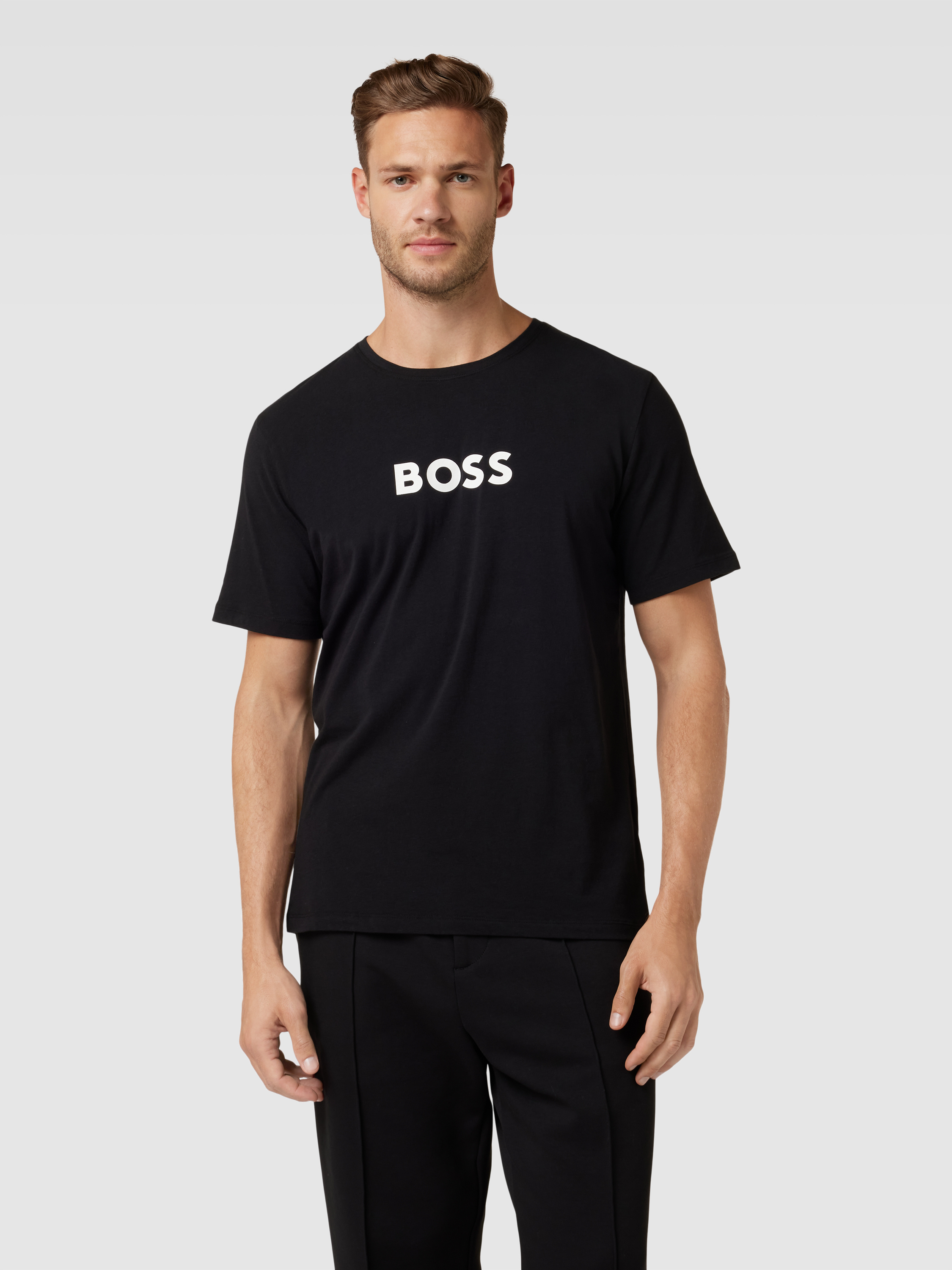 Das Herren T-Shirt von BOSS vereint schlichte Eleganz mit einem markanten Label-Print. Aus reiner Baumwolle gefertigt, sorgt es für ein angenehmes Tragegefühl, während die gerade Passform eine vielseitige Kombination mit verschiedenen Outfits ermöglicht. Der klassische Rundhalsausschnitt rundet das unifarbene Design harmonisch ab.