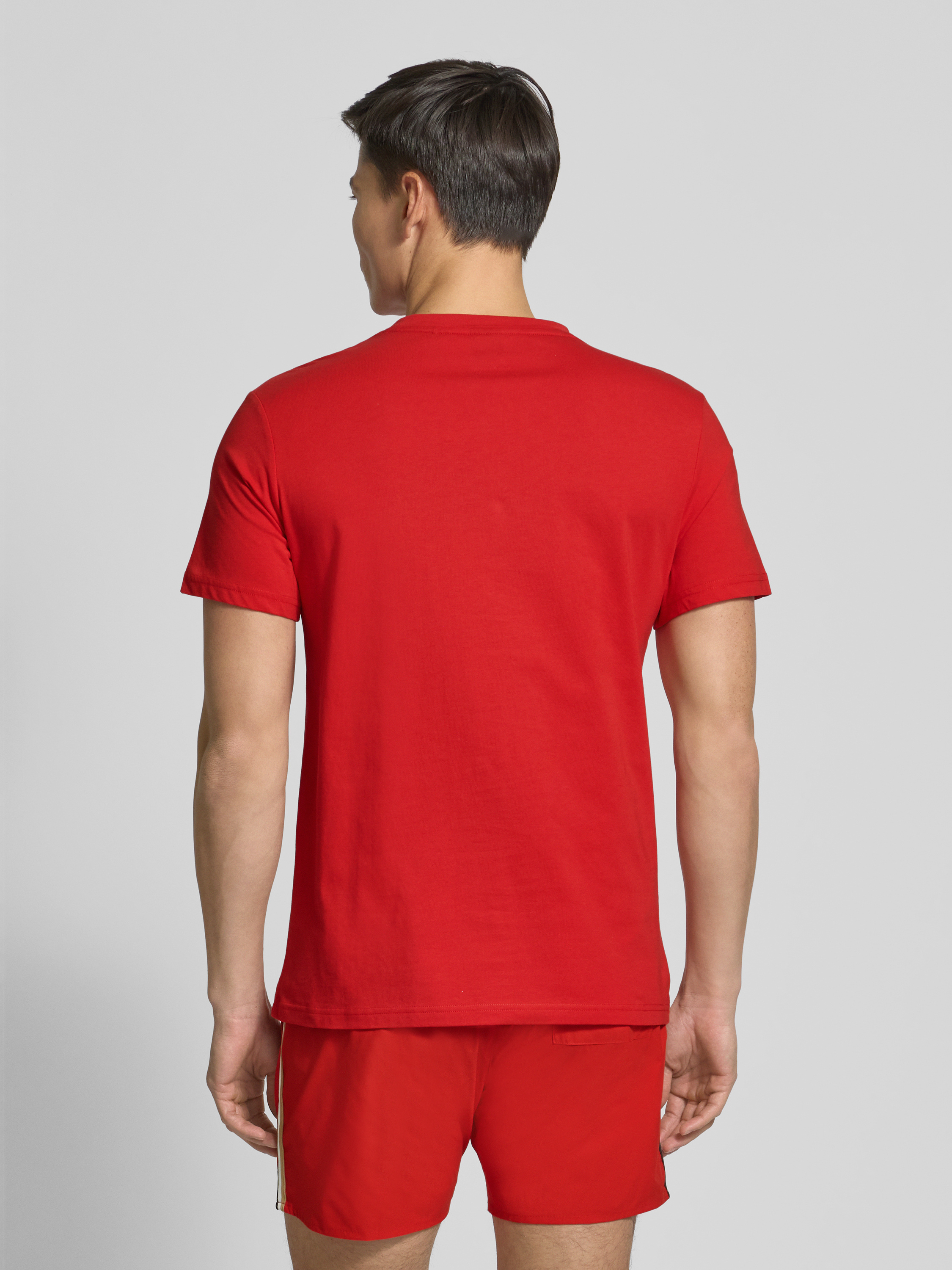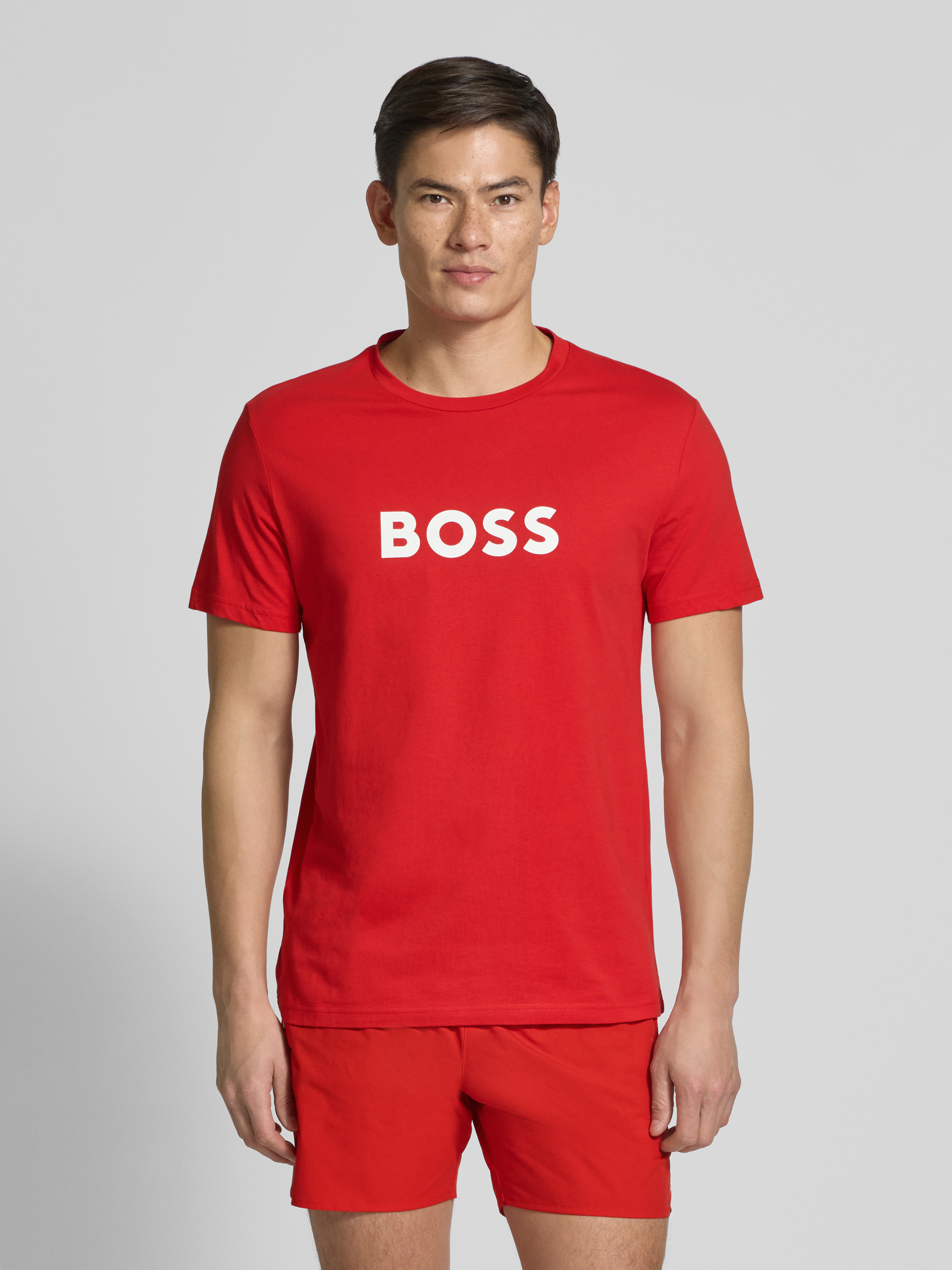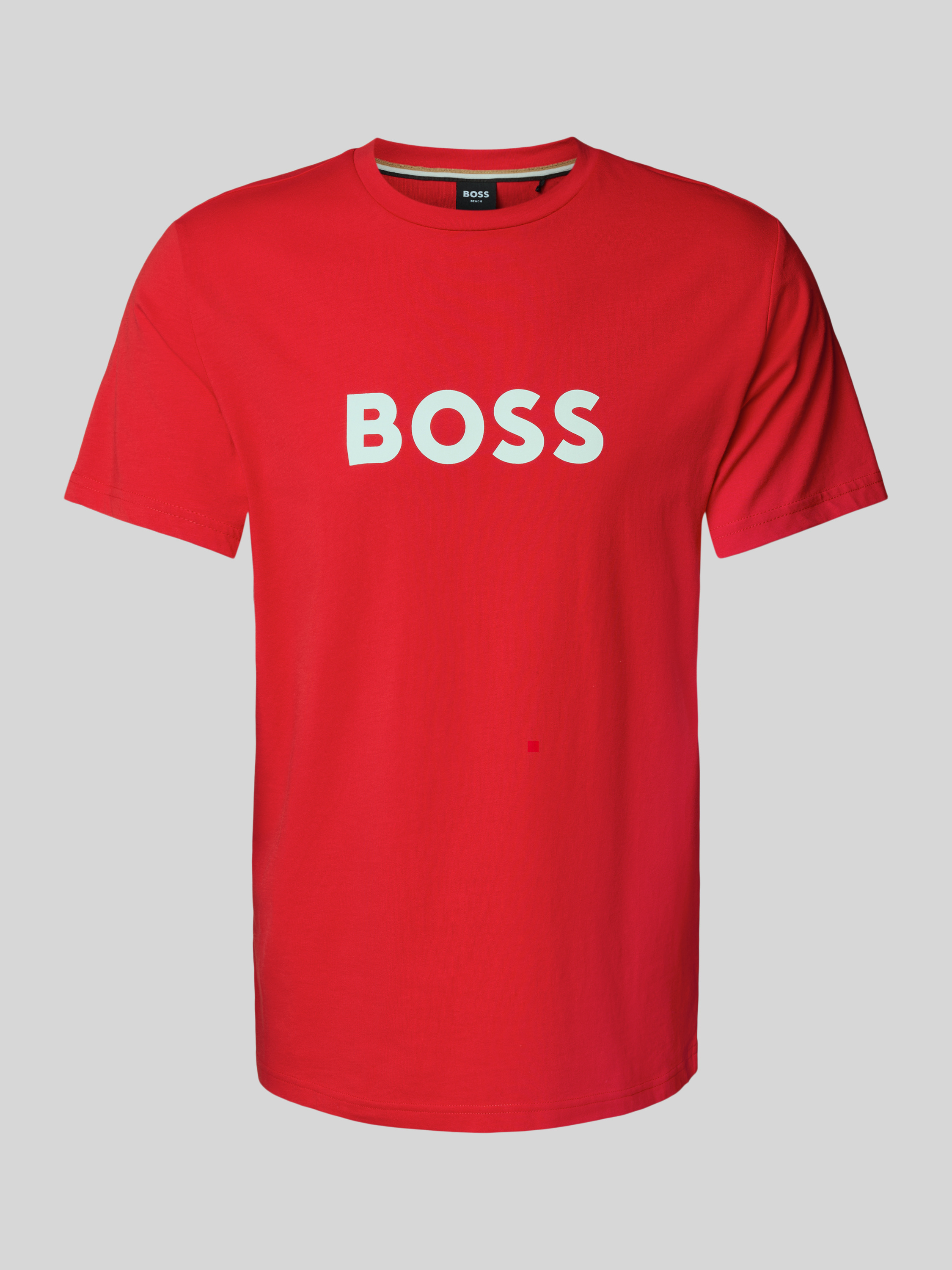 Das Herren T-Shirt von BOSS aus reiner Baumwolle eignet sich ideal für einen lässigen, aber stilbewussten Auftritt. Der gerade Schnitt und der Rundhalsausschnitt sorgen für angenehmen Tragekomfort, während der markante Label-Print dem Outfit eine moderne Note verleiht.