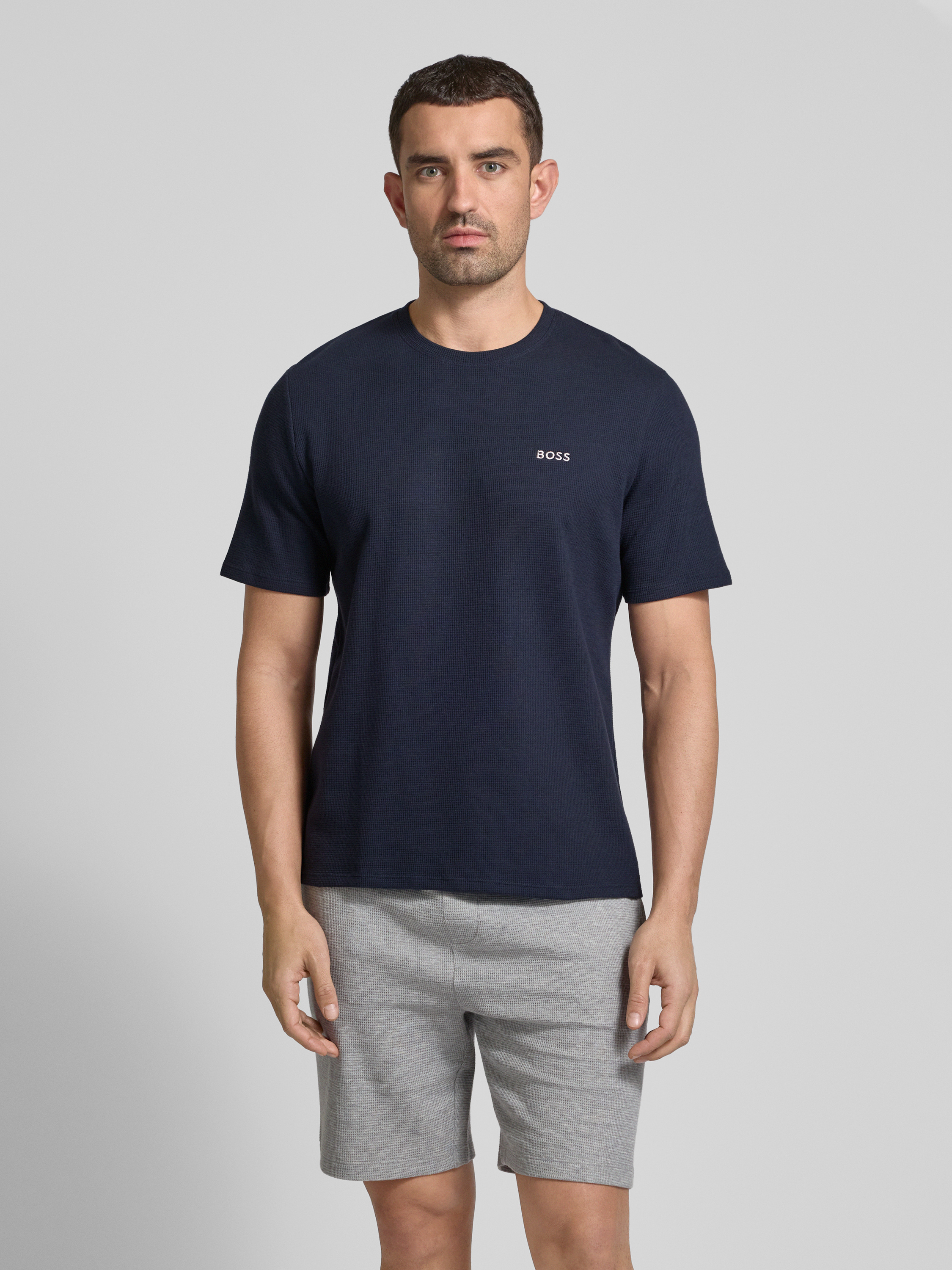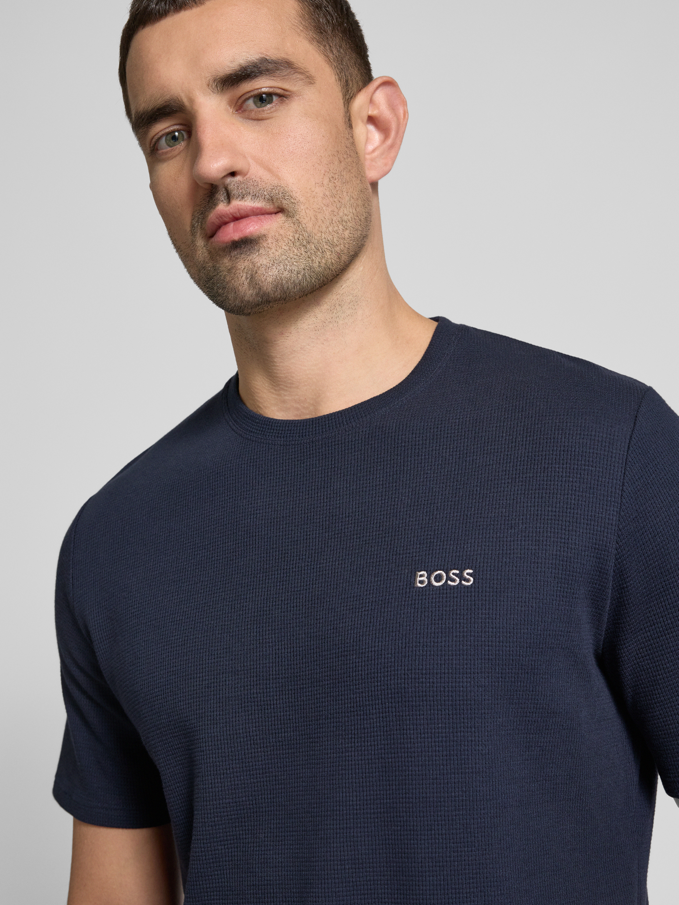 BOSST-Shirt mit Label-Stitching in marine