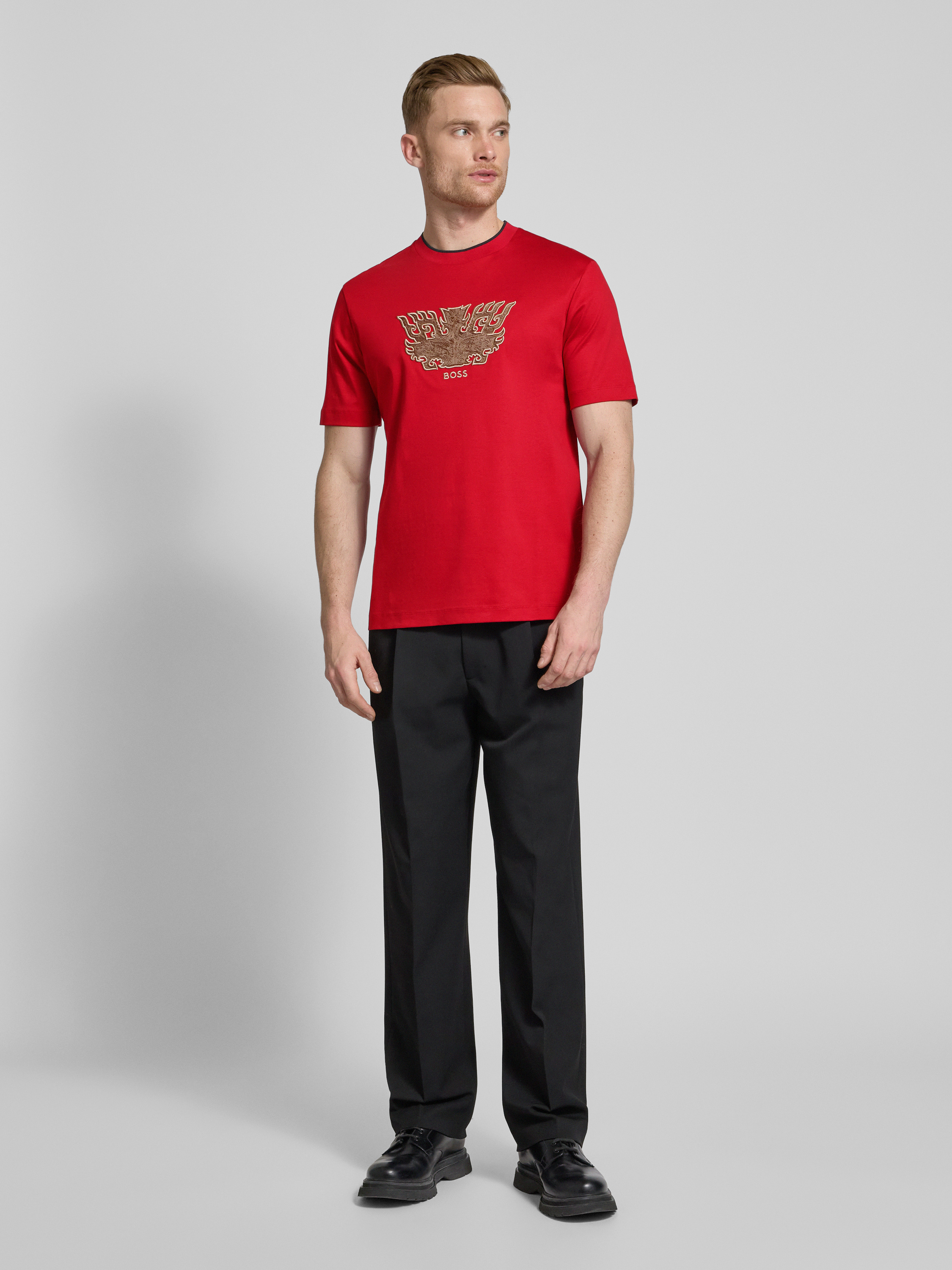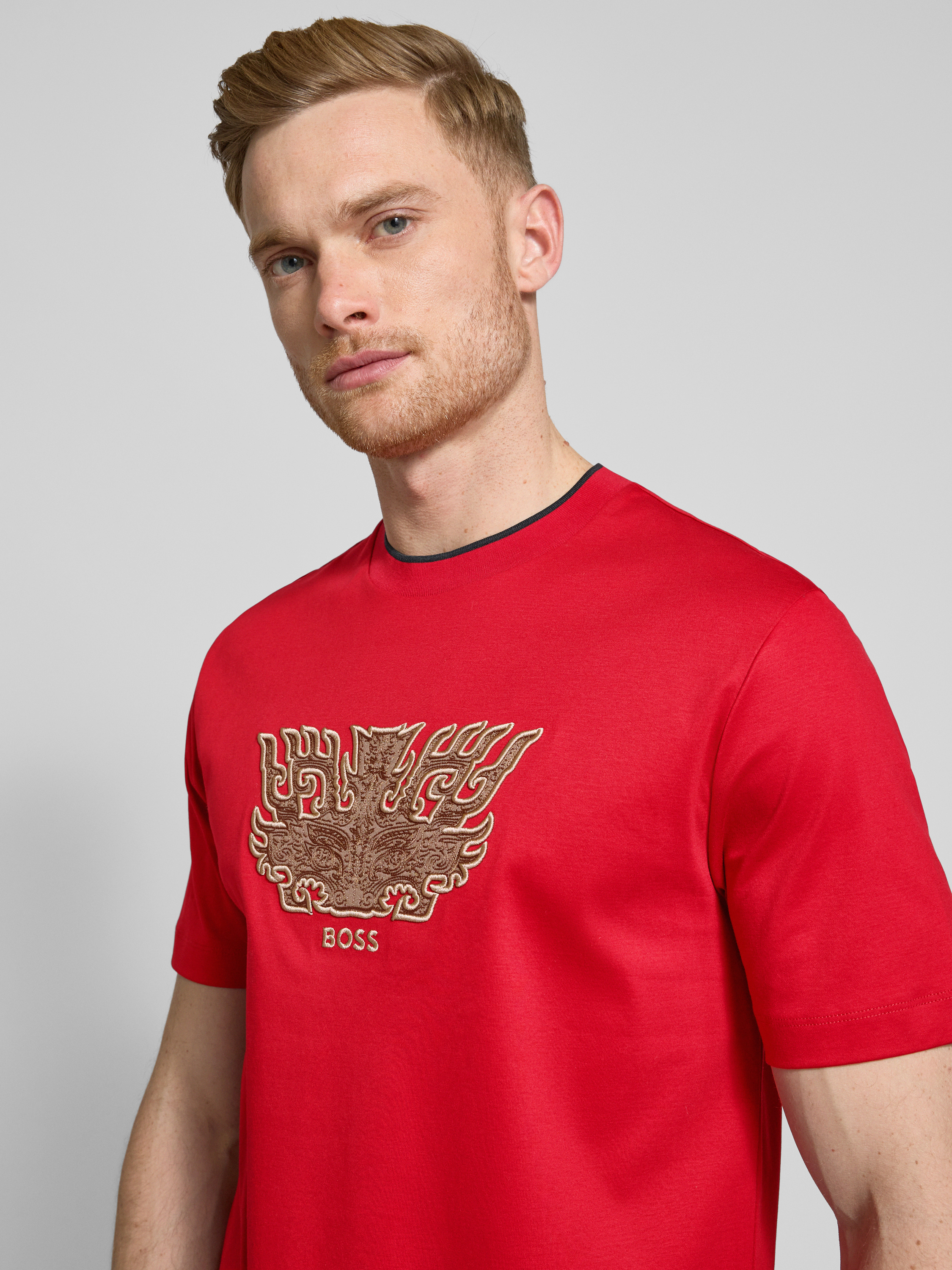 BOSST-Shirt mit Motiv- und Label-Stitching Modell 'Taut' in rot