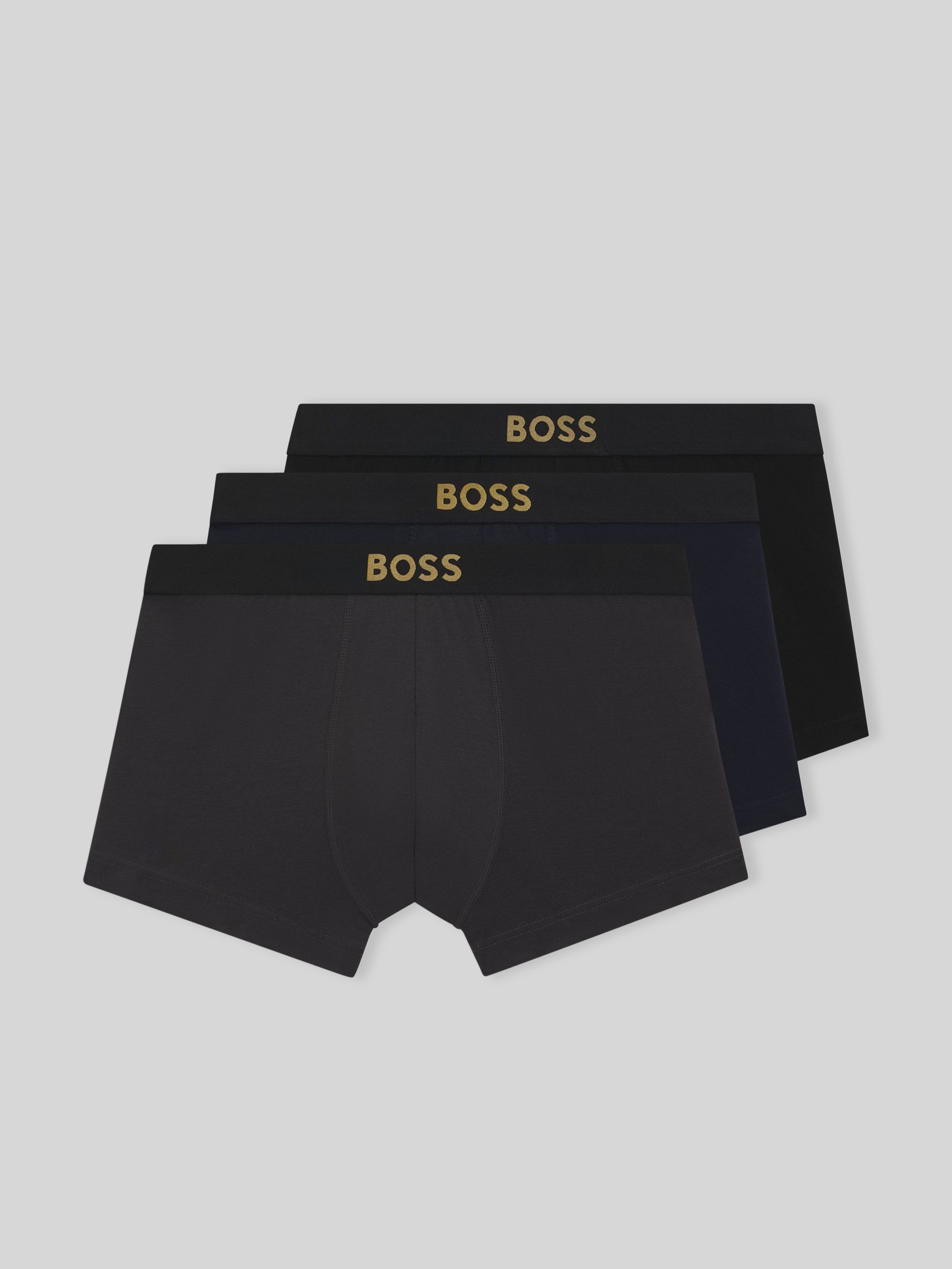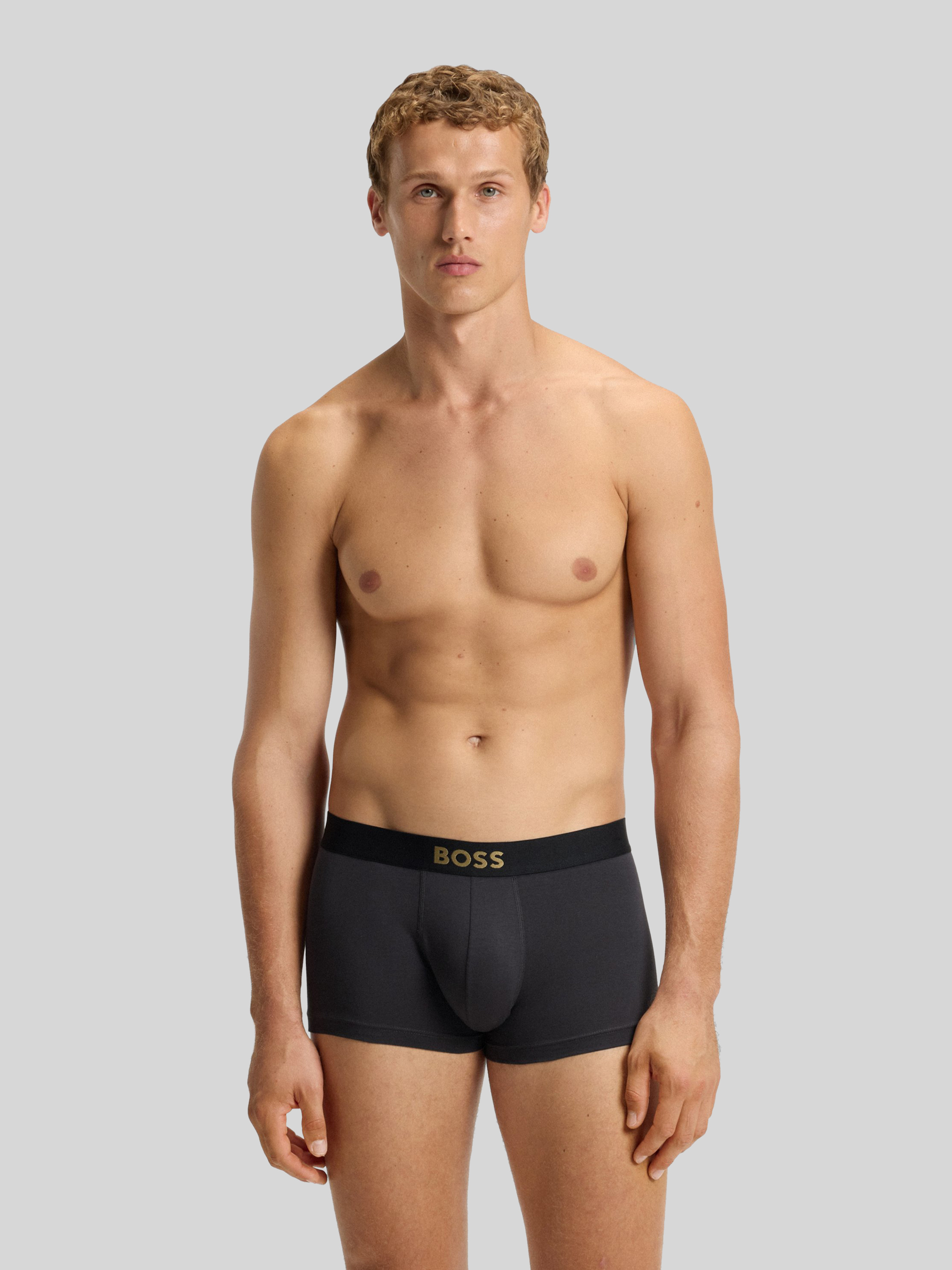 Die Herren Trunks von BOSS im 3er-Pack zeichnen sich durch ihre klare, unifarbene Optik und den dezenten Label-Print aus. Dank des Baumwolle-Mix mit Stretch-Anteil passt sich der Schnitt angenehm an und sorgt für spürbaren Tragekomfort im Alltag. Durch den elastischen Bund bleibt alles zuverlässig an Ort und Stelle, sodass man sich uneingeschränkt bewegen kann.