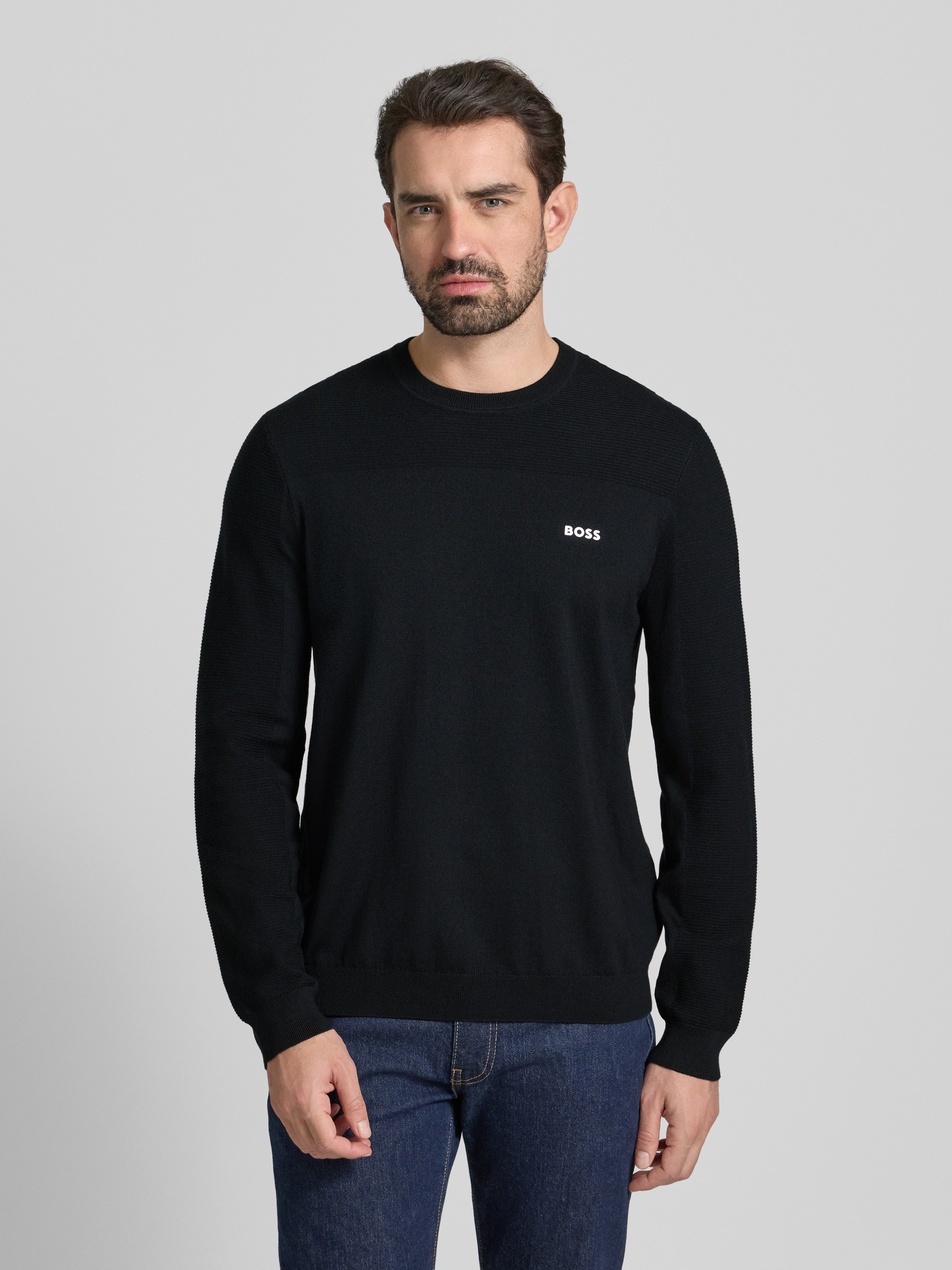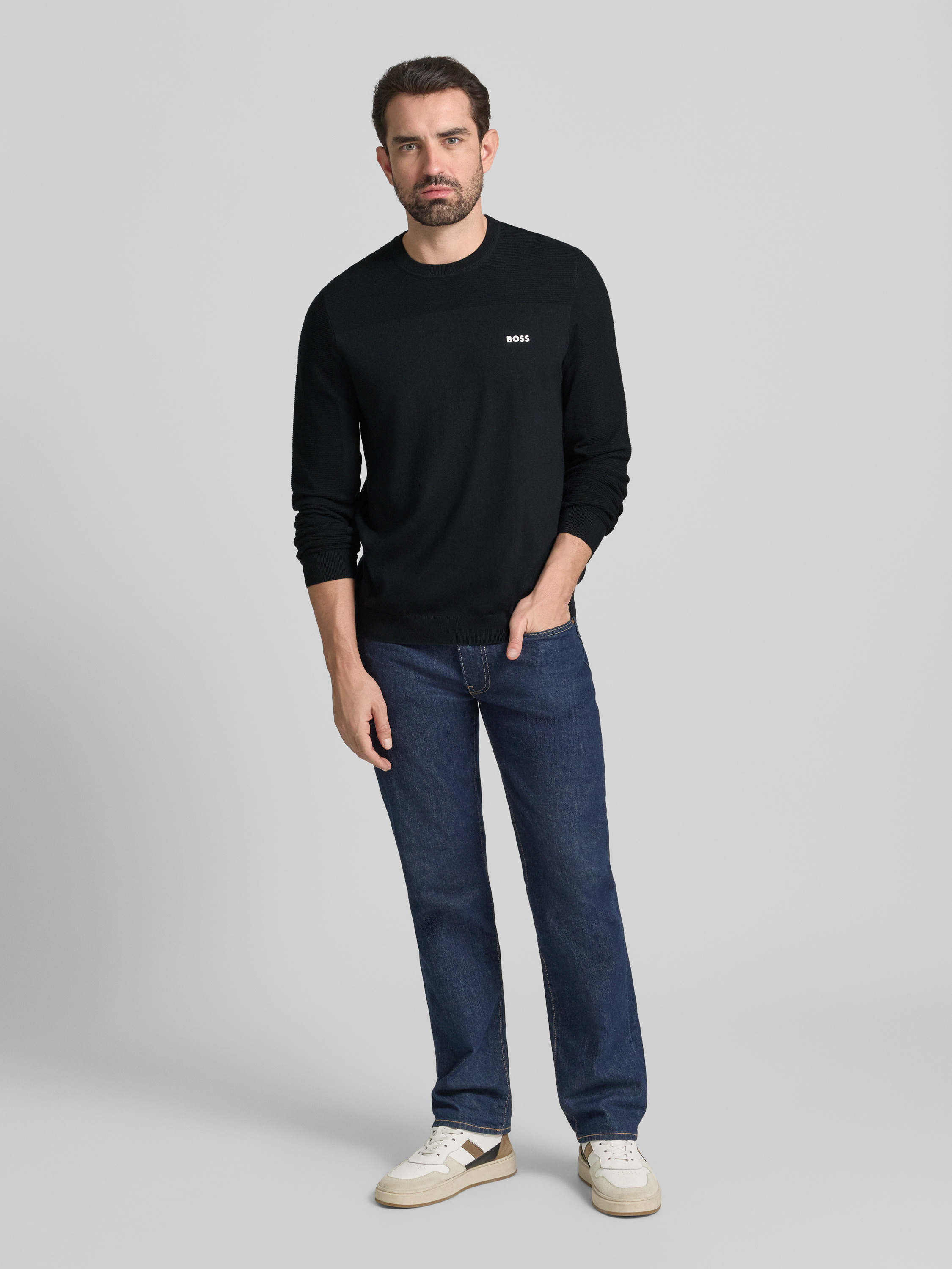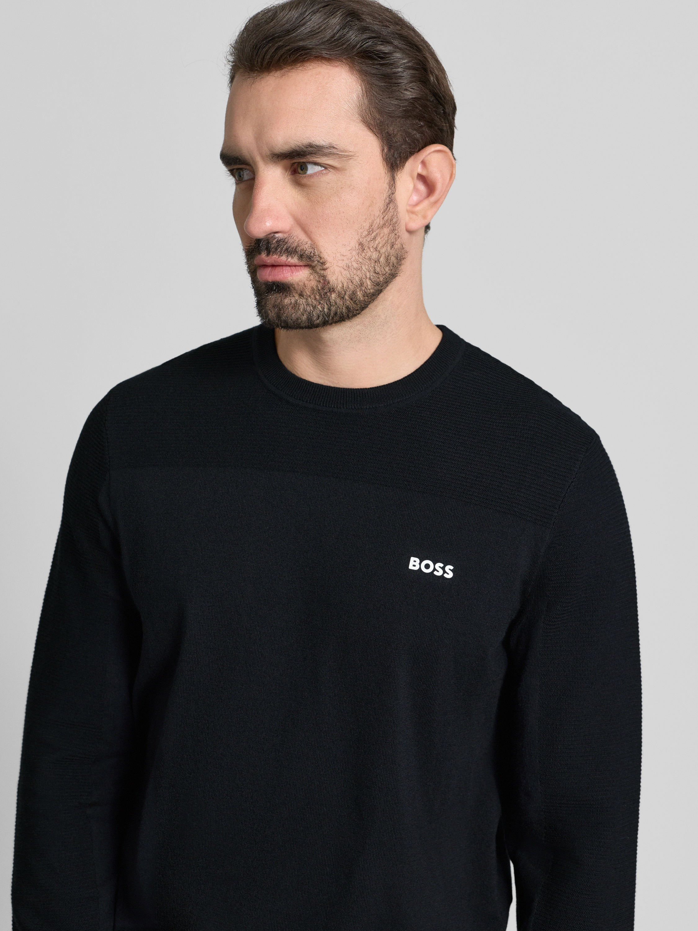 Der Herrenpullover von BOSS Green, Modell Momentum, präsentiert sich in schlichter Optik und bietet durch seinen Regular Fit eine angenehme Passform. Dank des Woll-Anteils fühlt sich das Strickmaterial weich an und unterstützt ein komfortables Tragegefühl. Ein dezenter Label Patch rundet das Design ab.