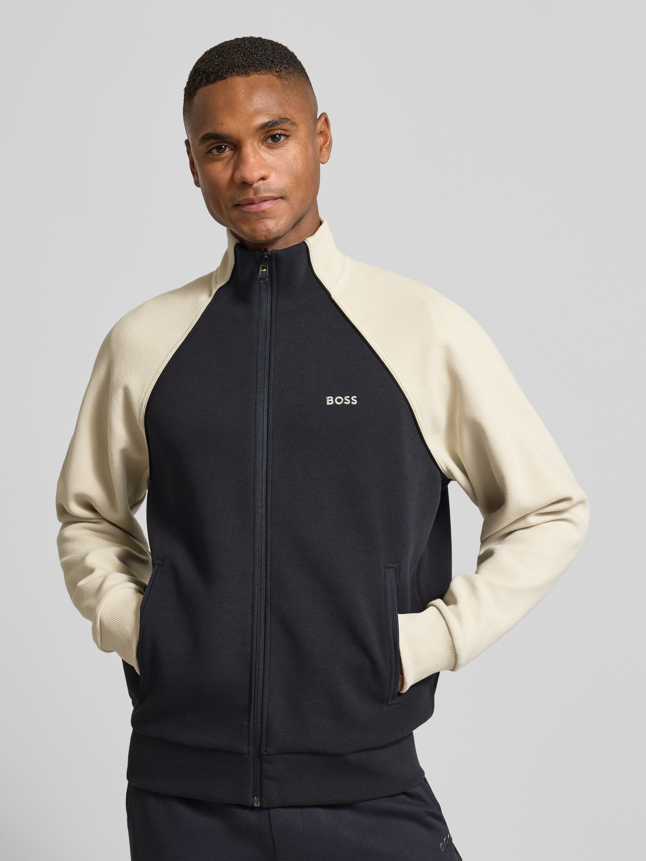 BOSS GreenRegular Fit Sweatjacke aus Baumwoll-Mix in dunkelblau