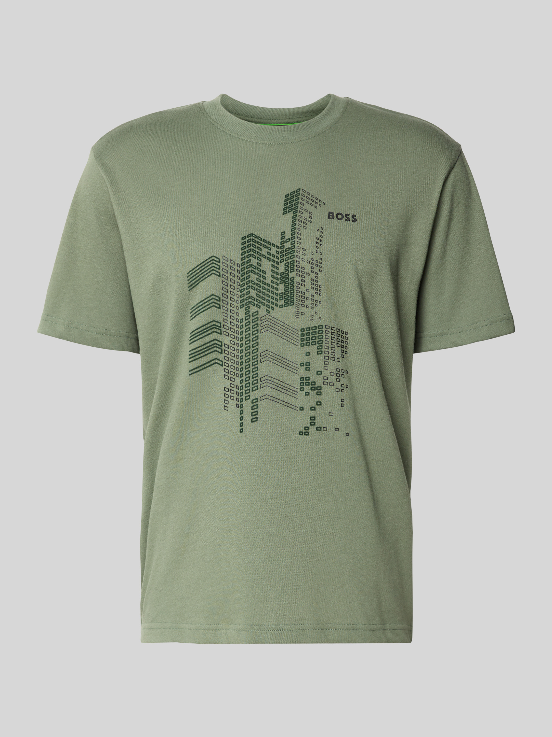 Das Herren T-Shirt von BOSS Green im Regular Fit sorgt mit seinem unkomplizierten Schnitt für angenehme Bewegungsfreiheit im Alltag. Reine Baumwolle fühlt sich weich auf der Haut an und unterstützt ein ausgeglichenes Tragegefühl. Ein dezenter Motiv-Print unterstreicht den modernen, unifarbenen Look.