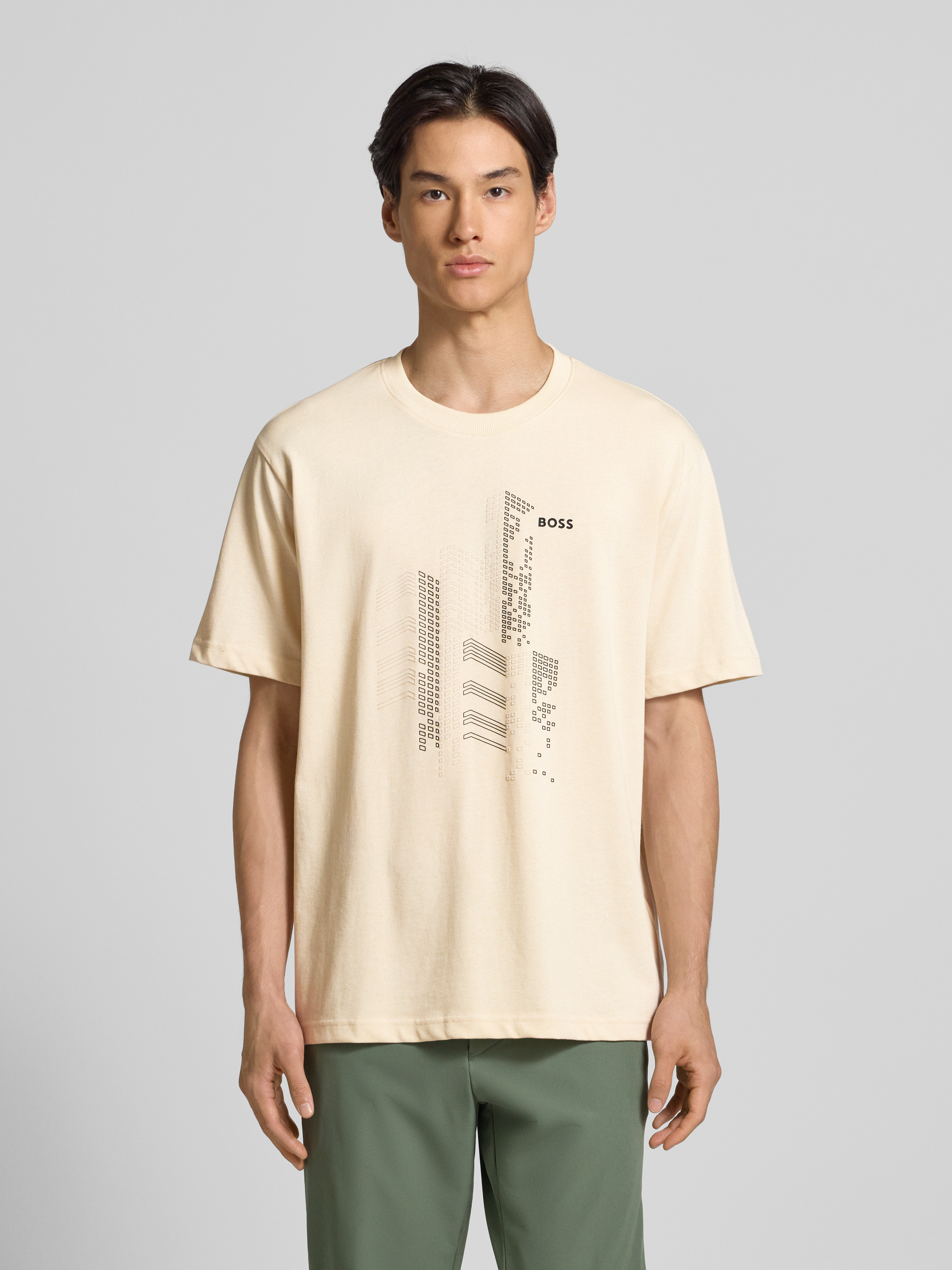 Das Herren T-Shirt von BOSS Green im Regular Fit sorgt mit seinem unkomplizierten Schnitt für angenehme Bewegungsfreiheit im Alltag. Reine Baumwolle fühlt sich weich auf der Haut an und unterstützt ein ausgeglichenes Tragegefühl. Ein dezenter Motiv-Print unterstreicht den modernen, unifarbenen Look.