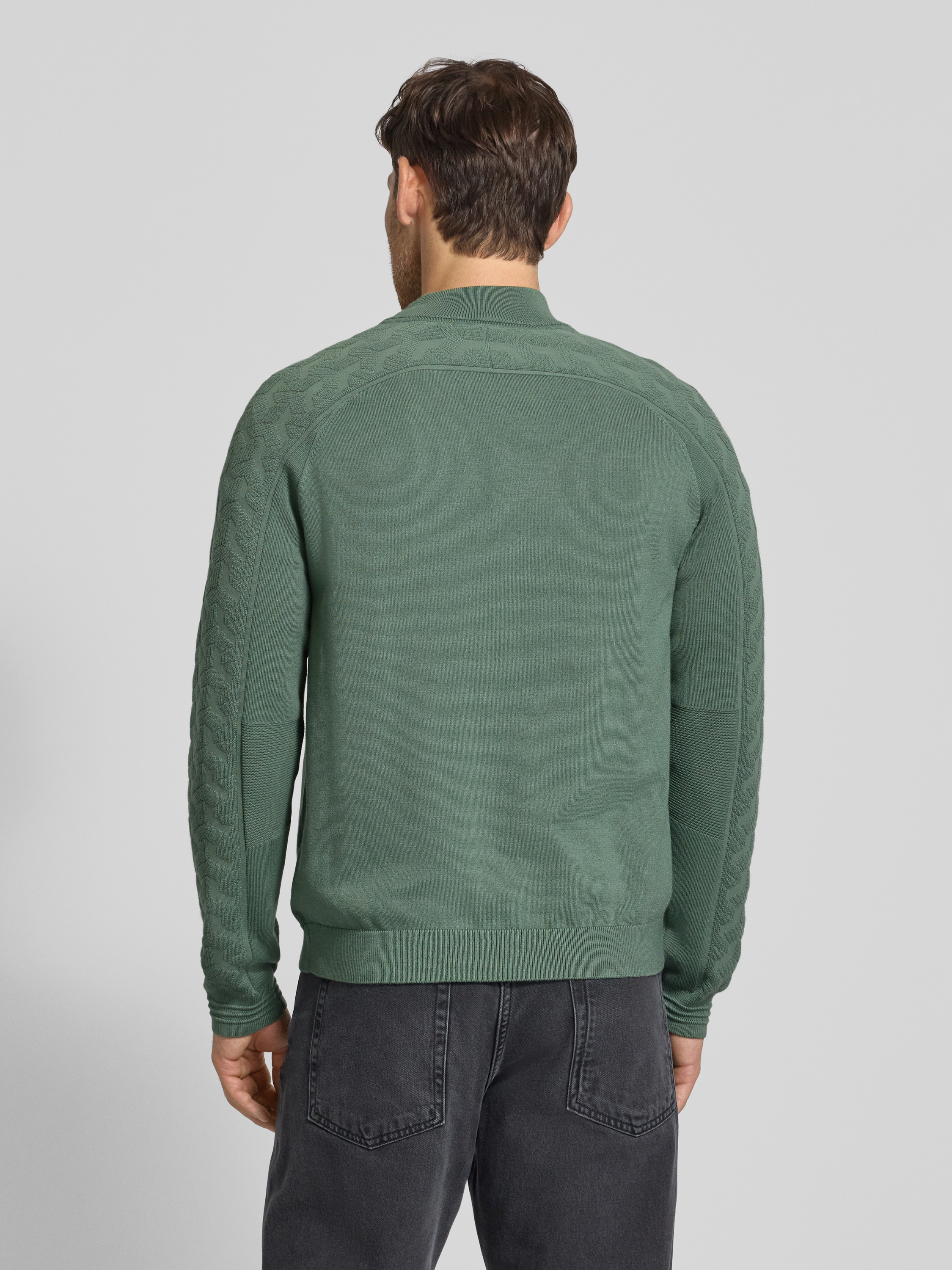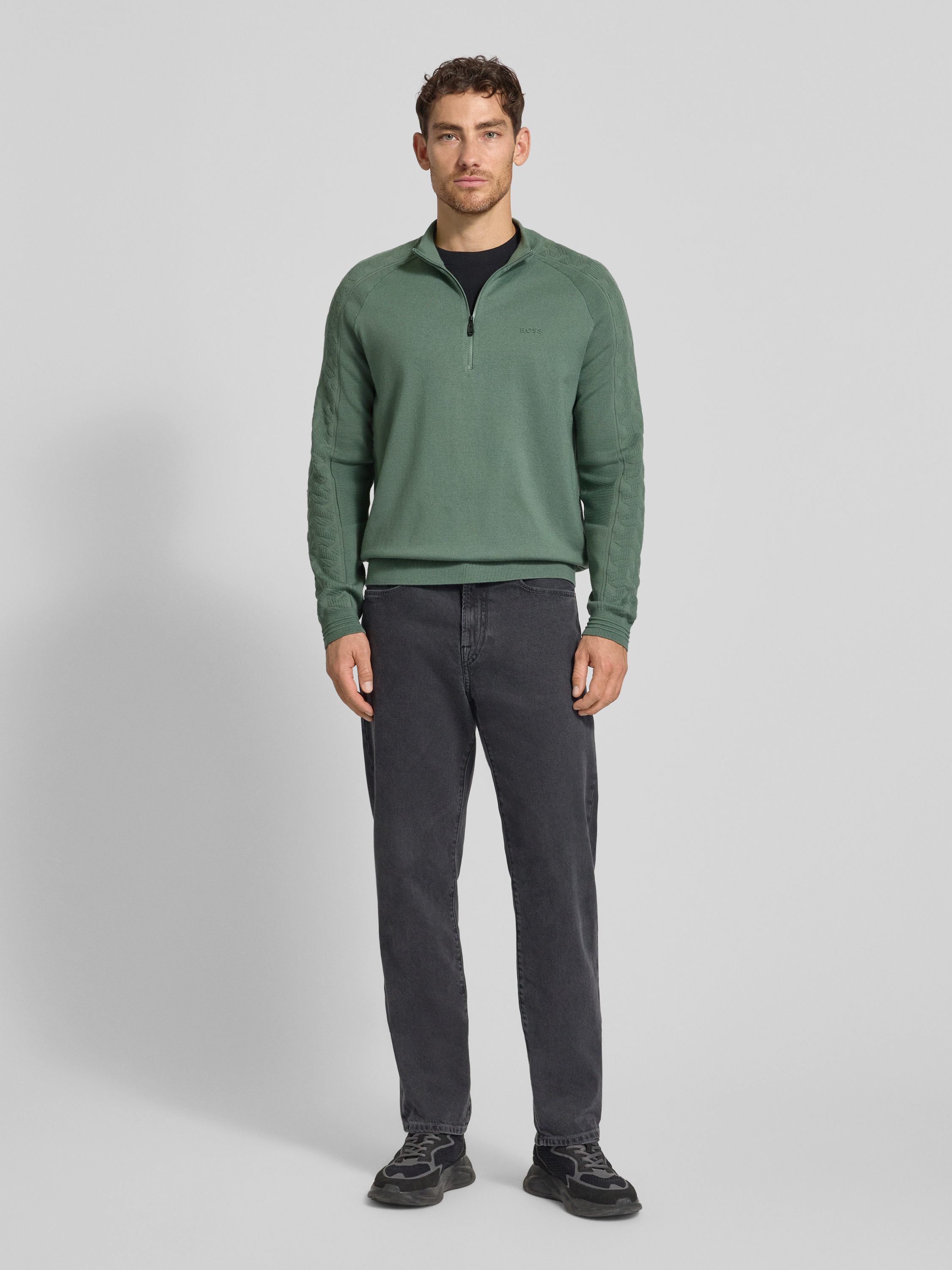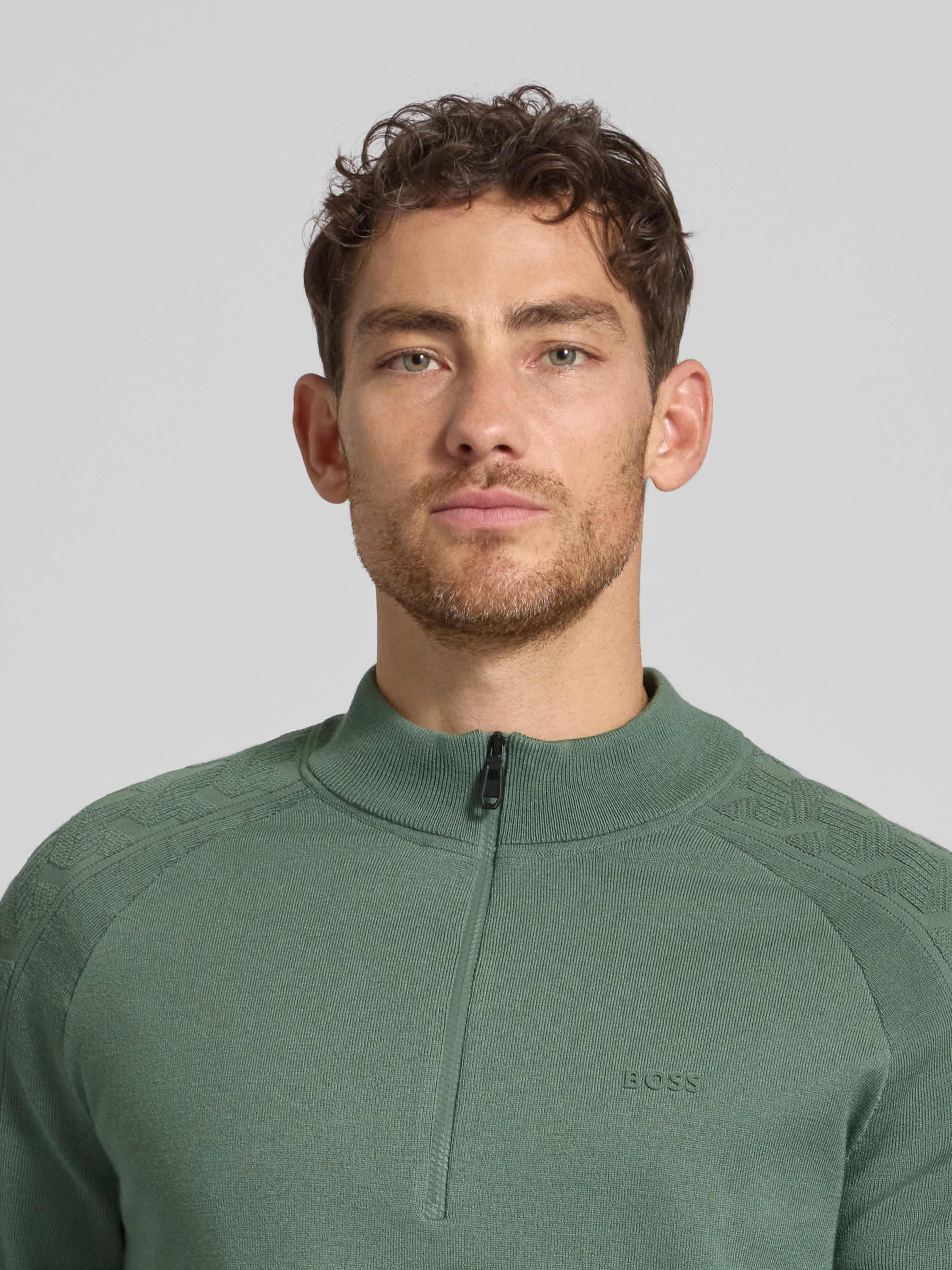 Der Herren Troyer von BOSS Green, Modell 'Mirror', kombiniert einen klassischen Regular-Fit mit strukturierter Optik und Raglanärmeln, wodurch Bewegungsfreiheit gegeben ist. Schurwolle sorgt für ein angenehmes Tragegefühl und hält zuverlässig warm. Dezente Details wie der Label Print runden das schlichte Design ab.