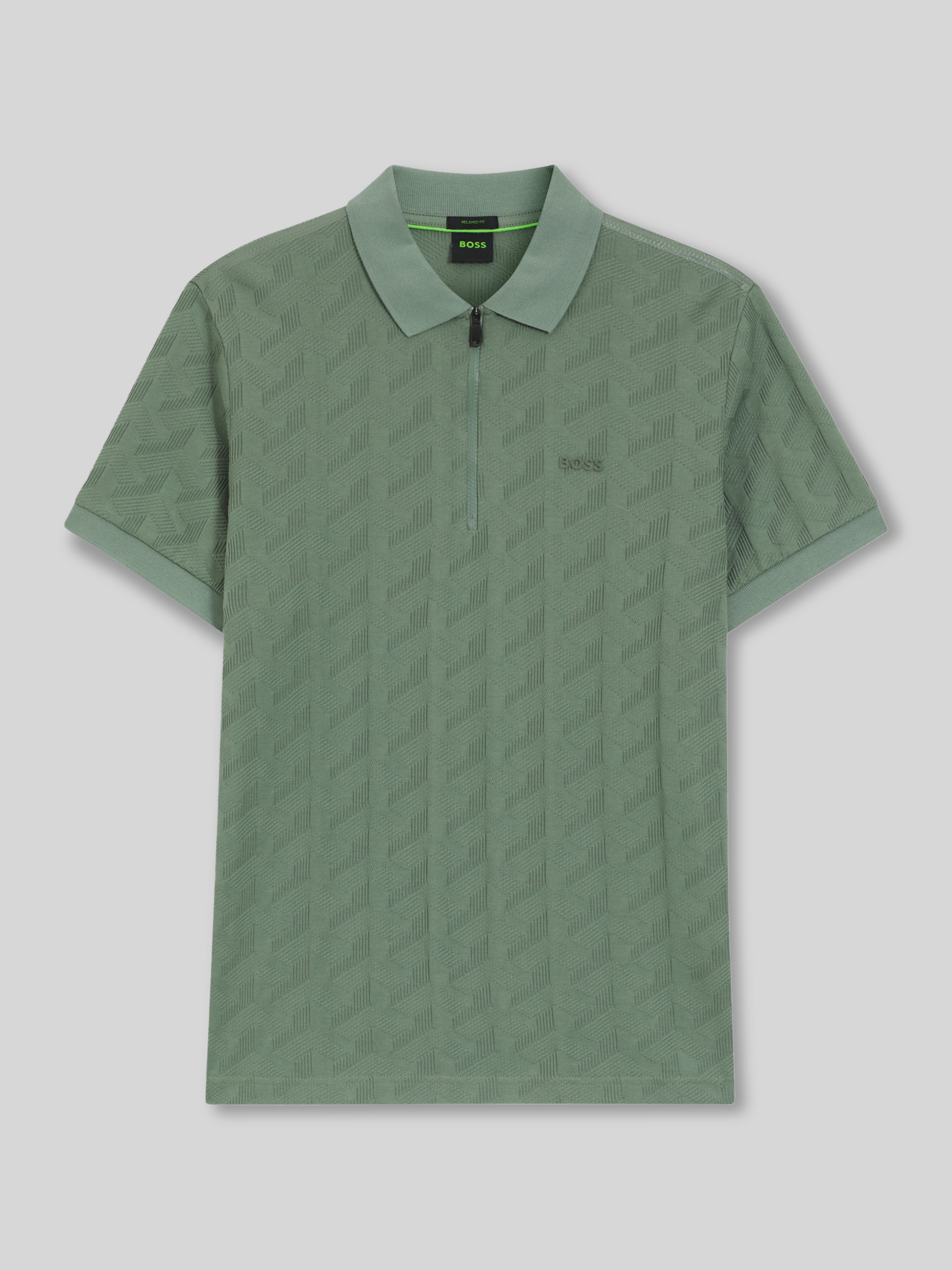 Das Herren Poloshirt MIRROR von BOSS Green kombiniert einen entspannten Relaxed Fit mit einem dezent strukturierten Muster, wodurch sich ein angenehmes Tragegefühl im Alltag ergibt. Reine Baumwolle sorgt dafür, dass die Haut atmen kann und das Shirt weich aufliegt. Der Flachstrickkragen unterstreicht das sportliche Design, während die Jacquard-Verarbeitung dem Look eine besondere Note verleiht.
