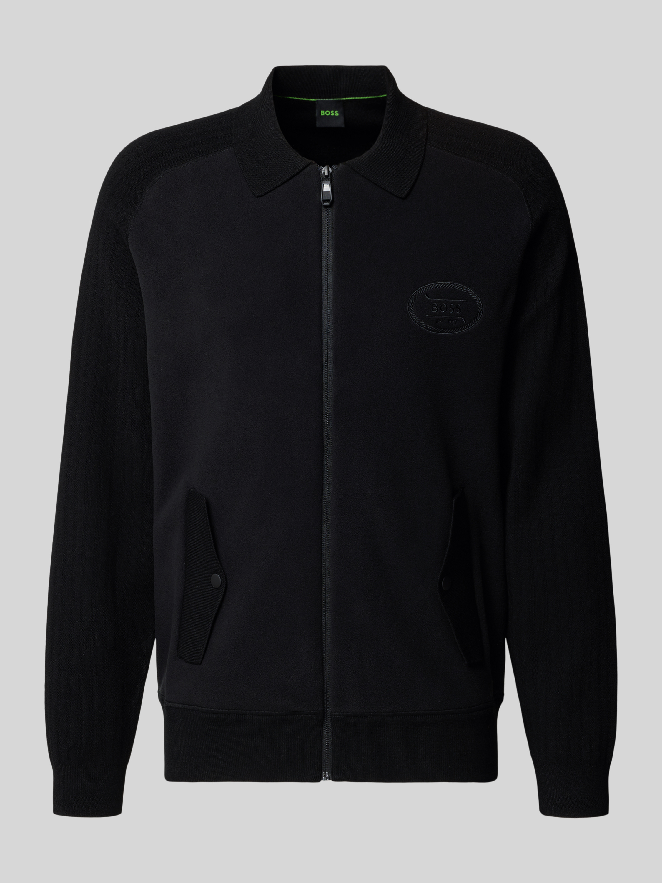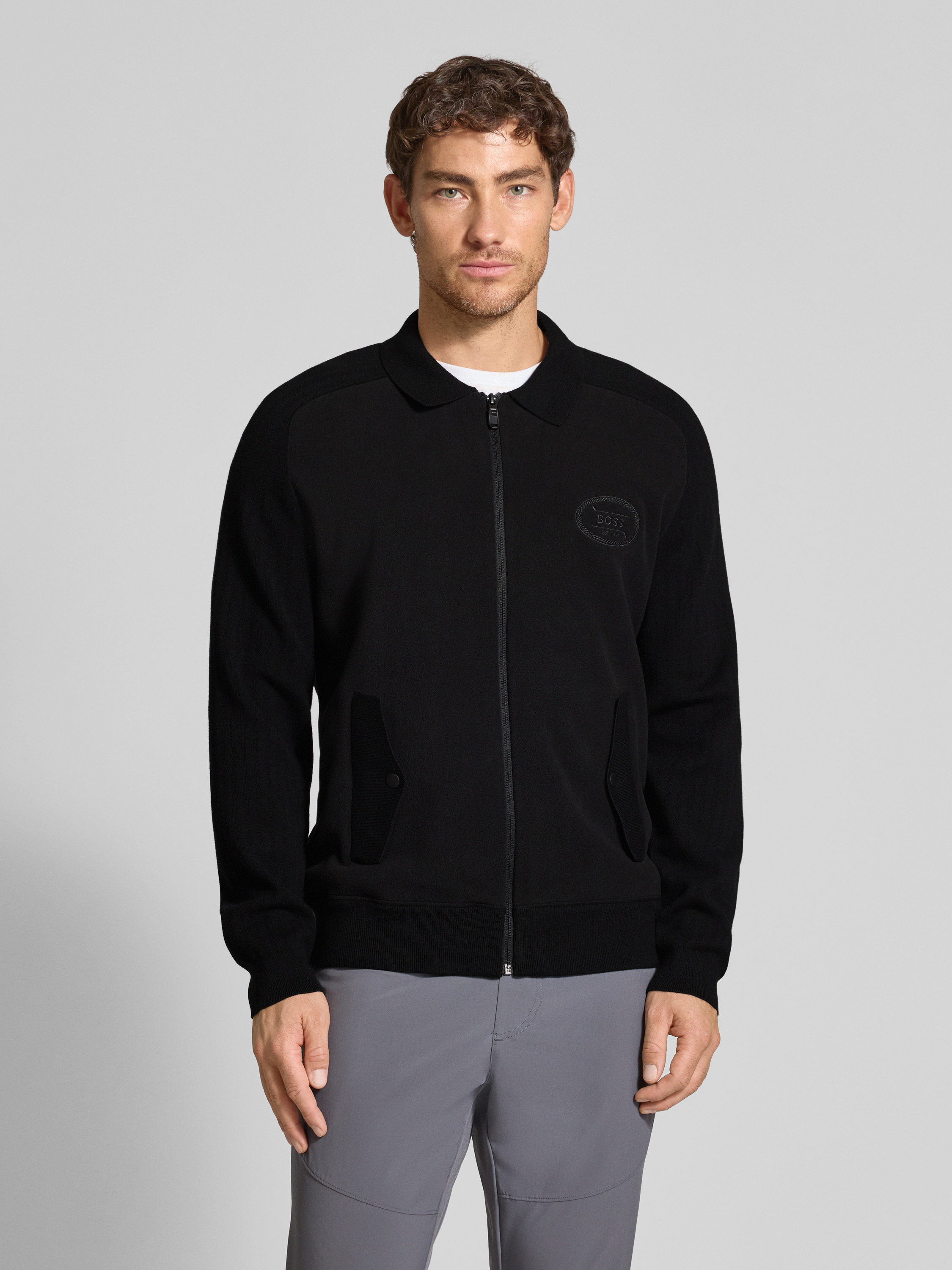 BOSS GreenRelaxed Fit Strickjacke aus Viskose-Mix Modell 'HOLE' in black
