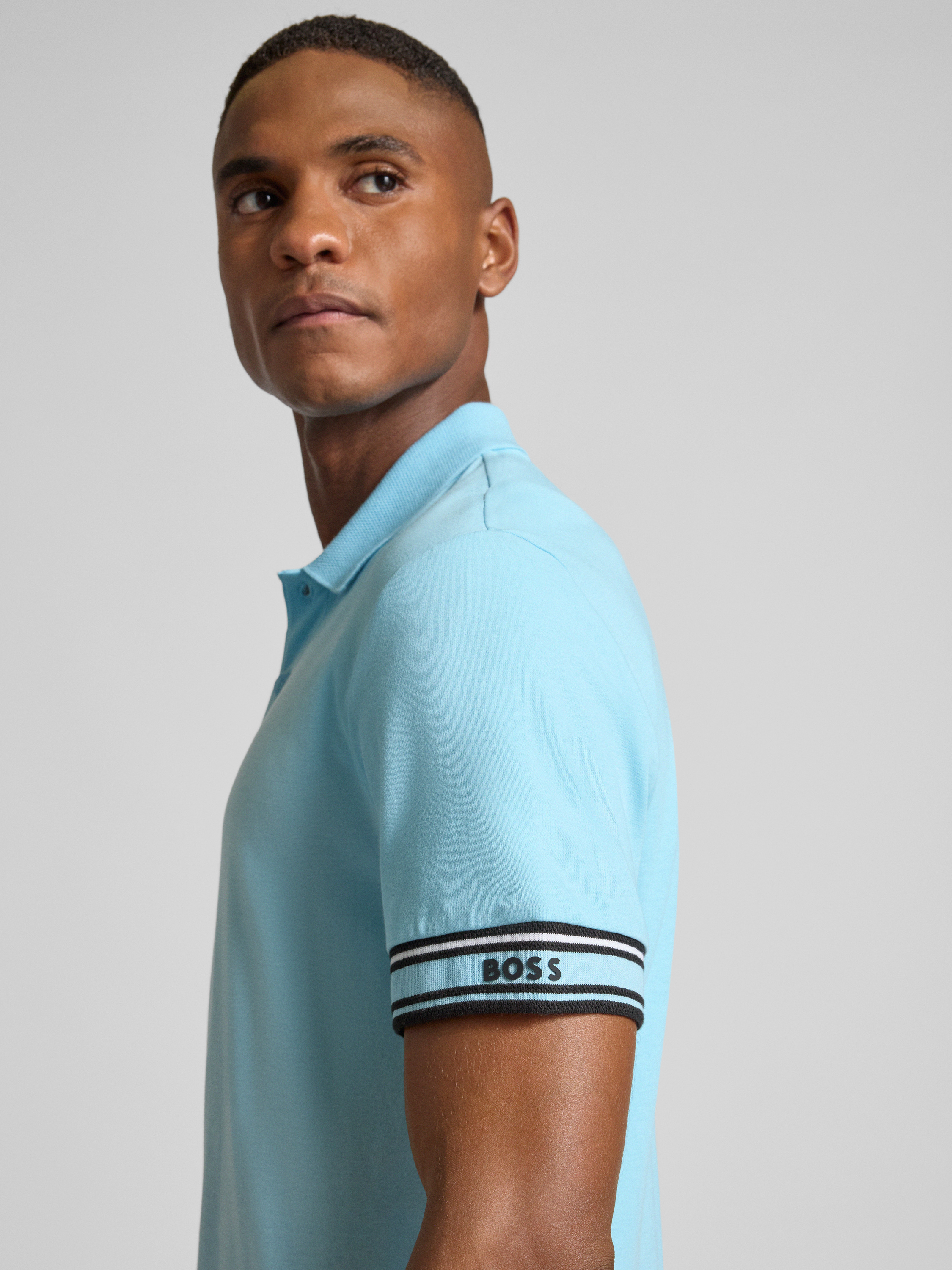 BOSS GreenSlim Fit Poloshirt aus reiner Baumwolle in hellblau