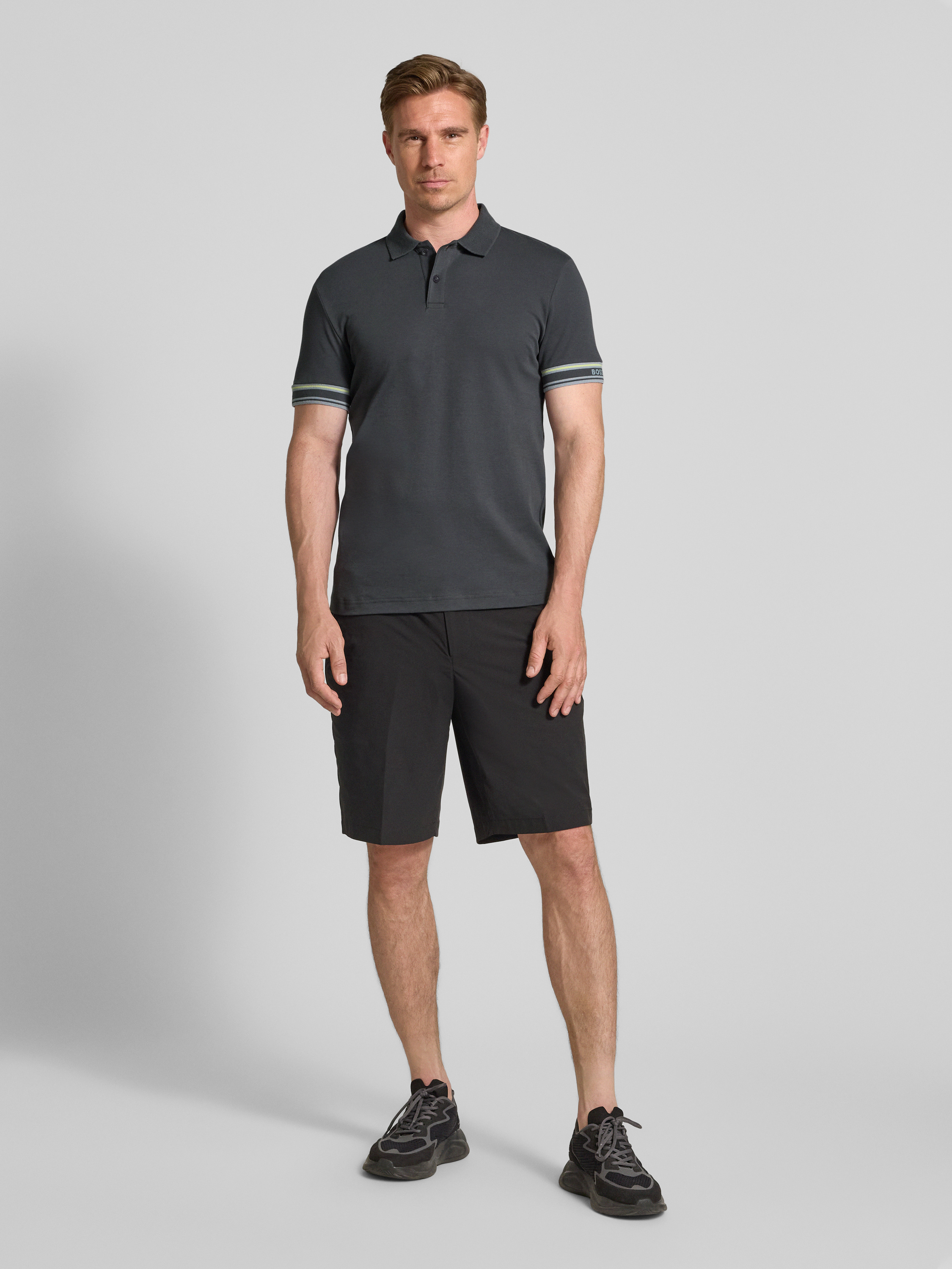 BOSS GreenSlim Fit Poloshirt aus reiner Baumwolle Modell 'POLO ZONE' in dunkelgrau
