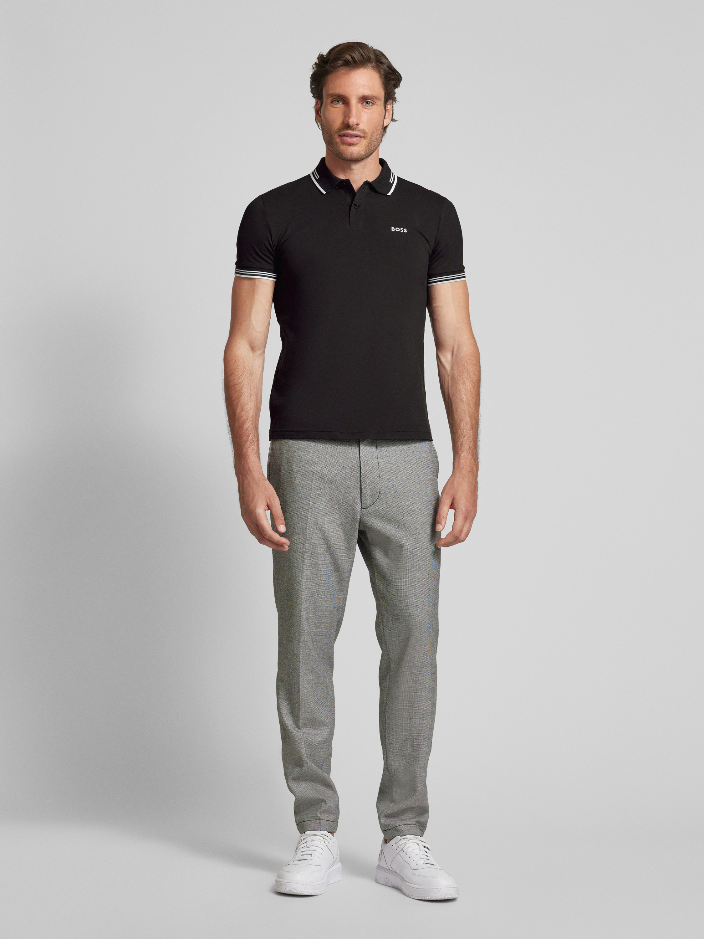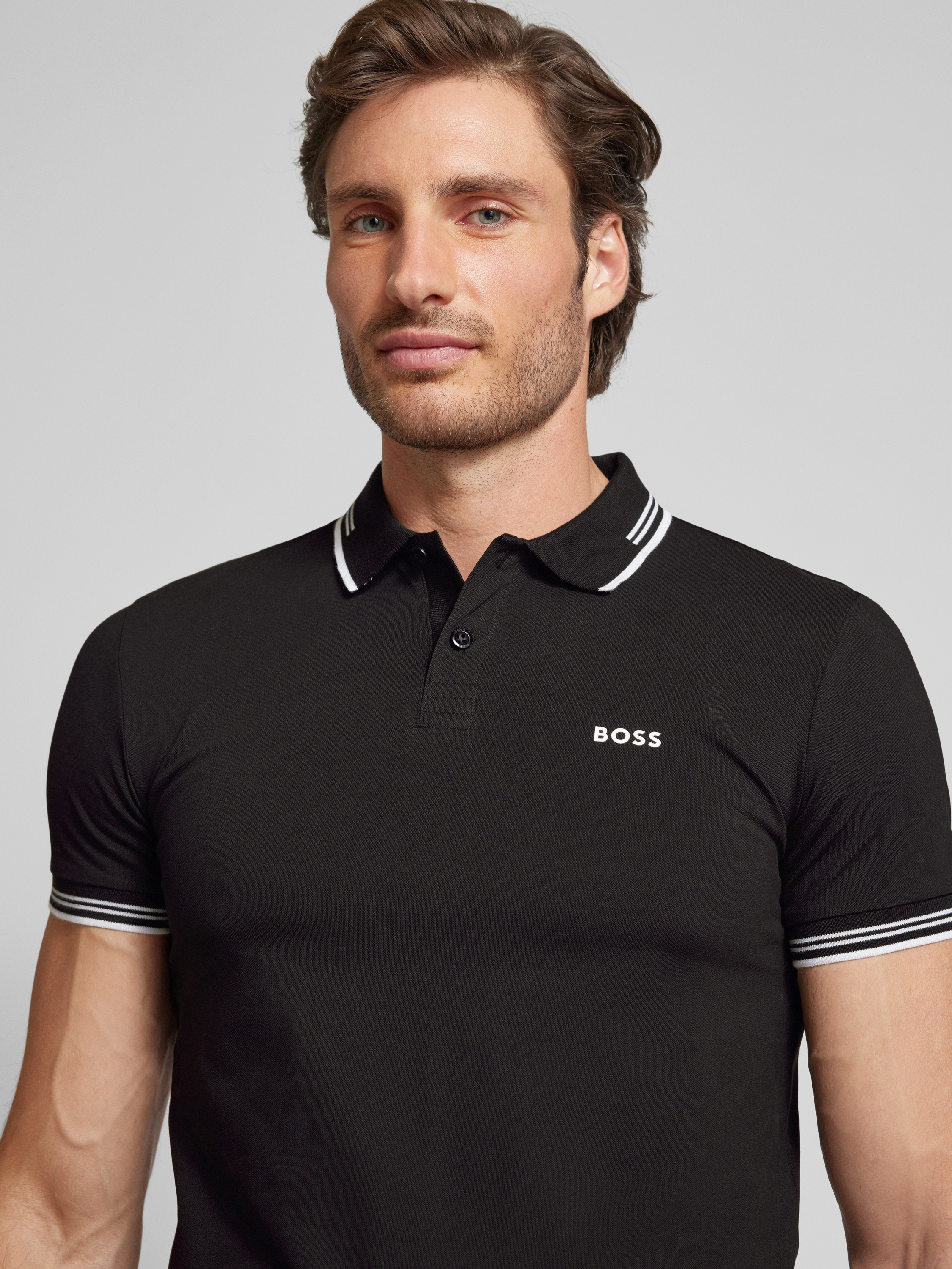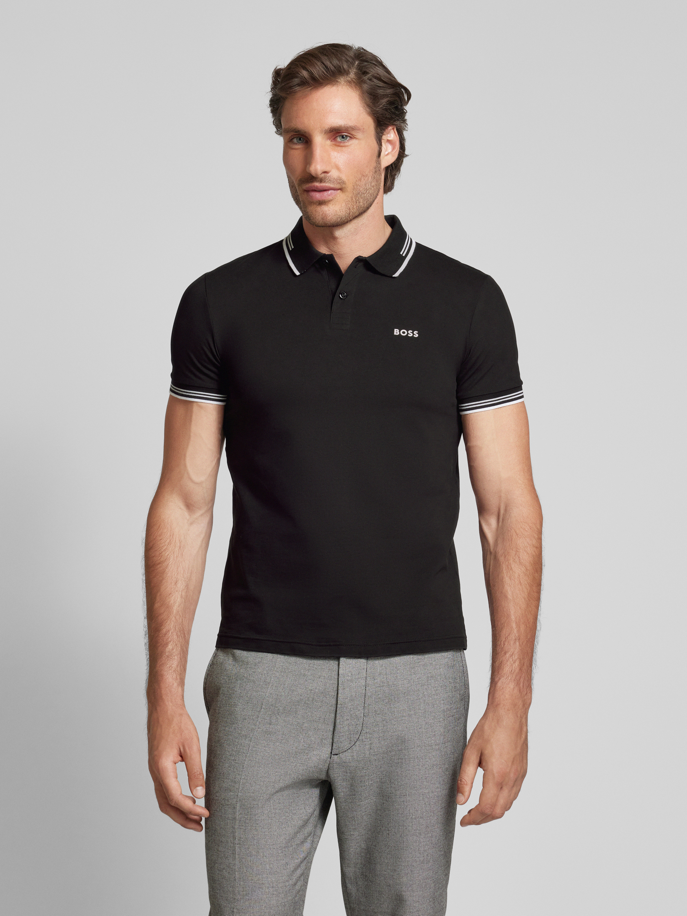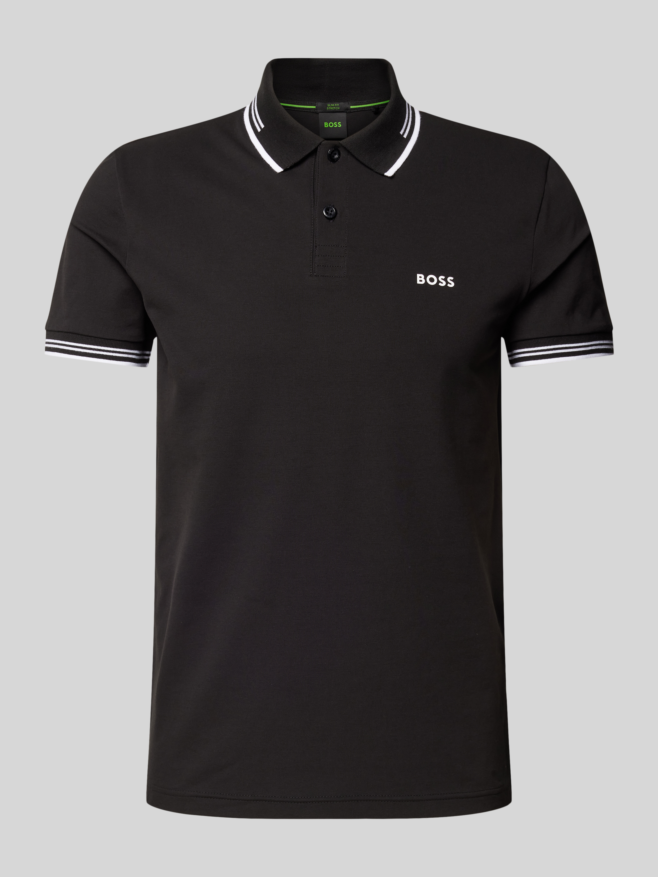 BOSS GreenSlim Fit Poloshirt mit Label-Print Modell 'Paul' in black
