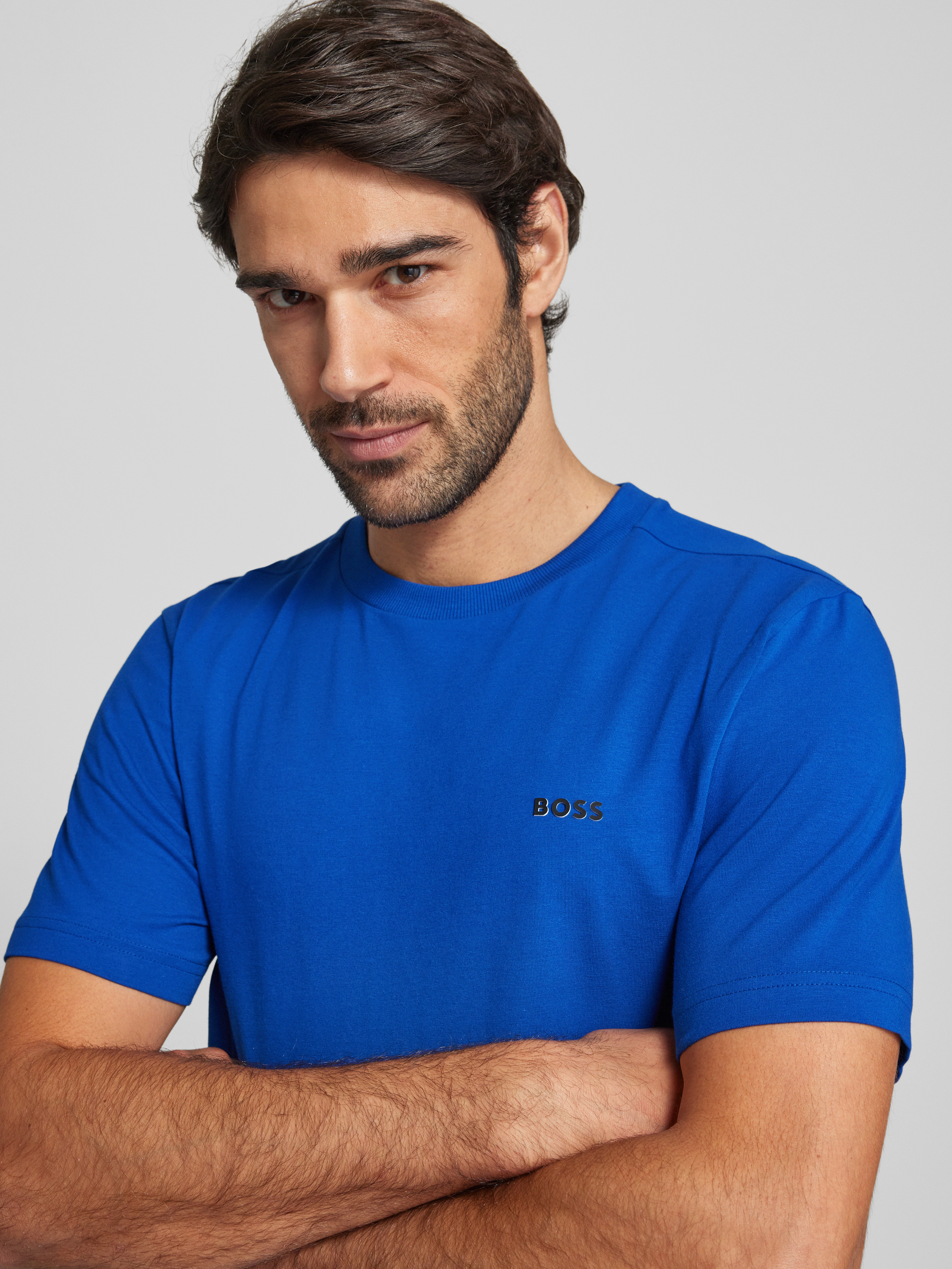 Das Herren T-Shirt von BOSS Green zeichnet sich durch einen geraden Schnitt aus, wodurch es angenehm locker sitzt und vielseitig kombiniert werden kann. Der Baumwoll-Elasthan-Mix sorgt für ein angenehmes Tragegefühl und ausreichend Bewegungsfreiheit. Ein Label-Print rundet das Design dezent ab.