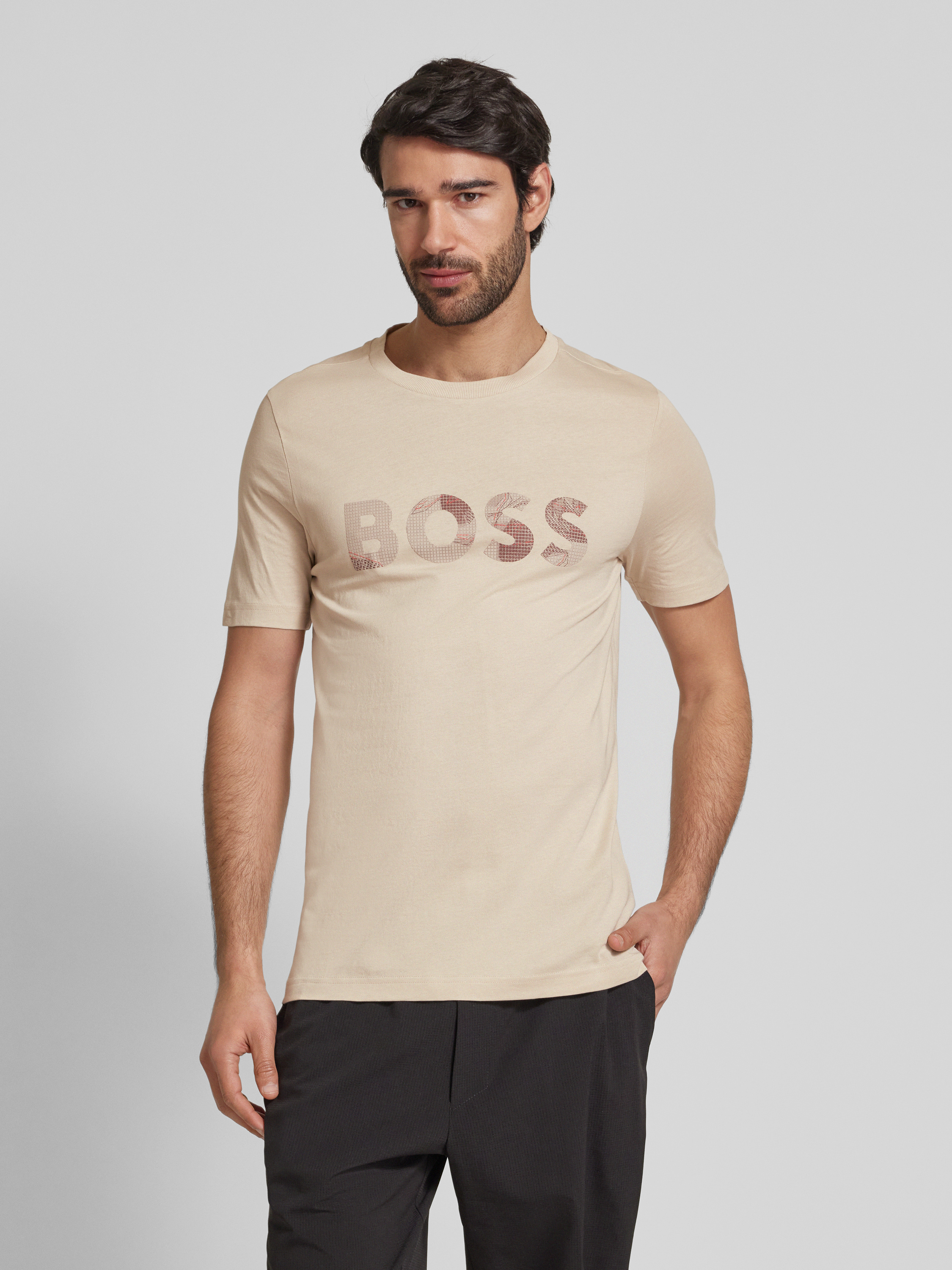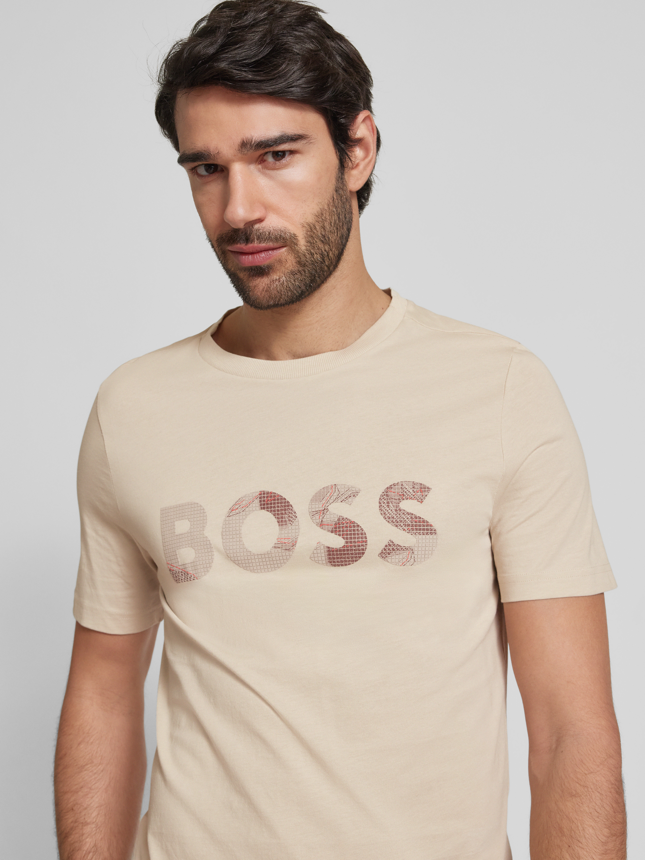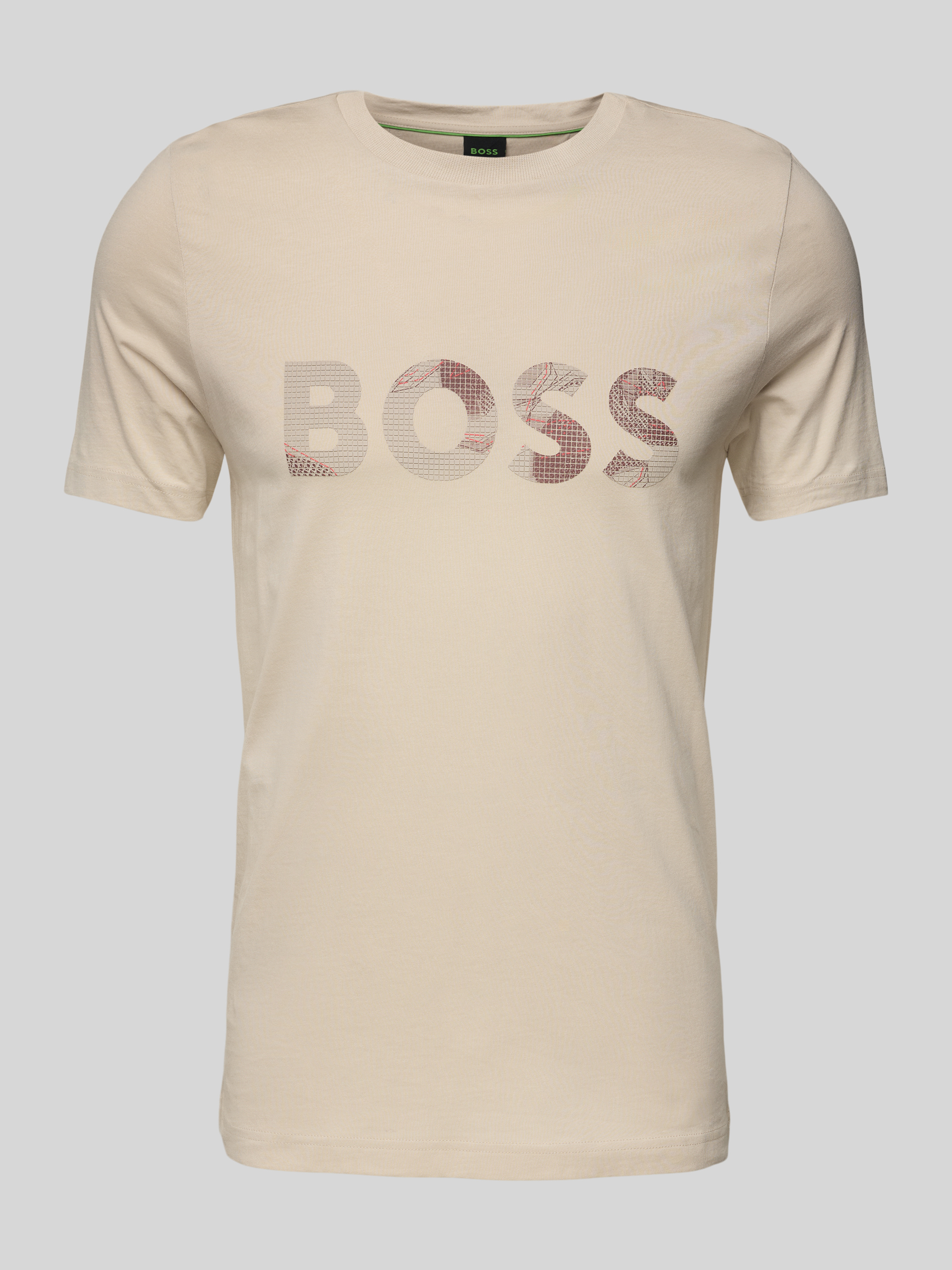 BOSS GreenT-Shirt mit Logo-Print und Rundhalsausschnitt in beige