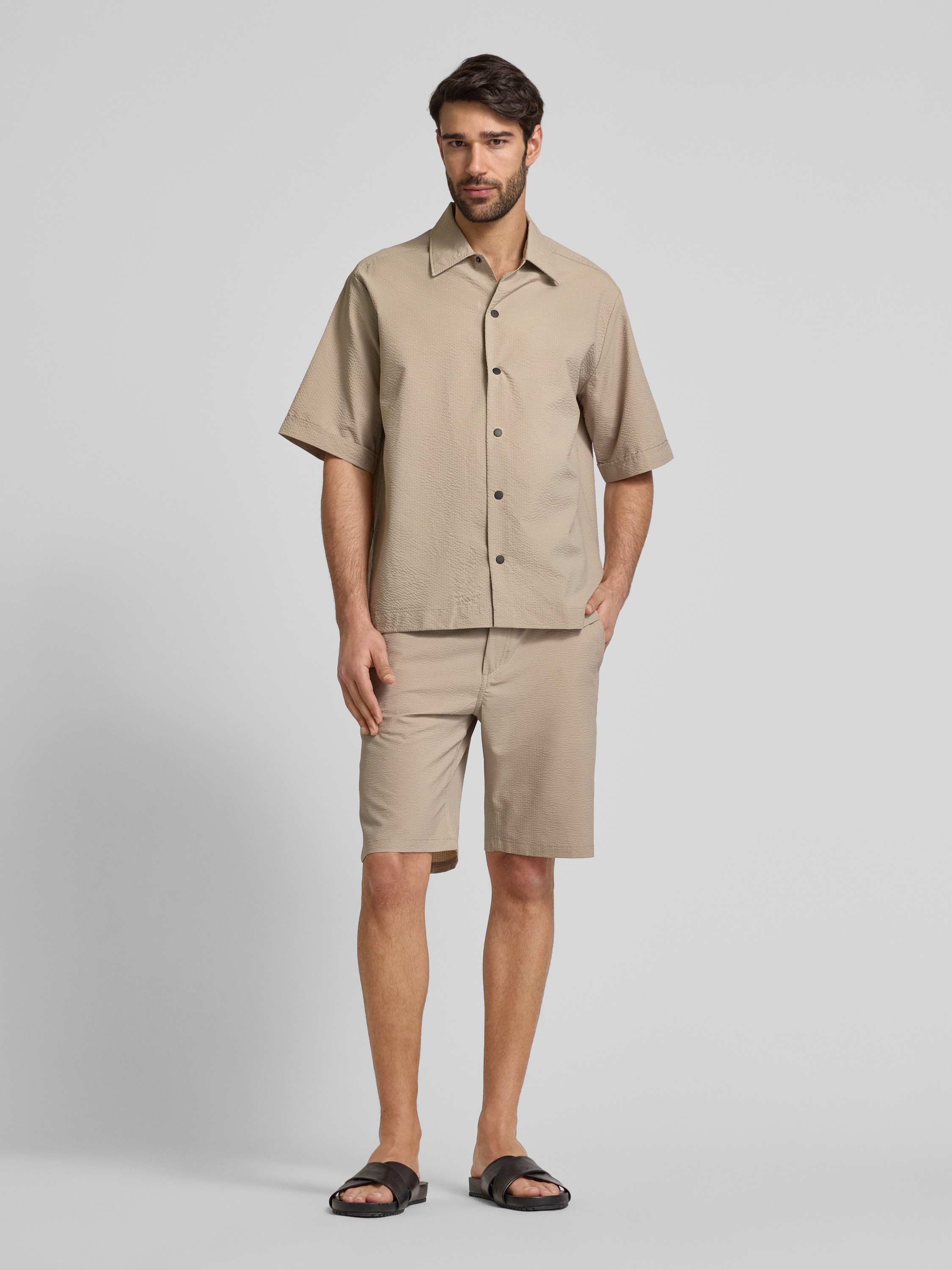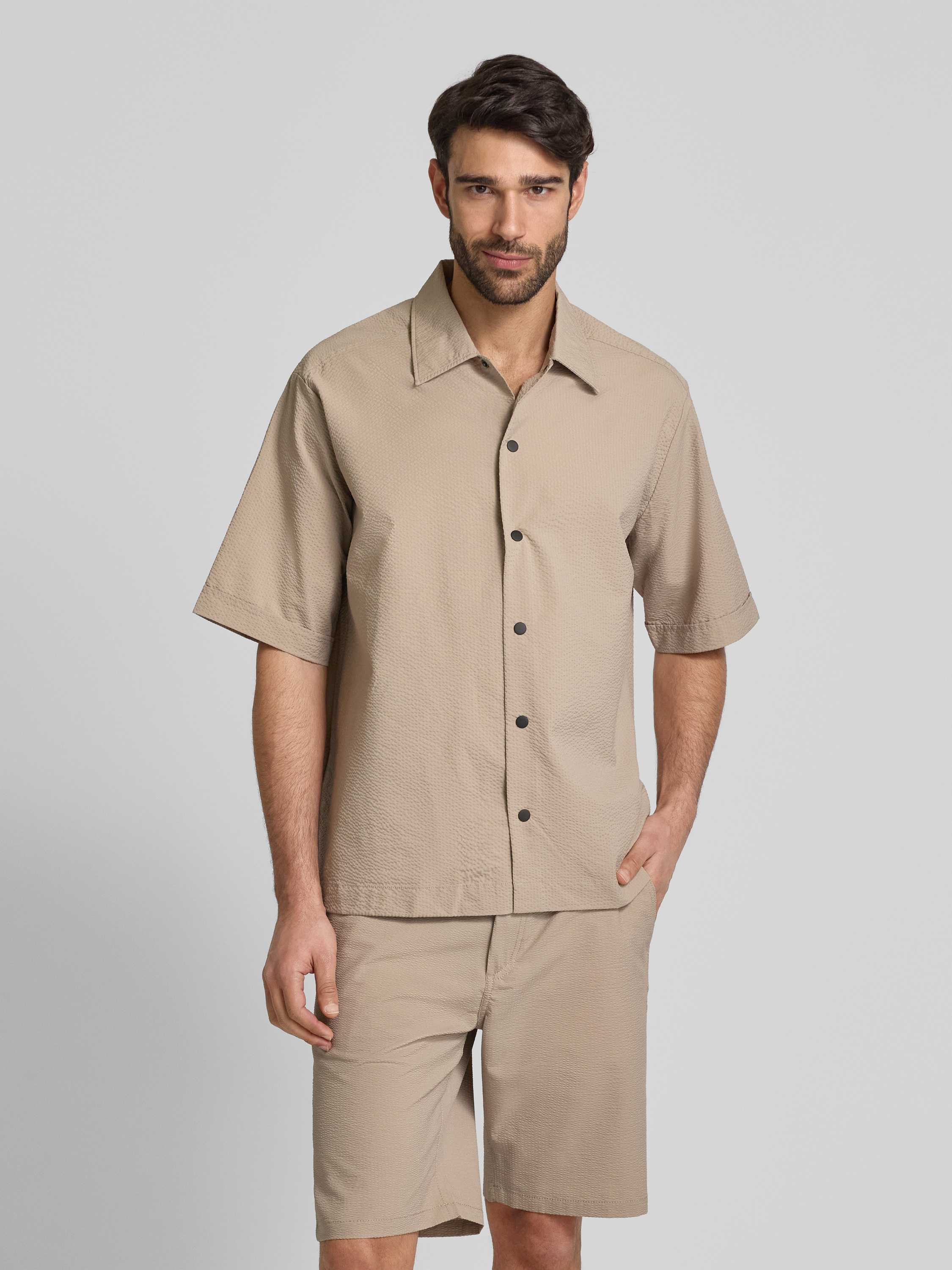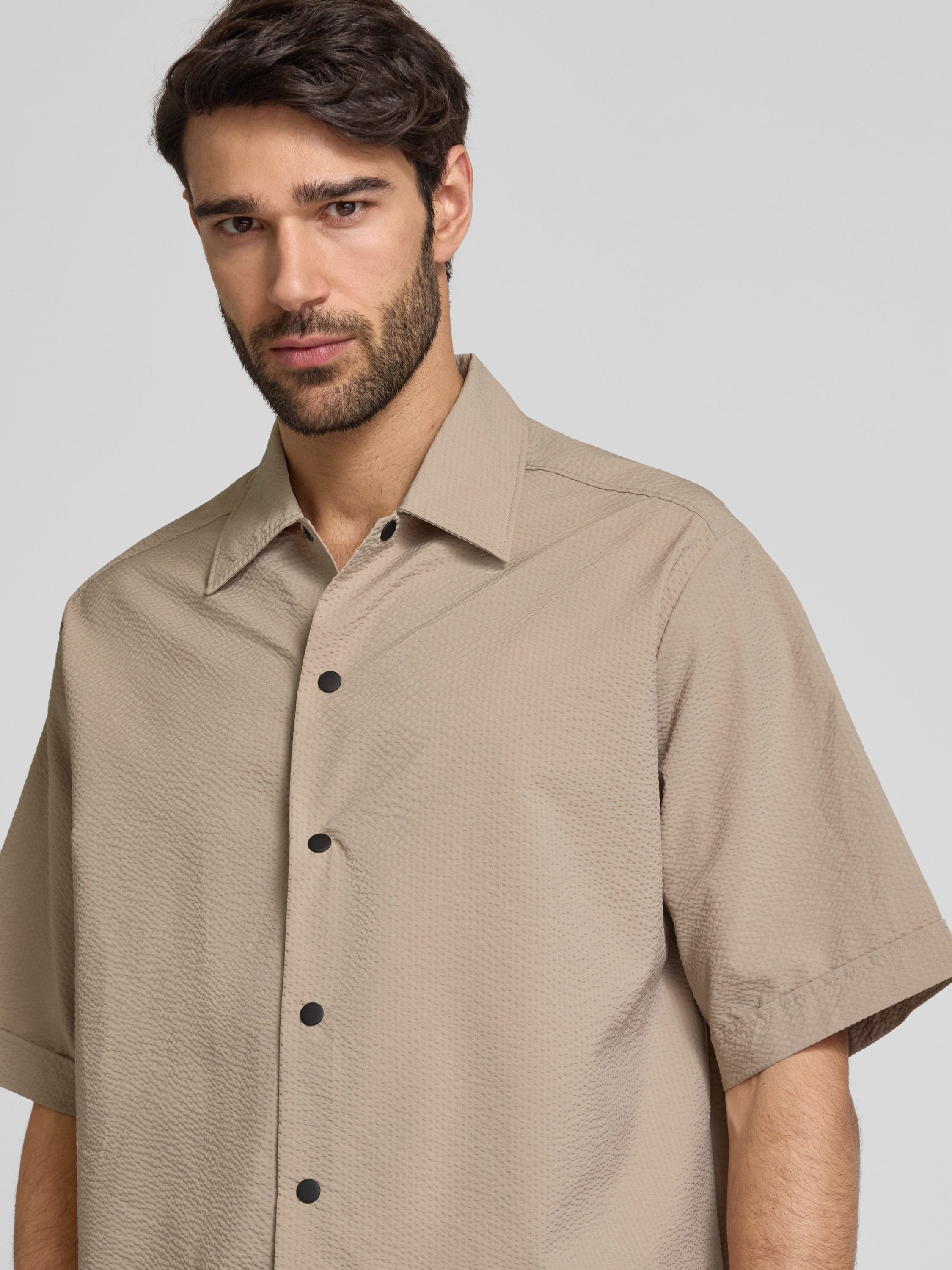 BOSS OrangeFreizeithemd mit Druckknopfleiste in sand