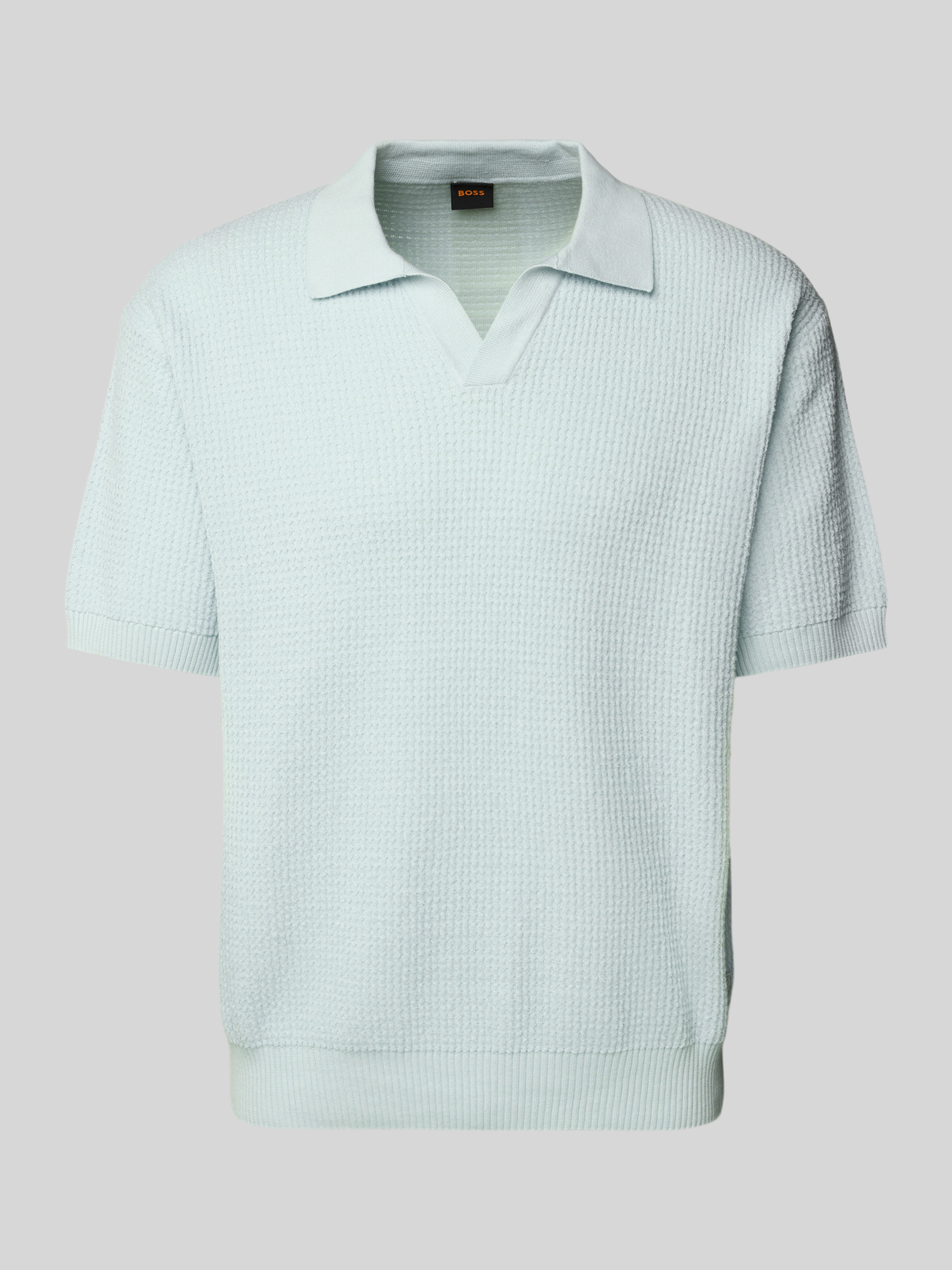 Das Herren Poloshirt von BOSS Orange kombiniert einen klassischen Polokragen mit einem modernen V-Ausschnitt und bietet durch den Baumwoll-Mix ein angenehmes Tragegefühl. Der Regular Fit sorgt für eine bequeme Passform, während die gerippten Abschlüsse dezente Akzente setzen. Ideal für alltägliche Anlässe.