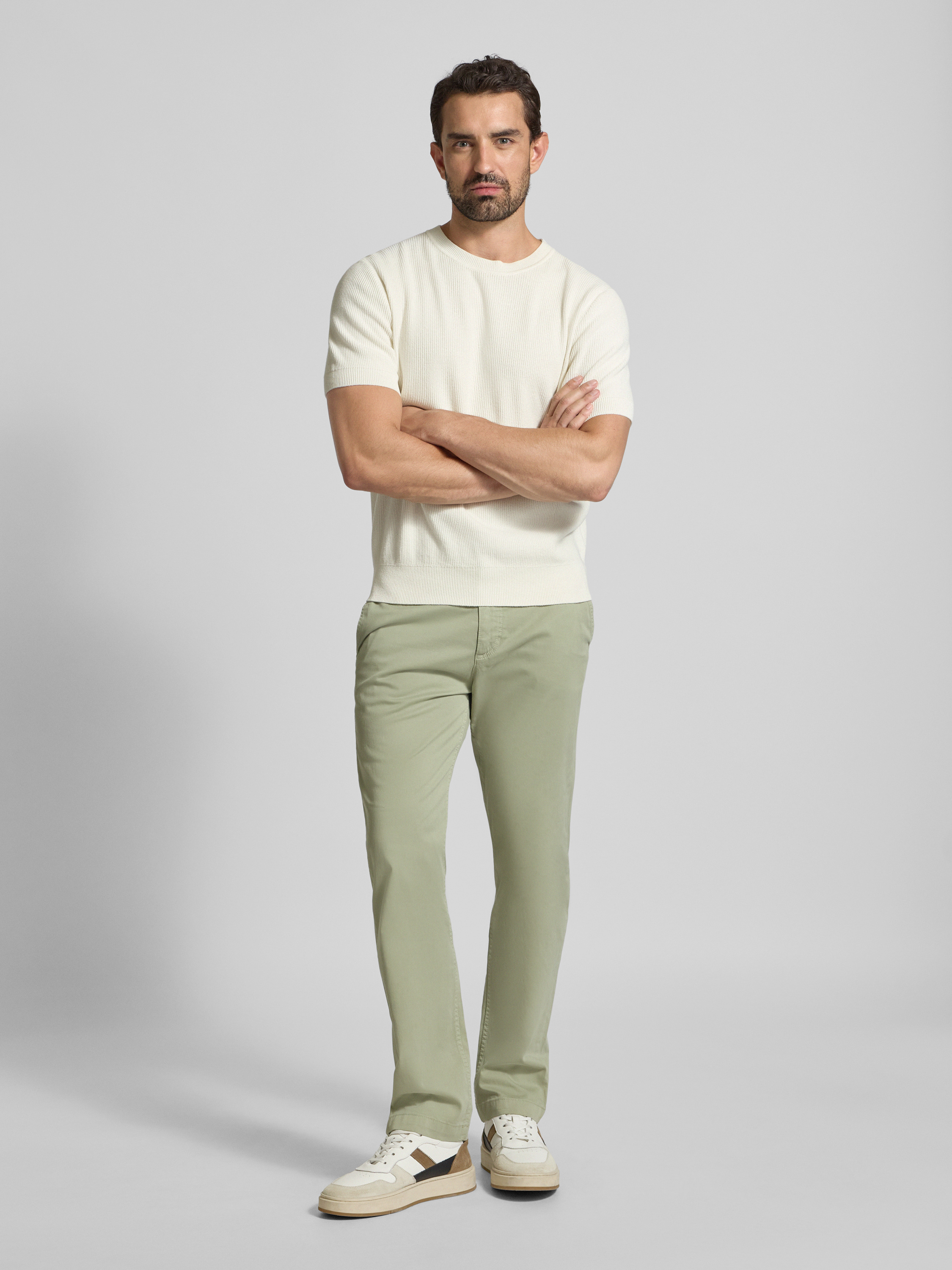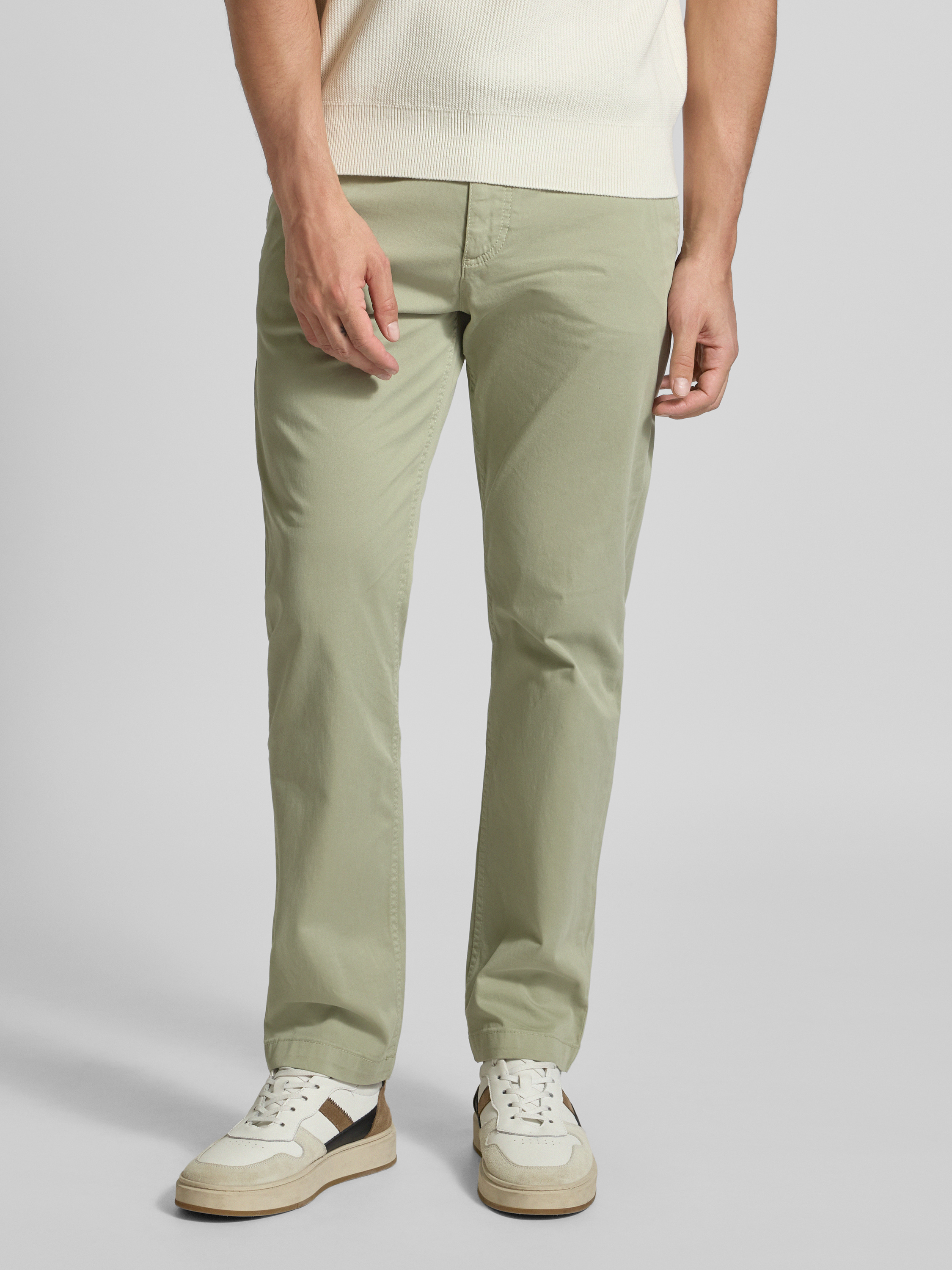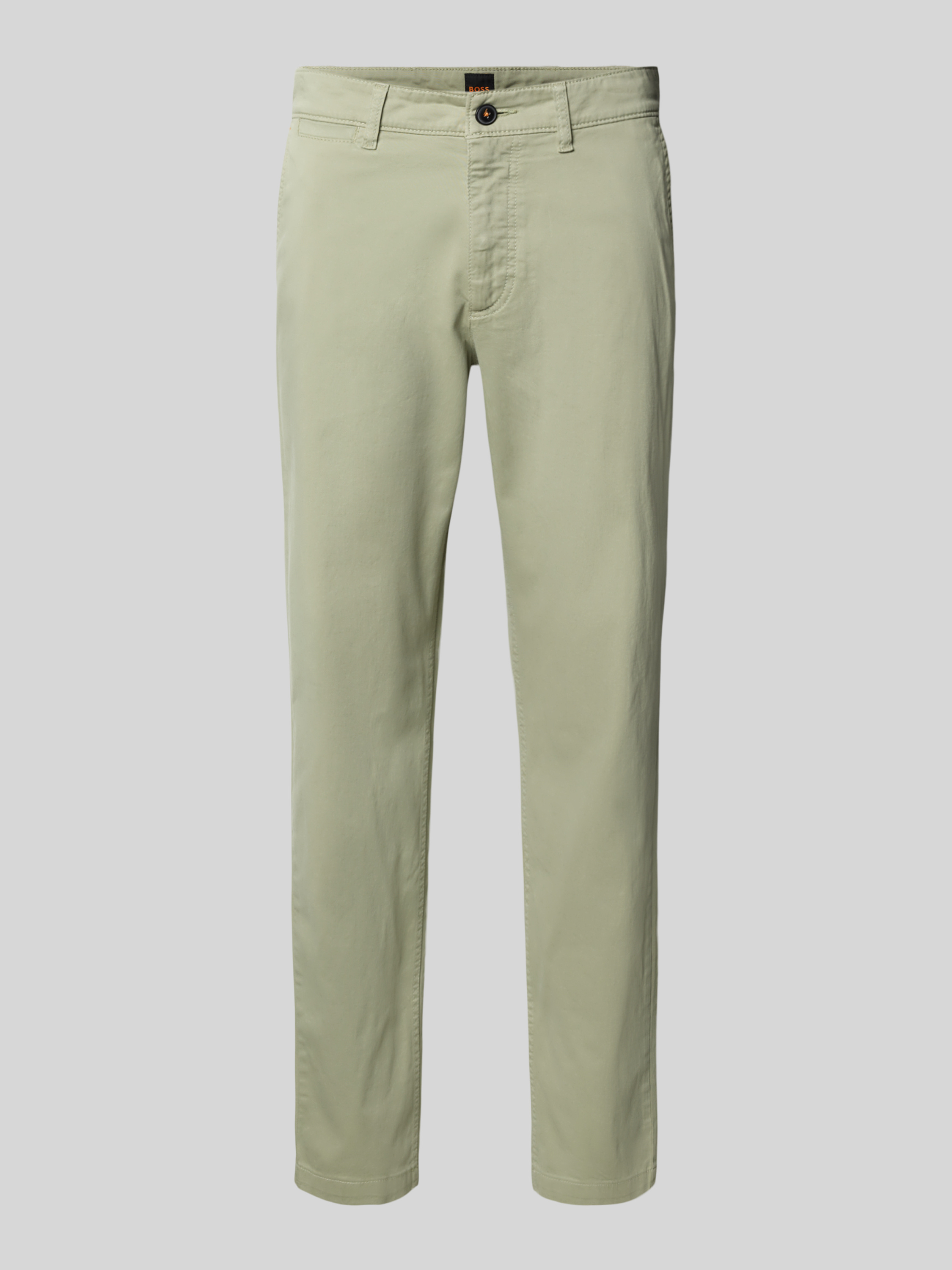 Die Herren Chino von BOSS Orange präsentiert sich im klassischen Regular Fit und sorgt mit ihrem angenehmen Baumwoll-Mix für ein bequemes Tragegefühl im Alltag. Unifarben gehalten, lässt sich die Hose vielseitig kombinieren. Dezente Details wie Gürtelschlaufen und Paspeltaschen runden den Look ab.