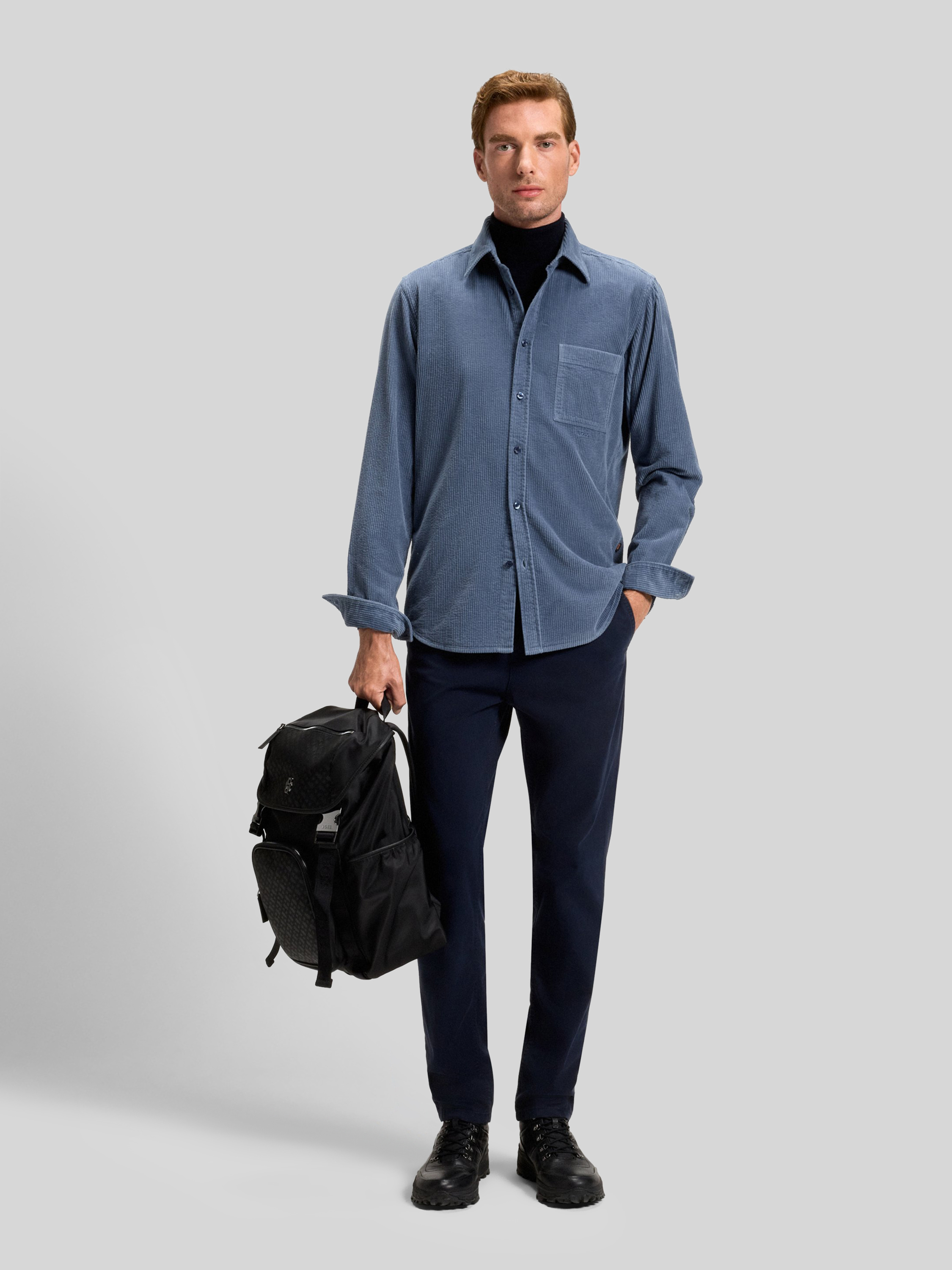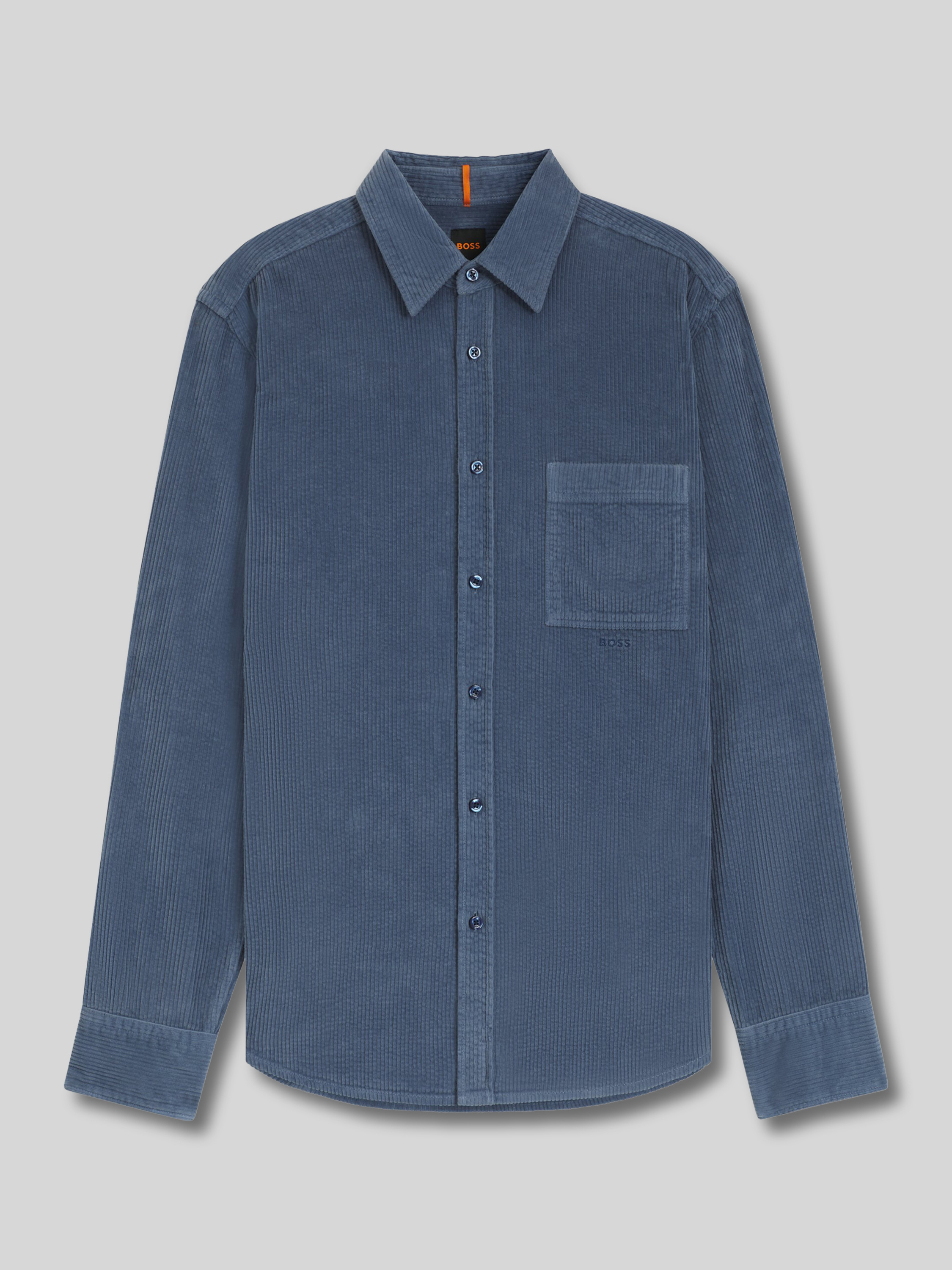 Das Herrenhemd von BOSS Orange präsentiert sich in unifarbener Cord-Optik und bringt durch den Regular Fit eine angenehme Weite mit. Reine Baumwolle sorgt für ein natürliches Tragegefühl, während Kentkragen und Sportmanschetten den klassischen Look ergänzen. Eine dezente Brusttasche rundet das Design ab.