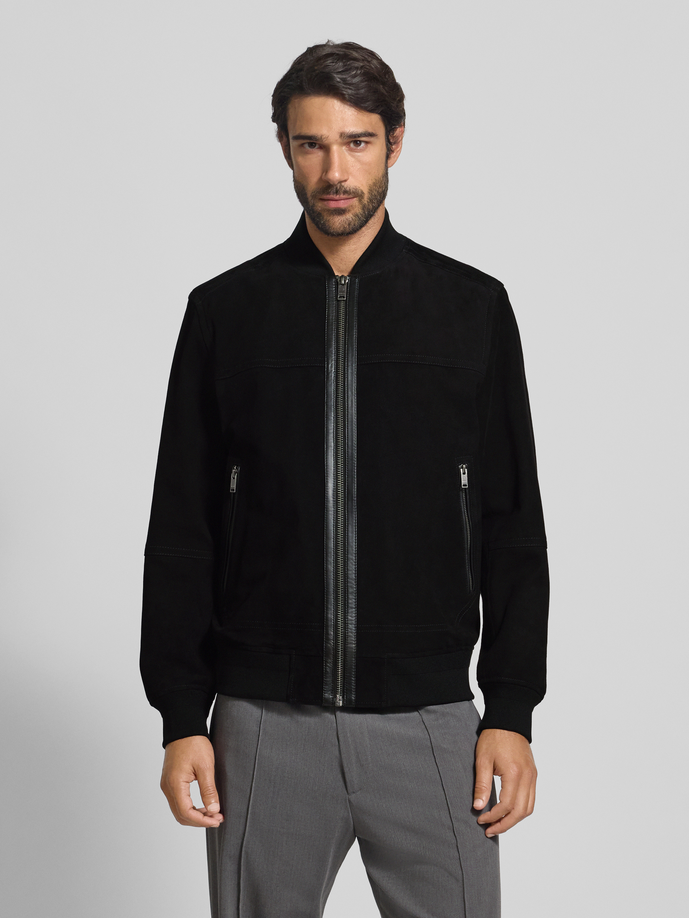 Die Herrenjacke BOSS Orange JOHICE aus echtem Ziegenleder liegt angenehm am Körper und zeigt sich in unifarbener Optik. Durch den Regular Fit und den sportlichen College-Kragen erhält das Modell eine zeitgemäße Note. So eignet sich das weiche Veloursleder für vielseitige Kombinationen.