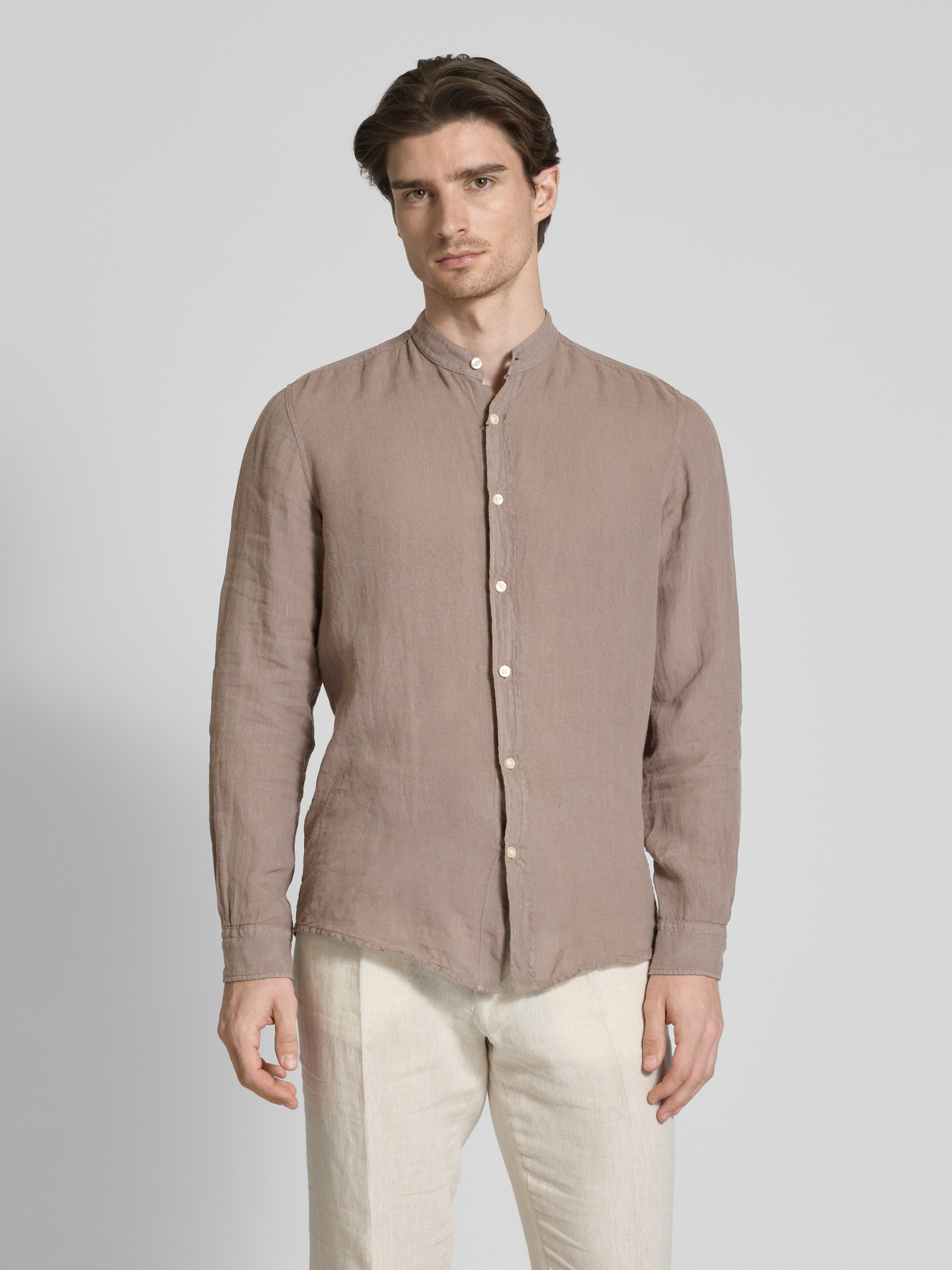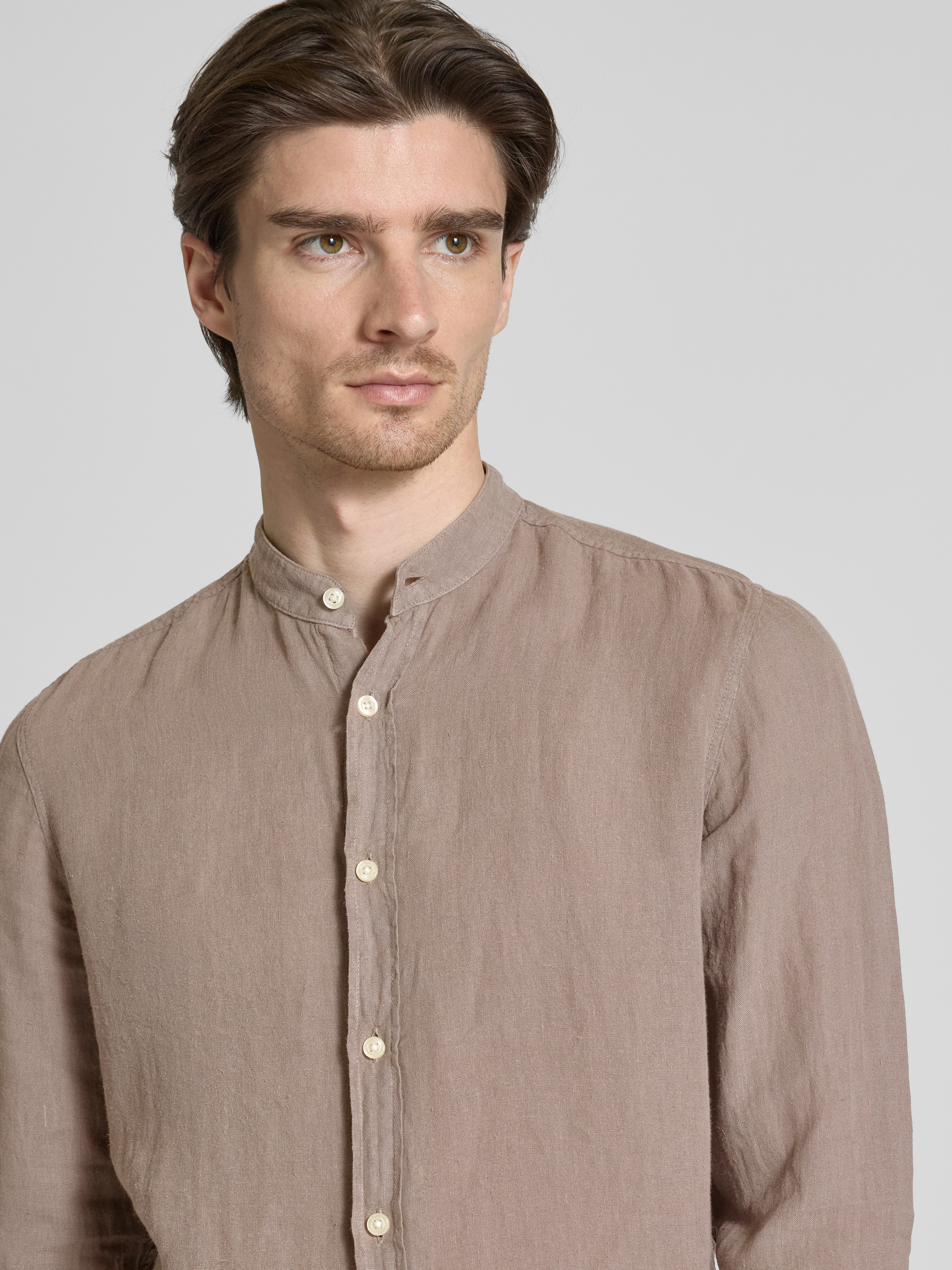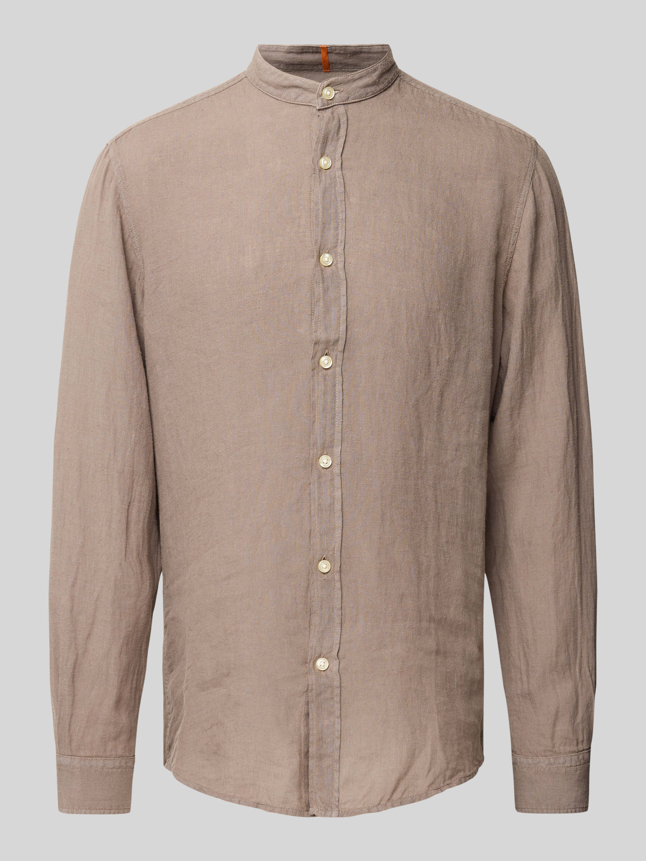BOSS OrangeRegular Fit Leinenhemd mit Stehkragen Modell 'Race' in hellbraun