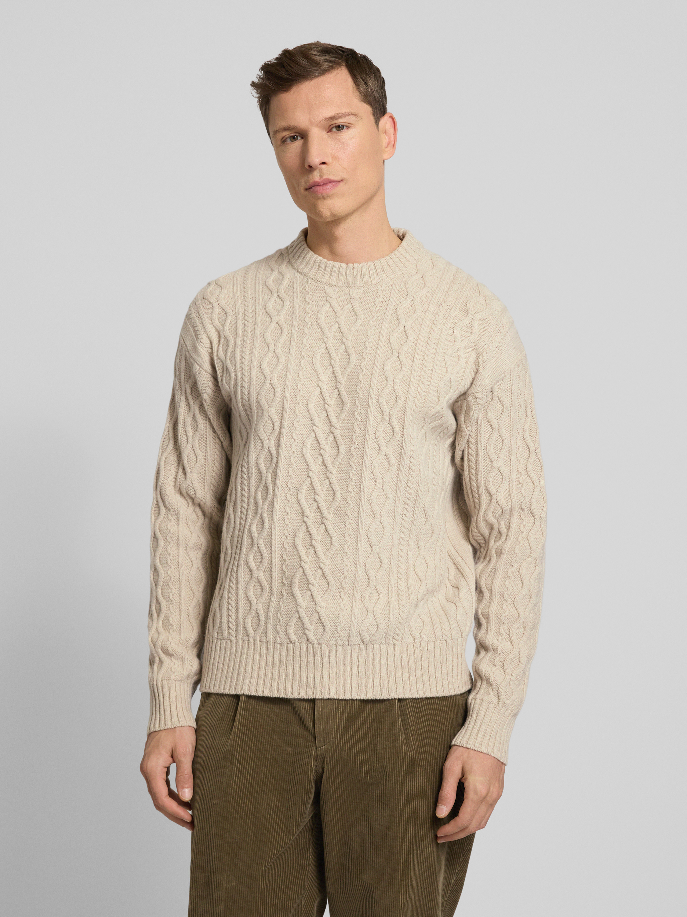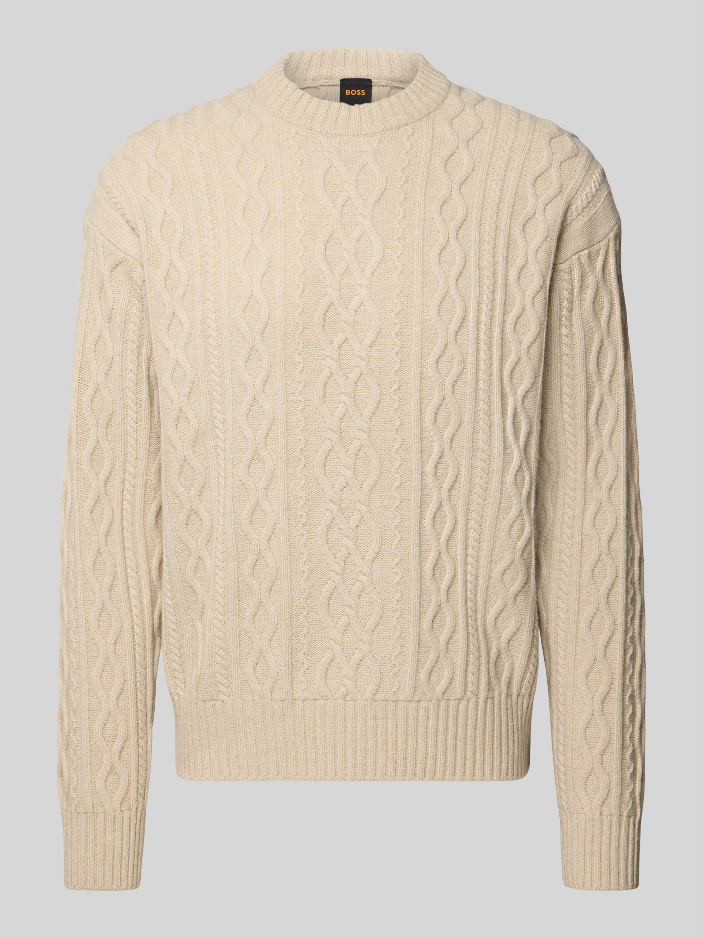 BOSS OrangeRegular Fit Strickpullover aus reiner Schurwolle Modell 'KABLETO' in sand