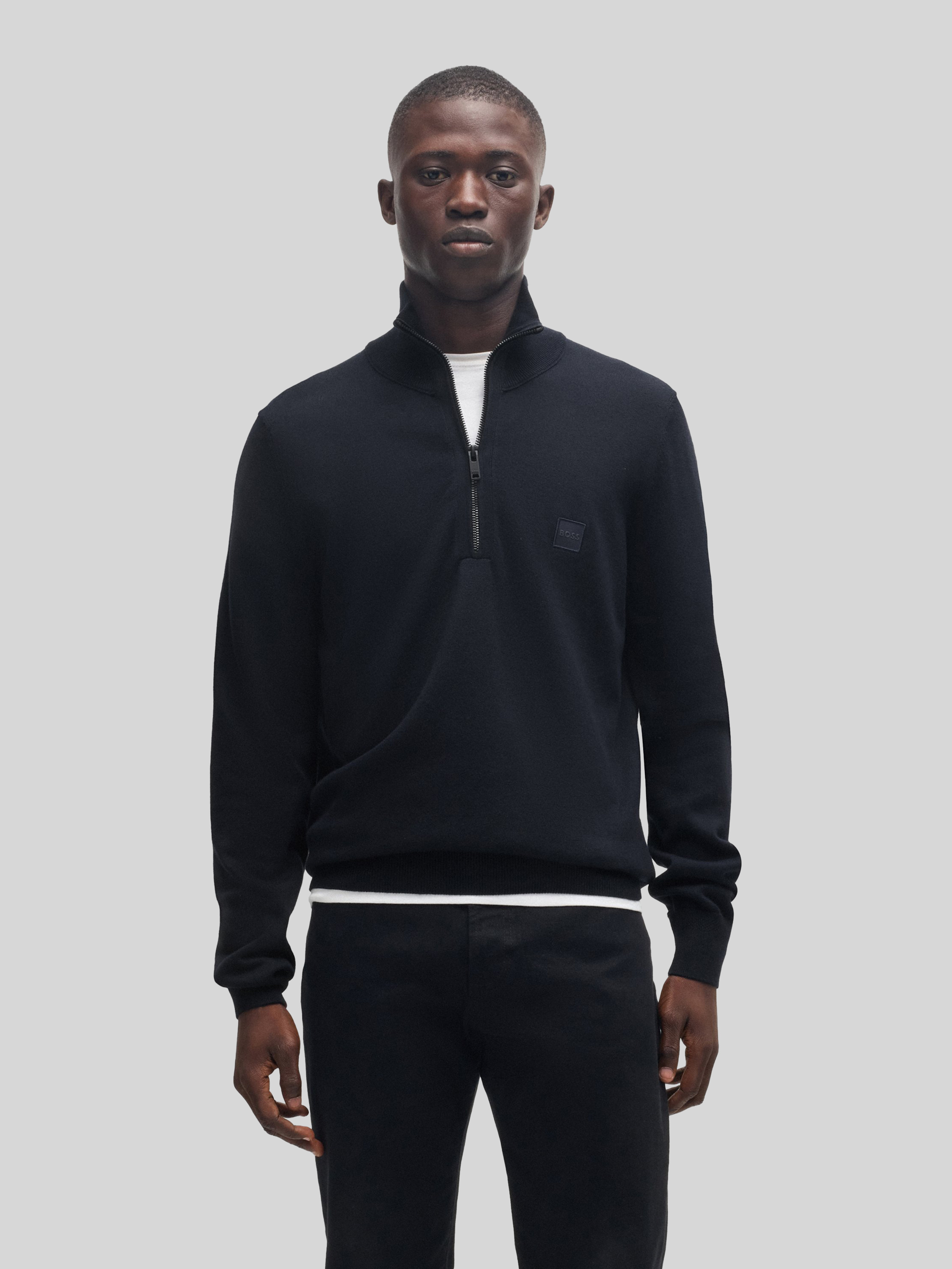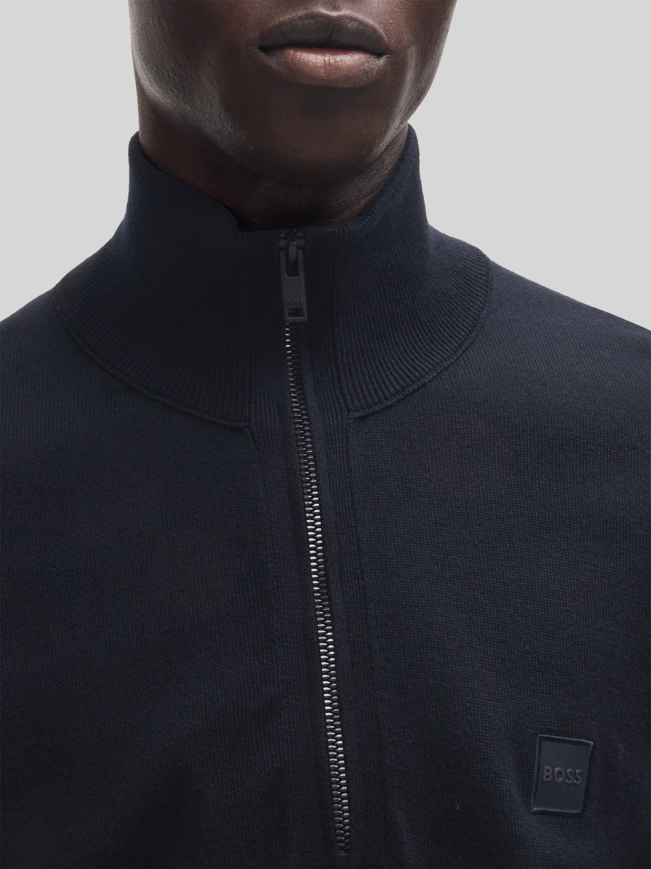 BOSS OrangeRegular Fit Troyer aus Baumwoll-Kaschmir-Mix Modell 'KANOBIX_S' in dunkelblau