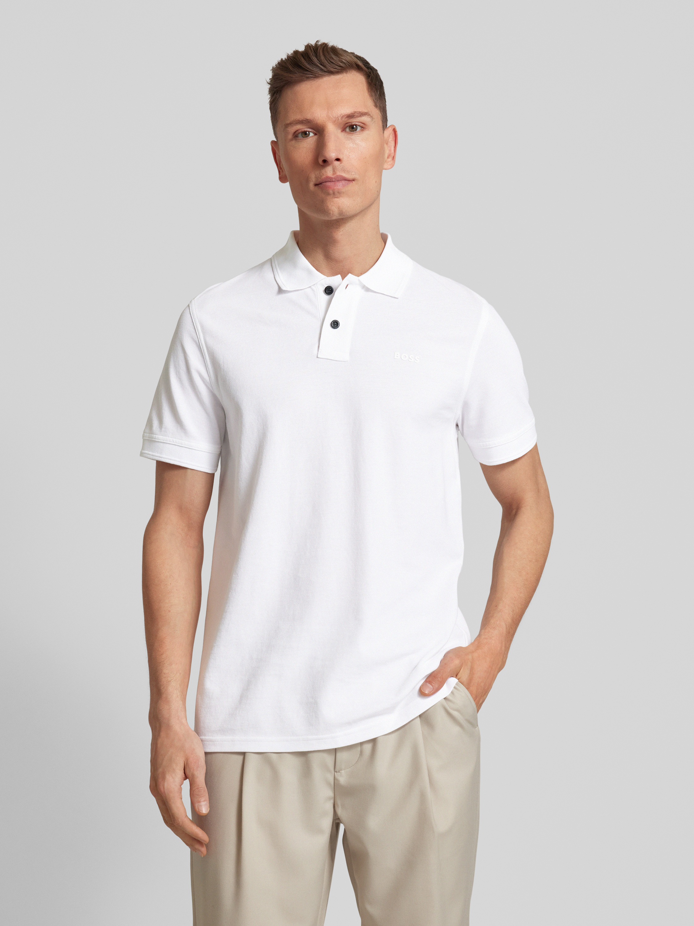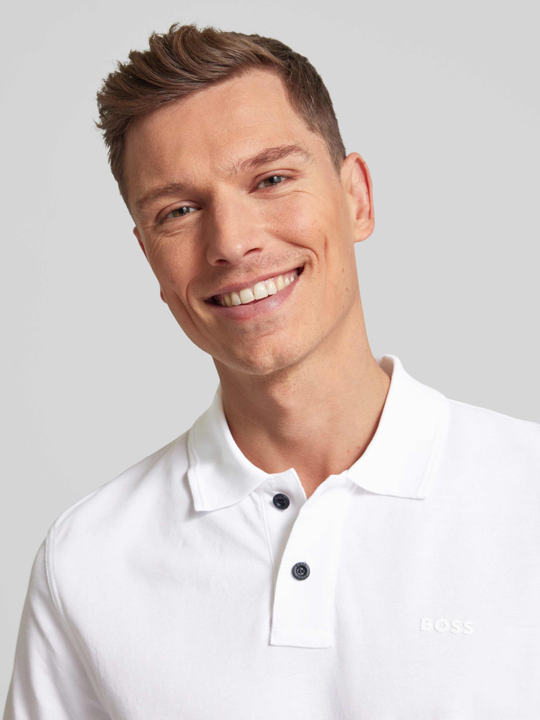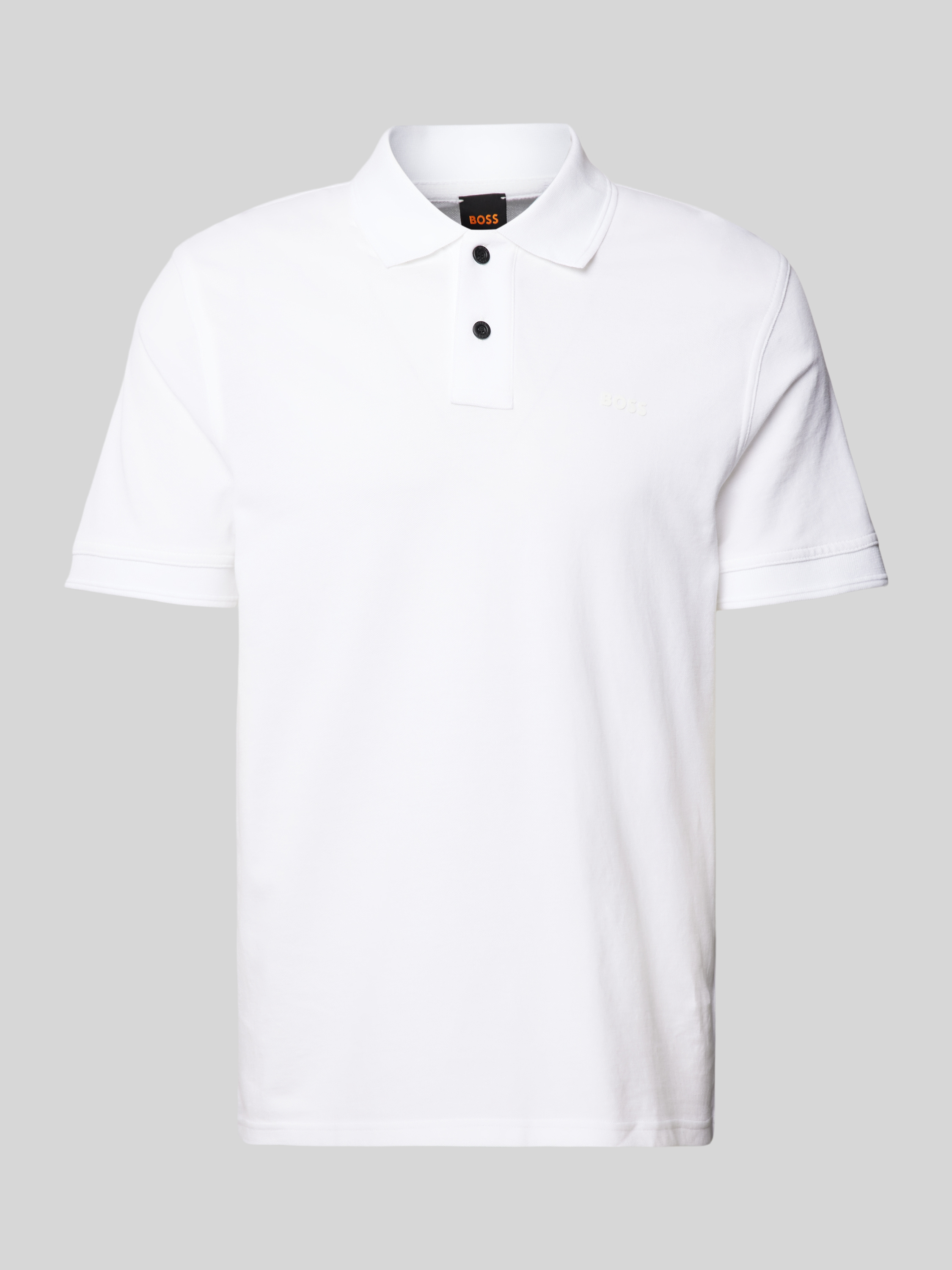BOSS OrangeSlim Fit Poloshirt mit kurzer Knopfleiste Modell 'Prime' in weiss