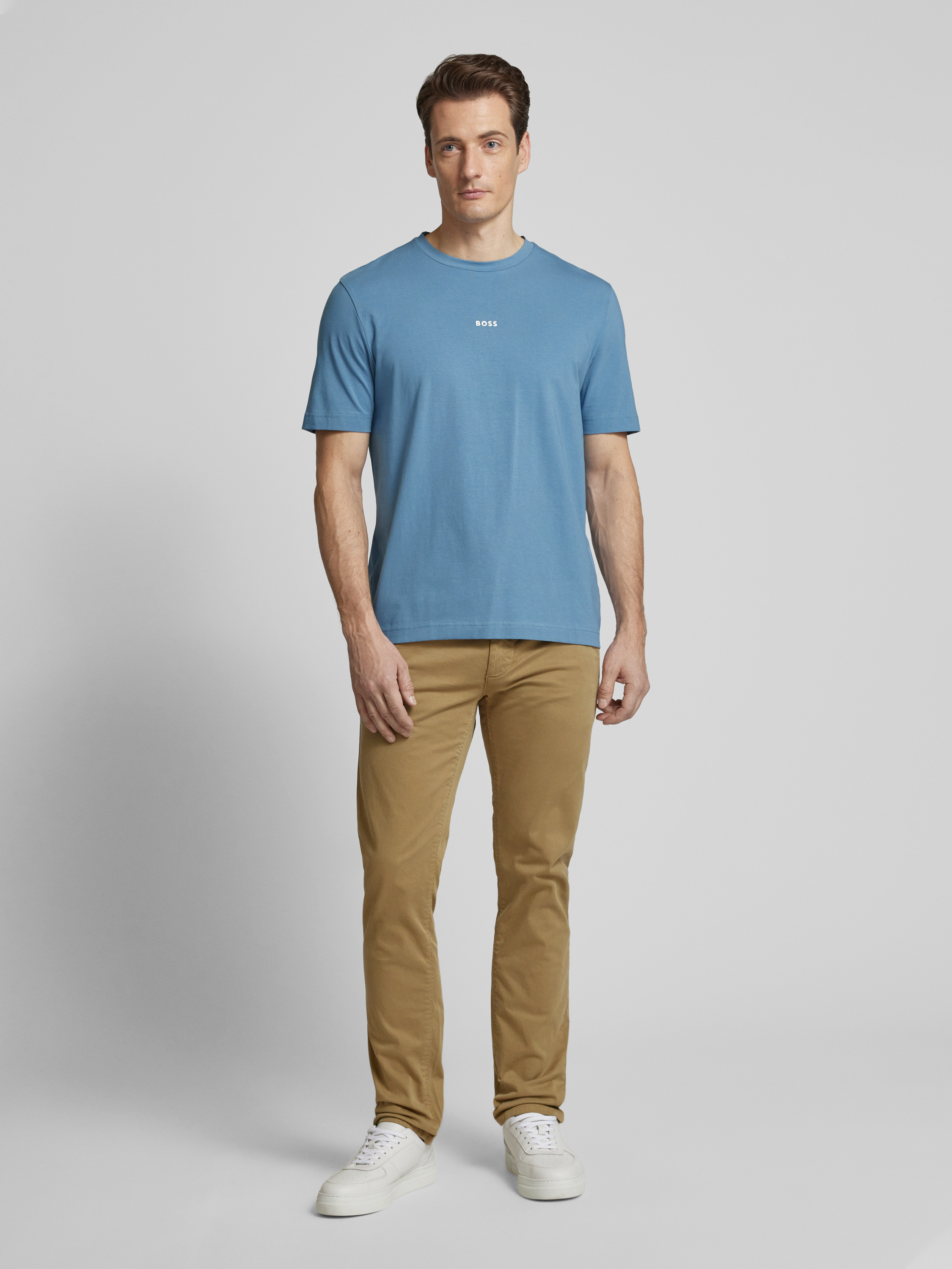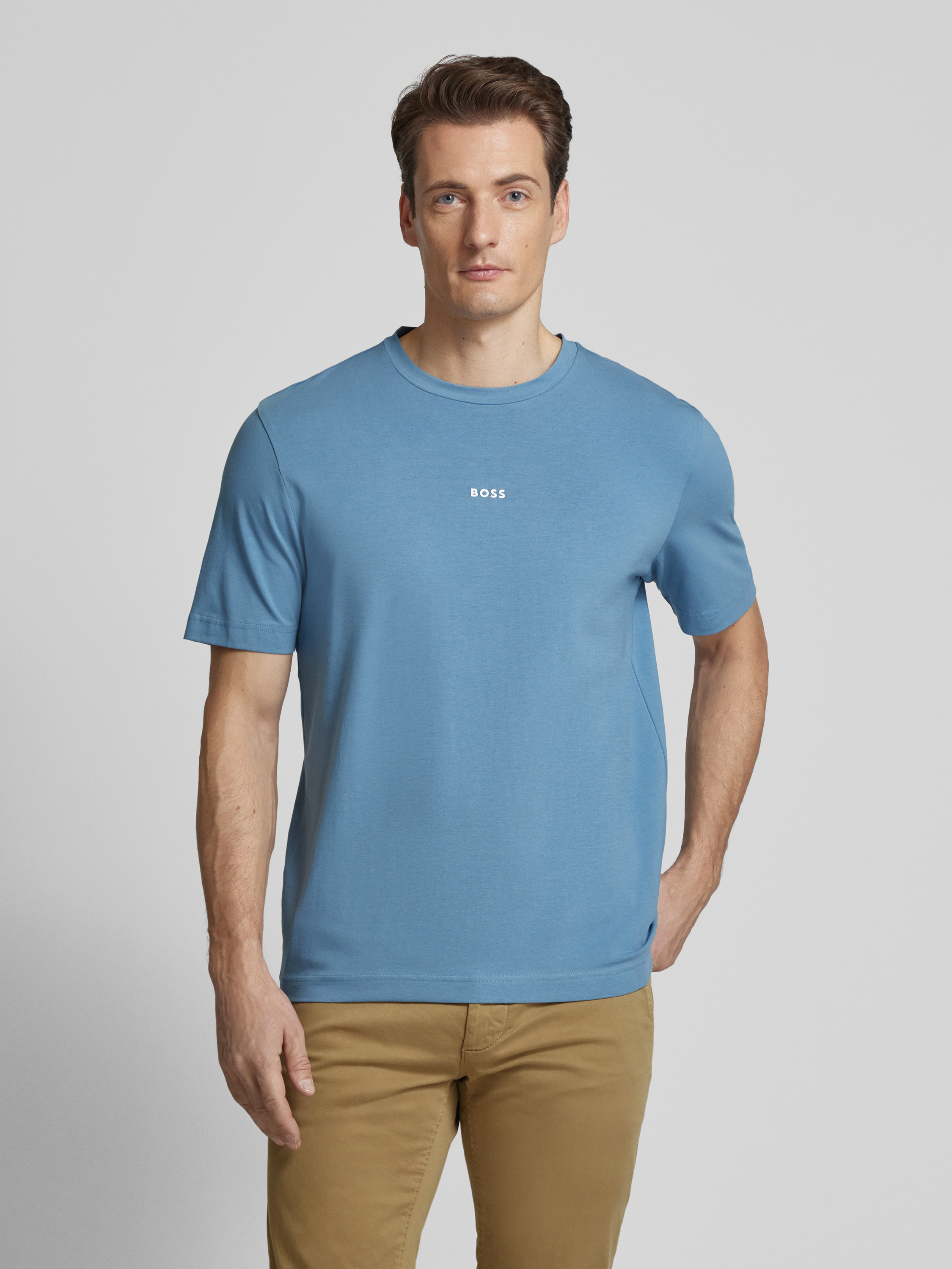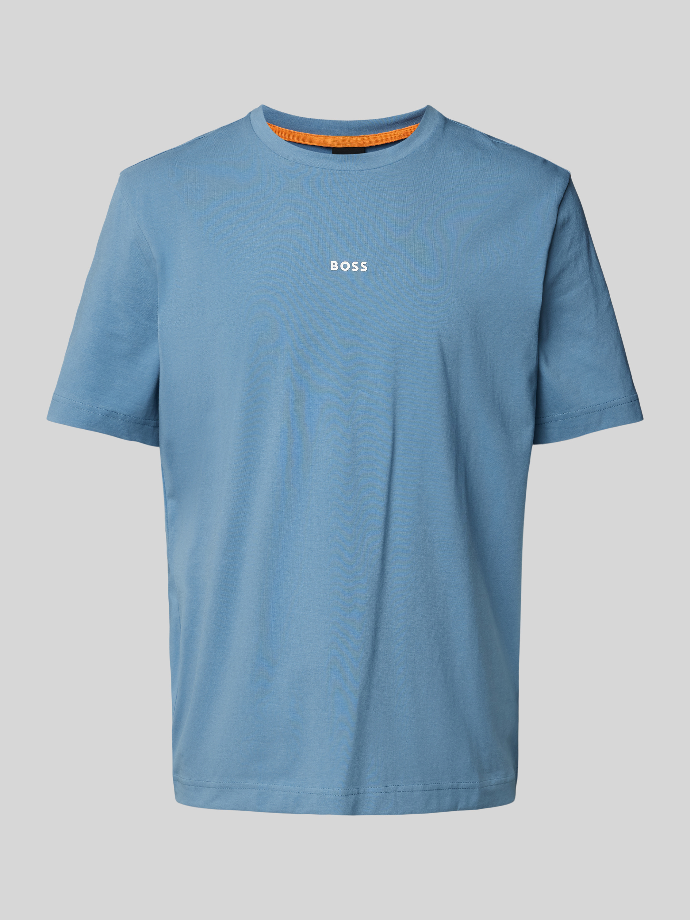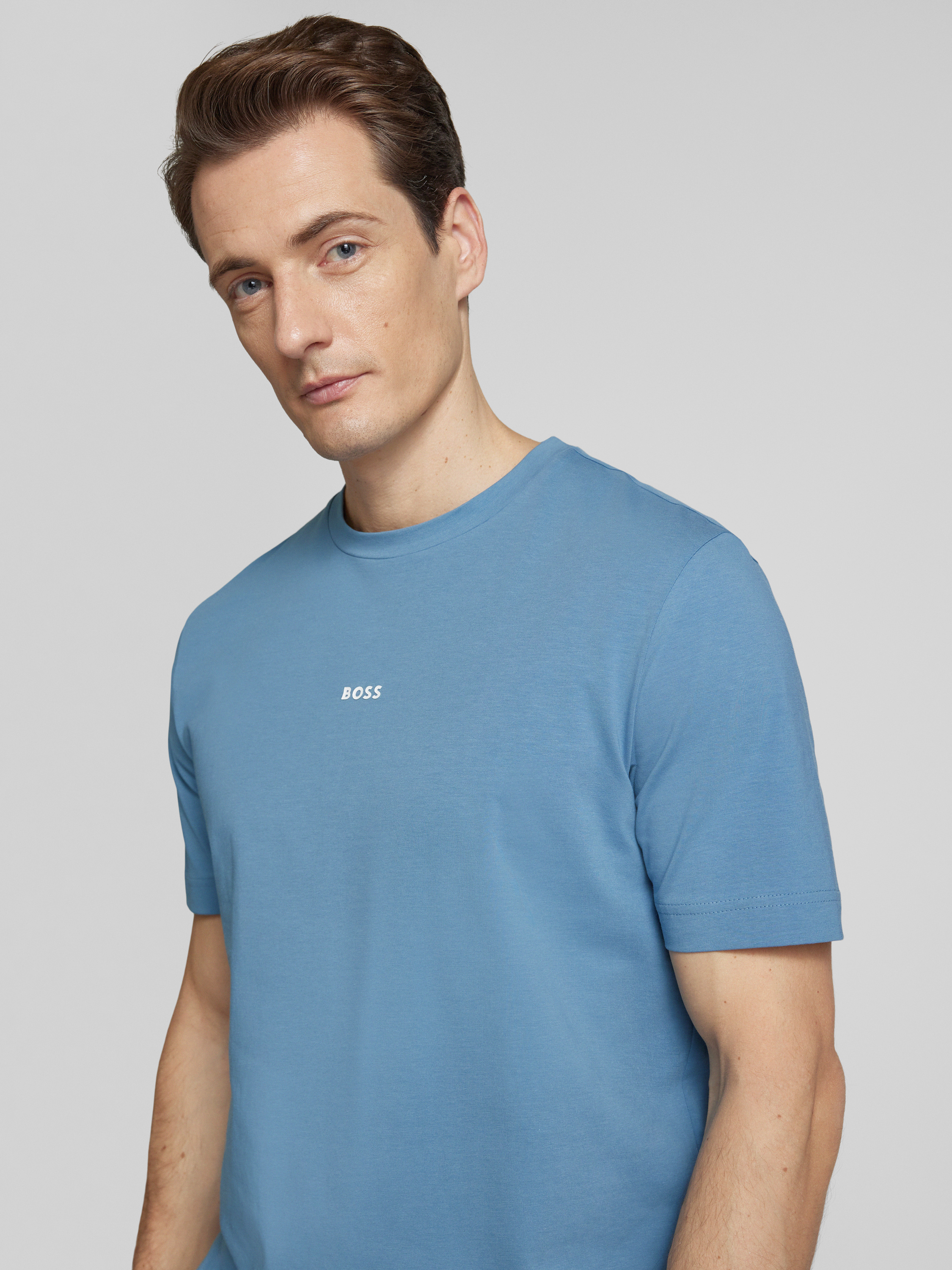 Das Herren T-Shirt von BOSS Orange kombiniert einen Baumwoll-Elasthan-Mix mit einem lockeren Regular Fit, der angenehm auf der Haut liegt. Der markante Label-Print sorgt für einen modernen Akzent, während der gerippte Rundhalsausschnitt eine klassische Note verleiht. Ideal für einen lässigen Auftritt.