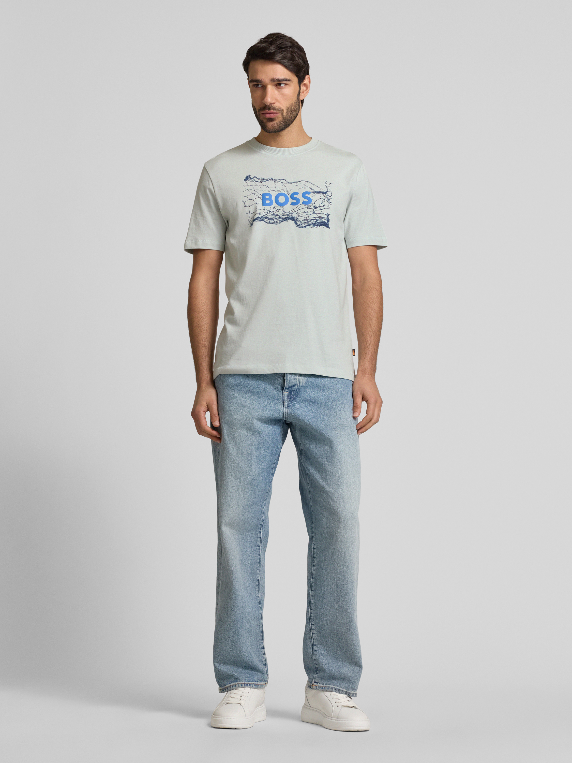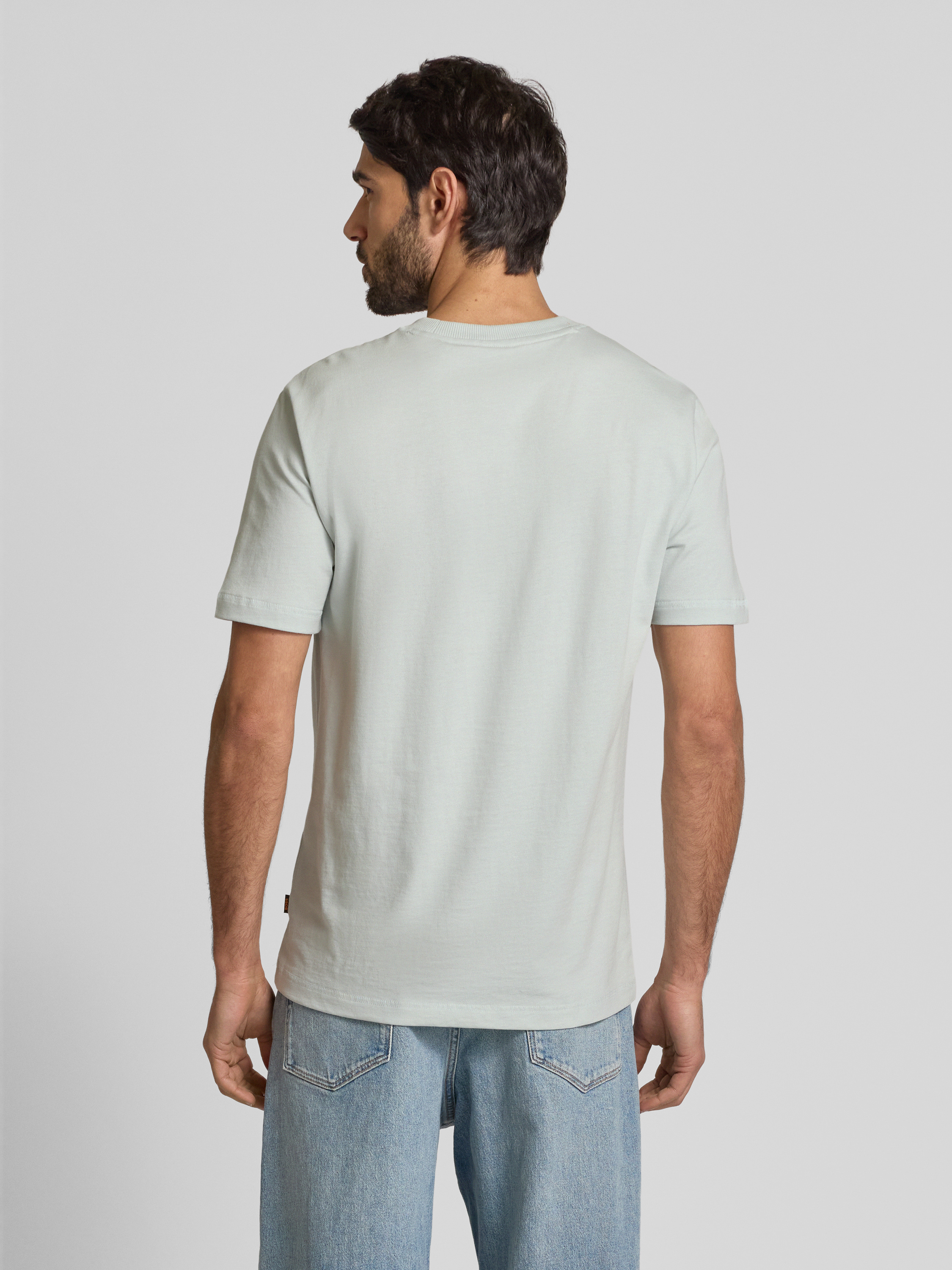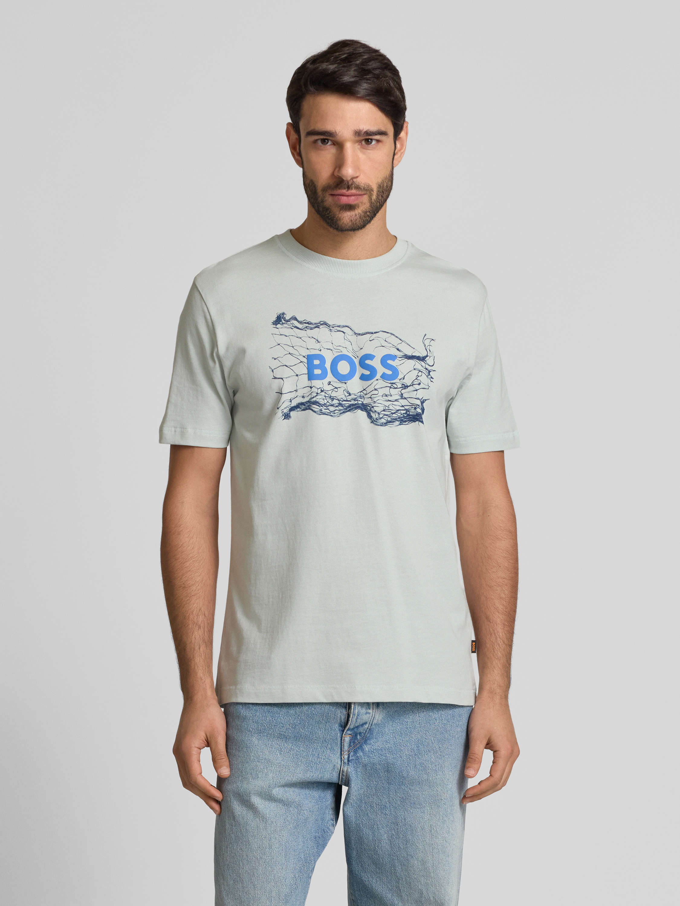 Das Herren T-Shirt von BOSS Orange aus reiner Baumwolle kombiniert lässigen Komfort mit einem markanten Label-Print. Der Regular Fit sorgt für eine angenehme Passform, während der gerippte Rundhalsausschnitt ein klassisches Element hinzufügt. Ideal für vielseitige Alltagslooks geeignet.