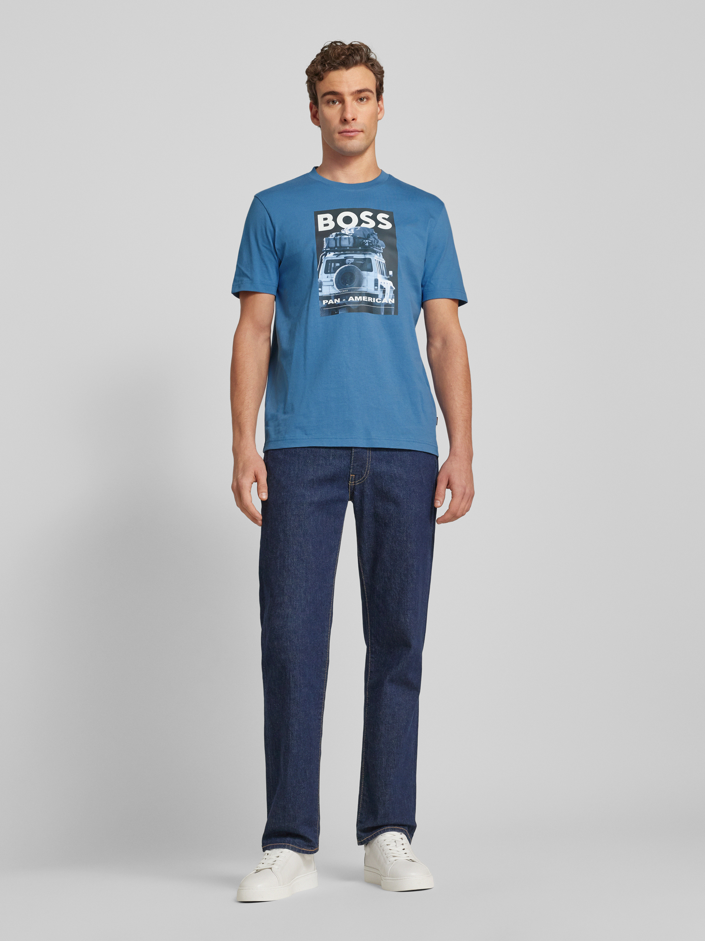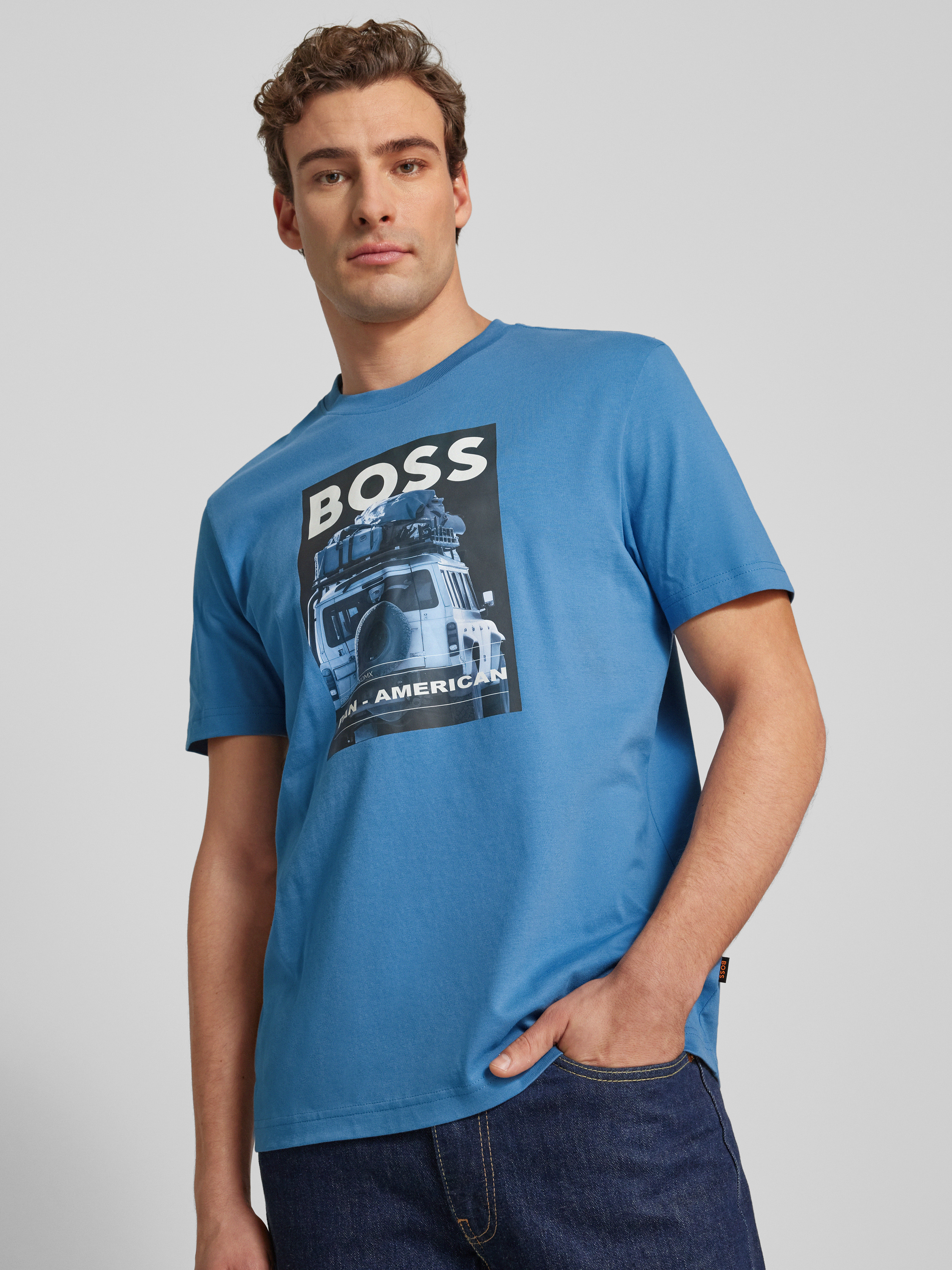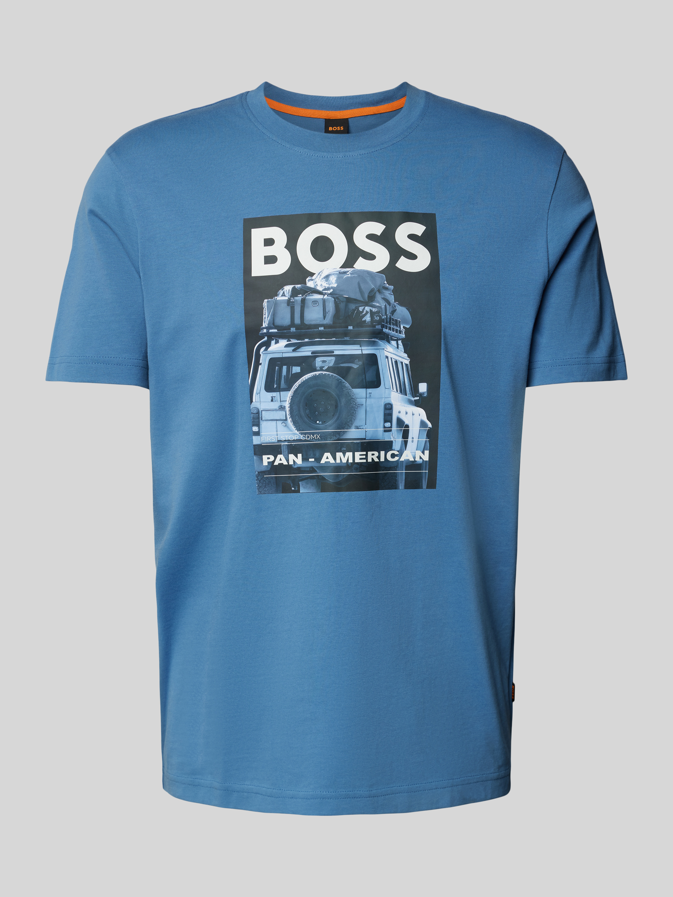BOSS OrangeT-Shirt mit Label- und Motiv-Print Modell 'mextour' in hellblau