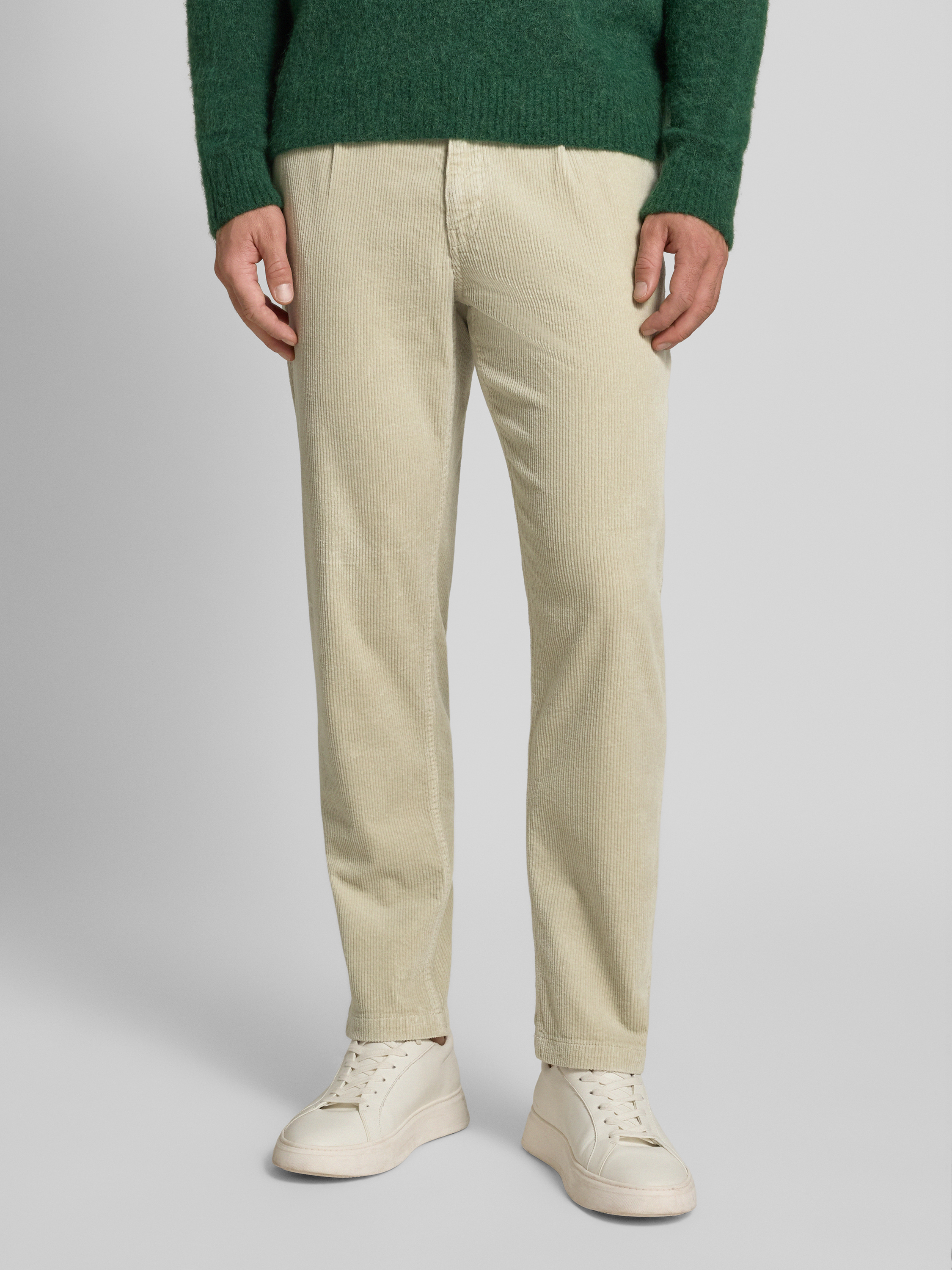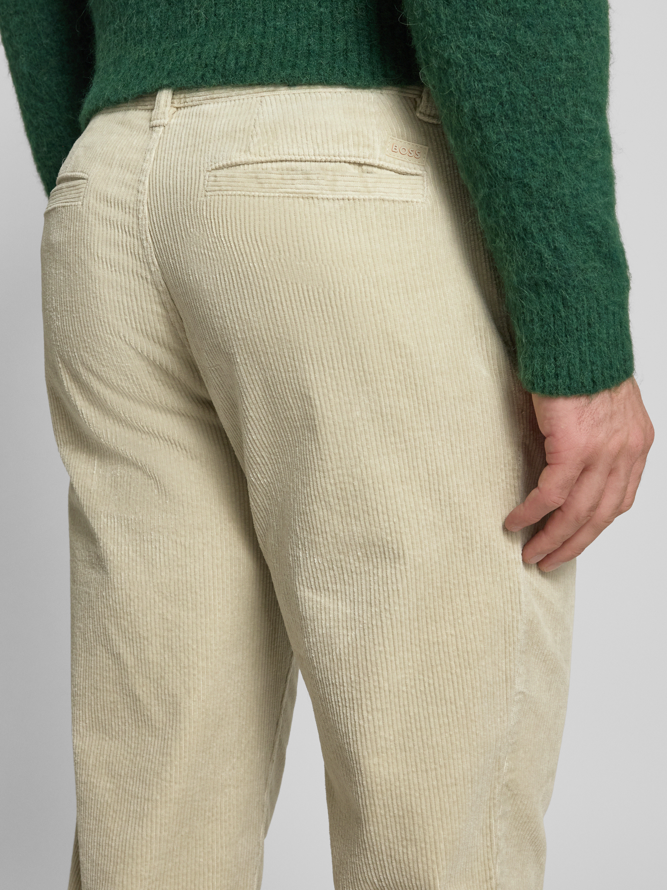 Die Herren Cordhose von BOSS Orange im Tapered Schnitt verbindet eine moderne Silhouette mit angenehm weicher Haptik durch den Baumwoll-Mix. Die Bundfalte verleiht dem Modell eine gepflegte Note, während das unifarbene Design vielseitige Kombinationsmöglichkeiten schafft. Ein dezenter Label Patch rundet das Erscheinungsbild ab.