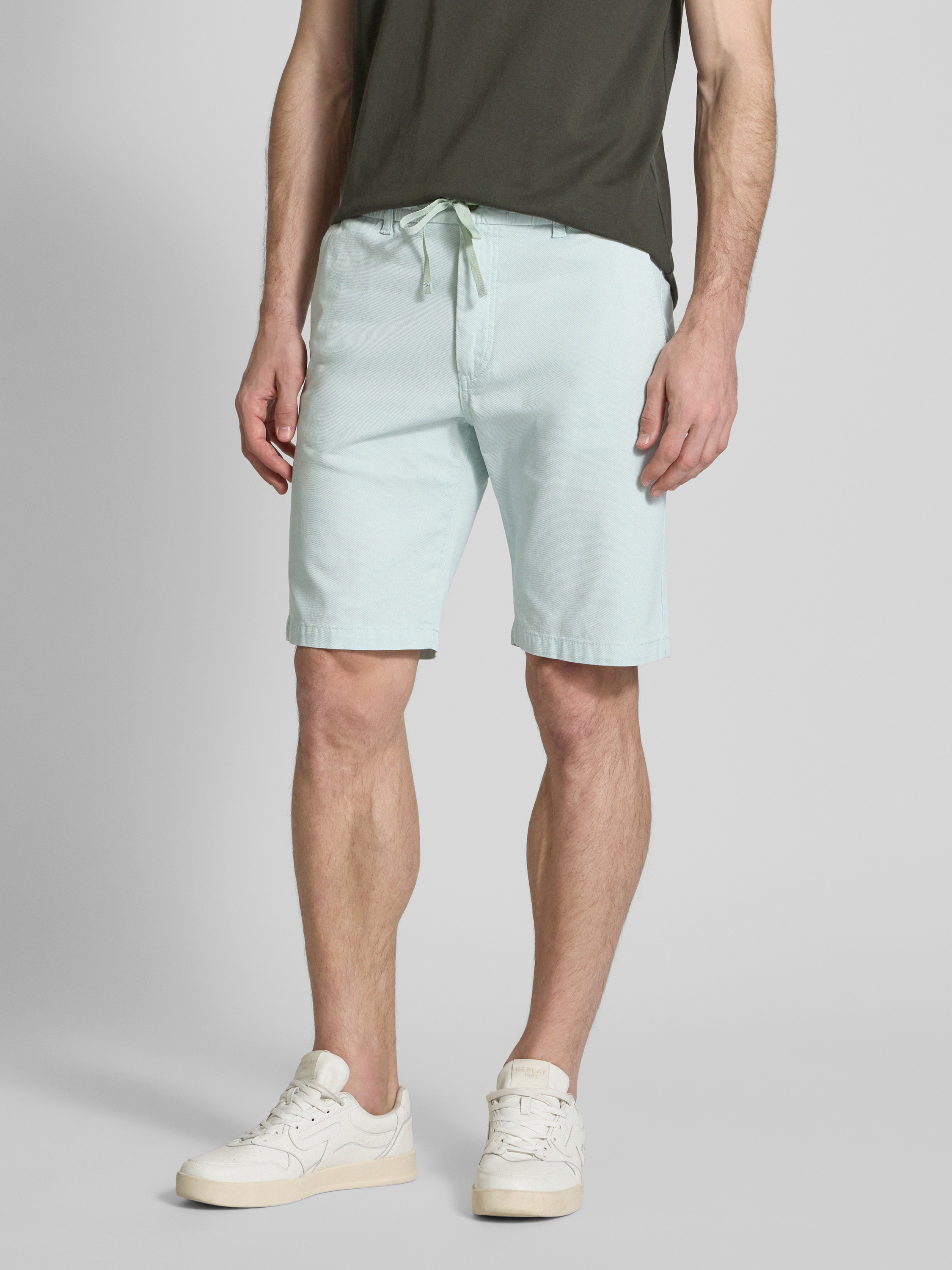 BOSS OrangeTapered Fit Bermudas mit elastischem Bund Modell 'Chino' in lind