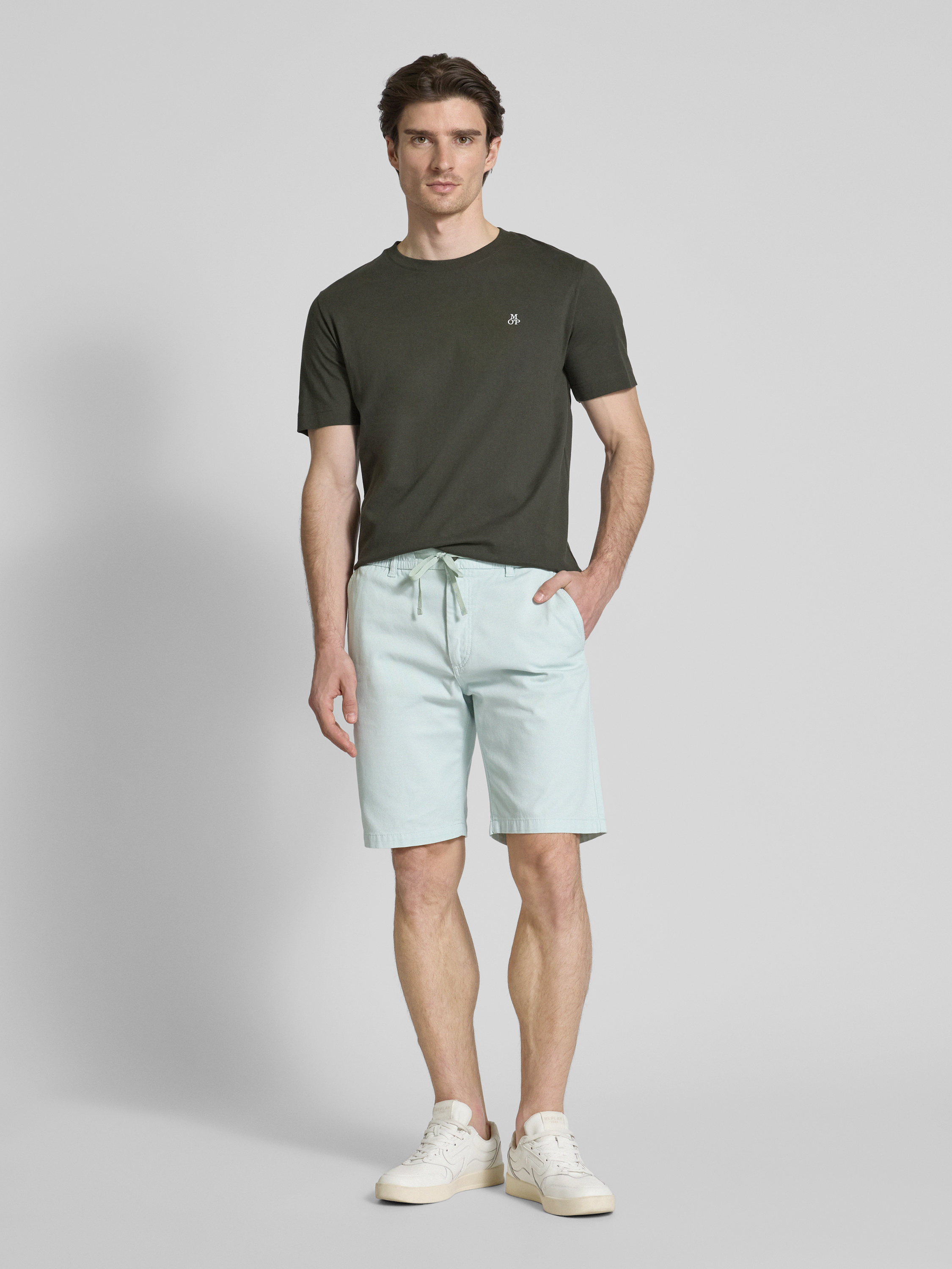 Die Tapered Fit Bermudas von BOSS Orange im Modell 'Chino' kombinieren einen Baumwoll-Elasthan-Mix mit einem entspannten Schnitt, der Bewegungsfreiheit und Komfort bietet. Durch den elastischen Bund mit Tunnelzug passen sie sich individuell an. Praktische Eingrifftaschen runden das Design ab.