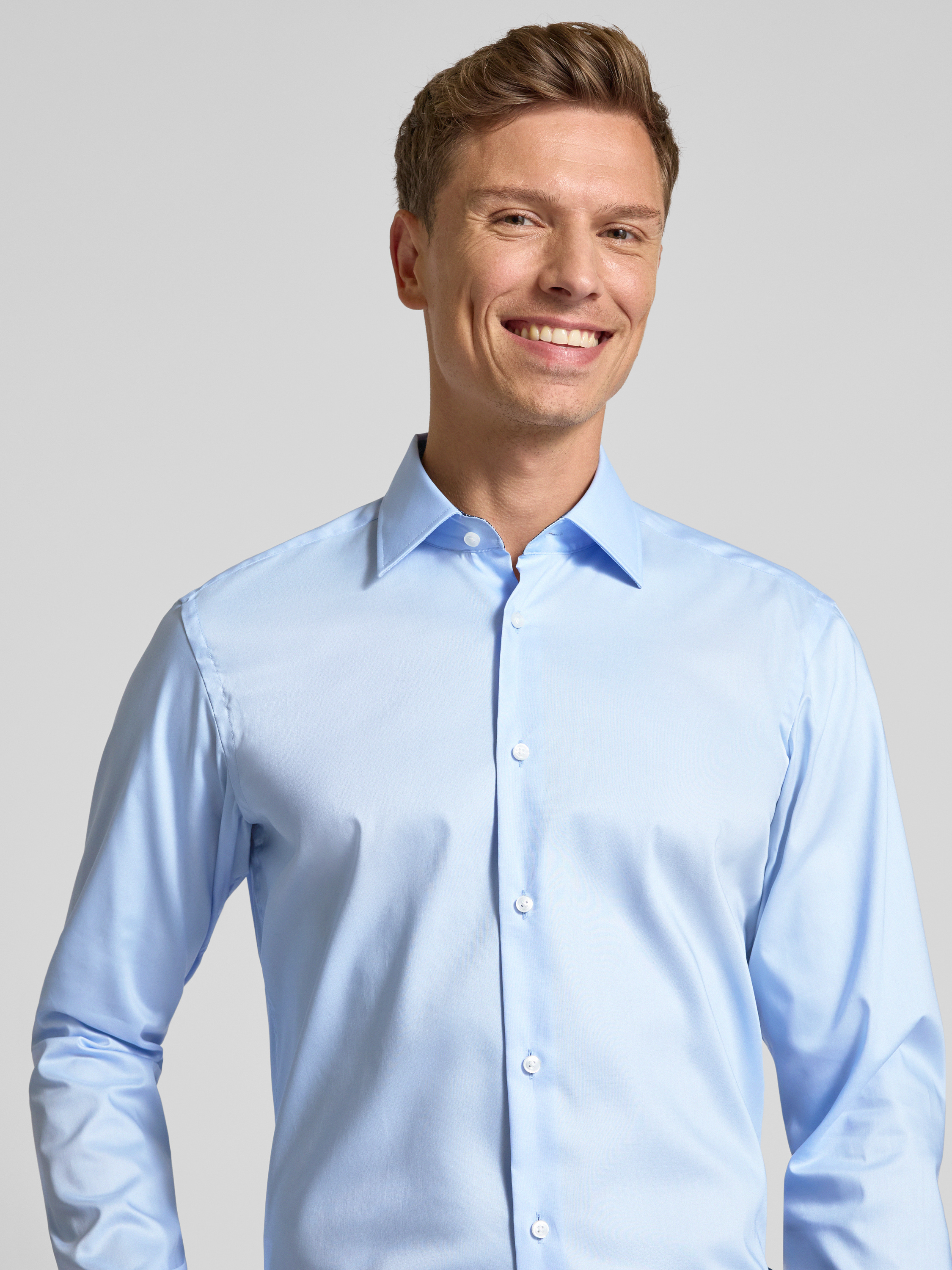 Das Herrenhemd von BOSS erscheint in klassischer, unifarbener Optik und liegt durch seinen Regular Fit angenehm am Körper. Reine Baumwolle sorgt dabei für ein komfortables Tragegefühl im Alltag. Der Kentkragen und lange Ärmel mit Sportmanschetten unterstreichen den zeitlosen Charakter.