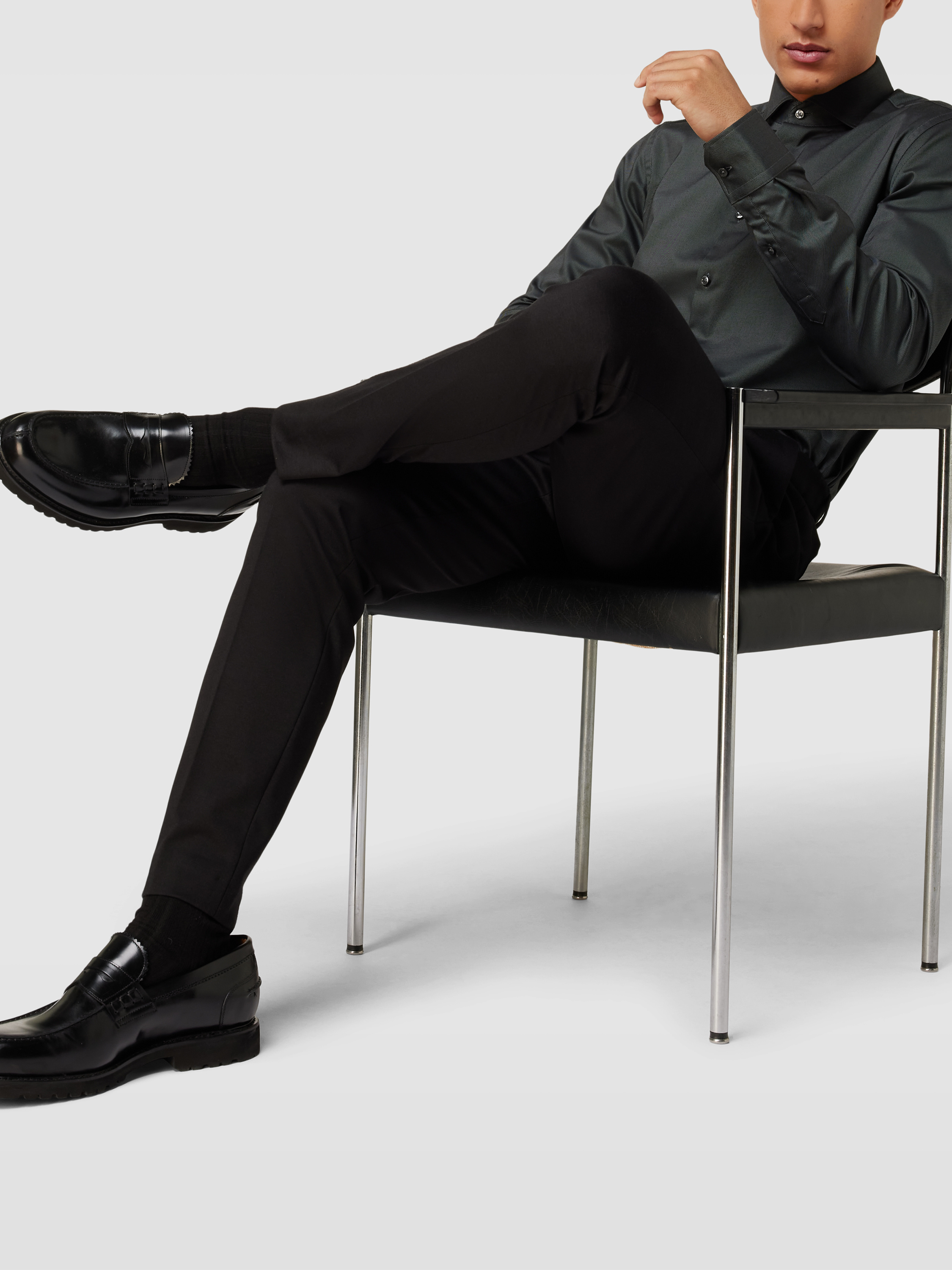 BOSSRegular Fit Businesshemd aus Twill mit extra langem Arm in anthrazit