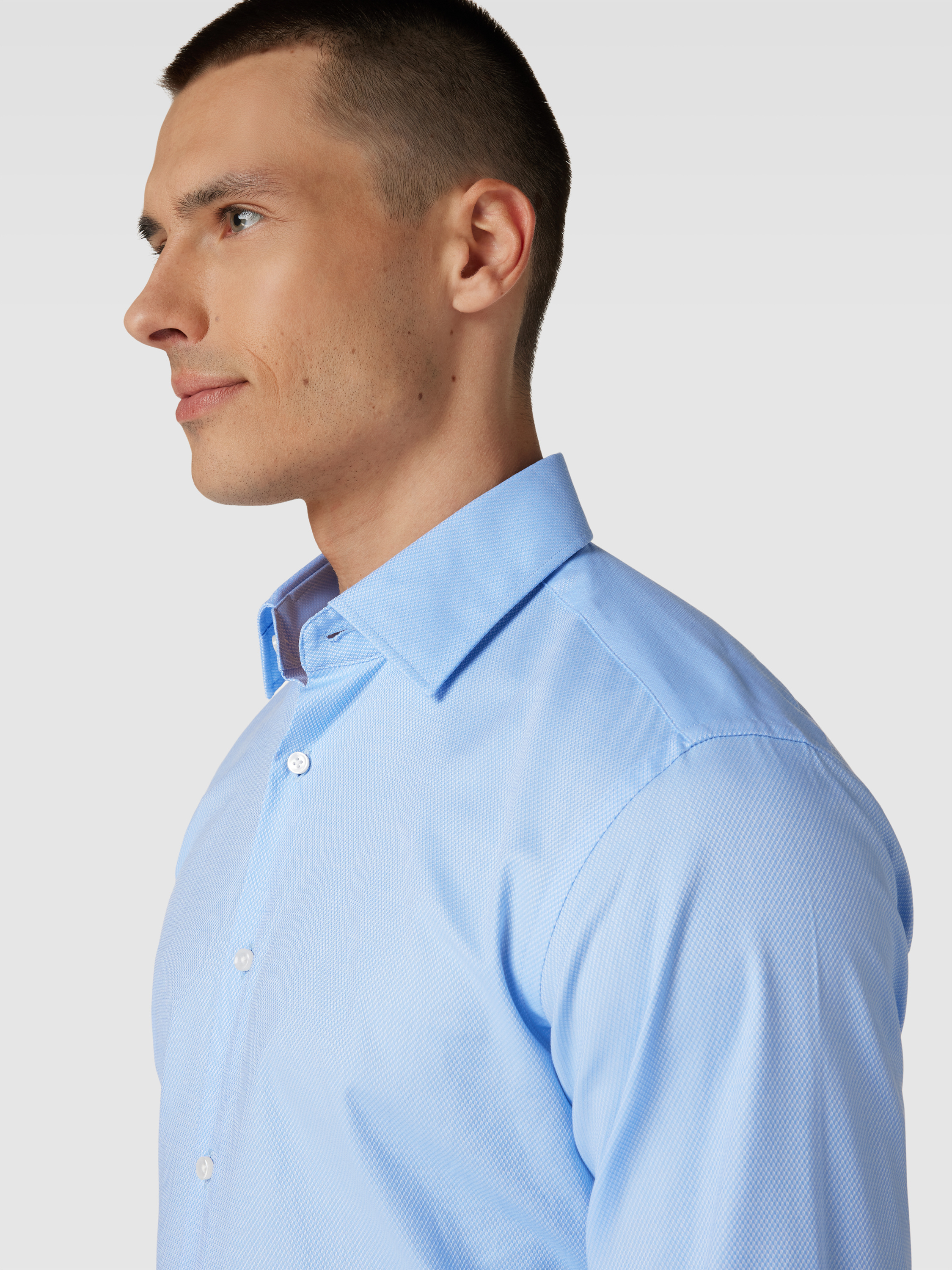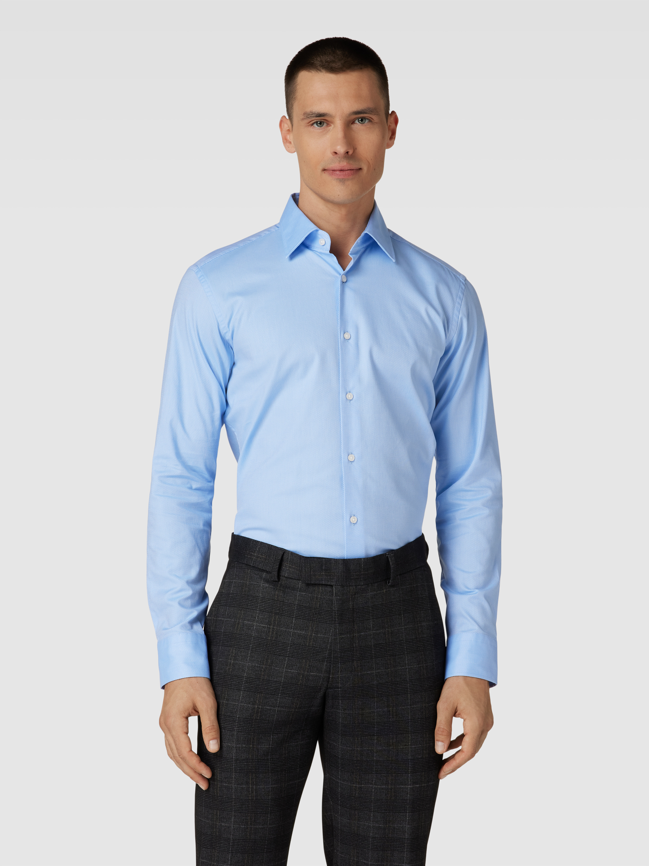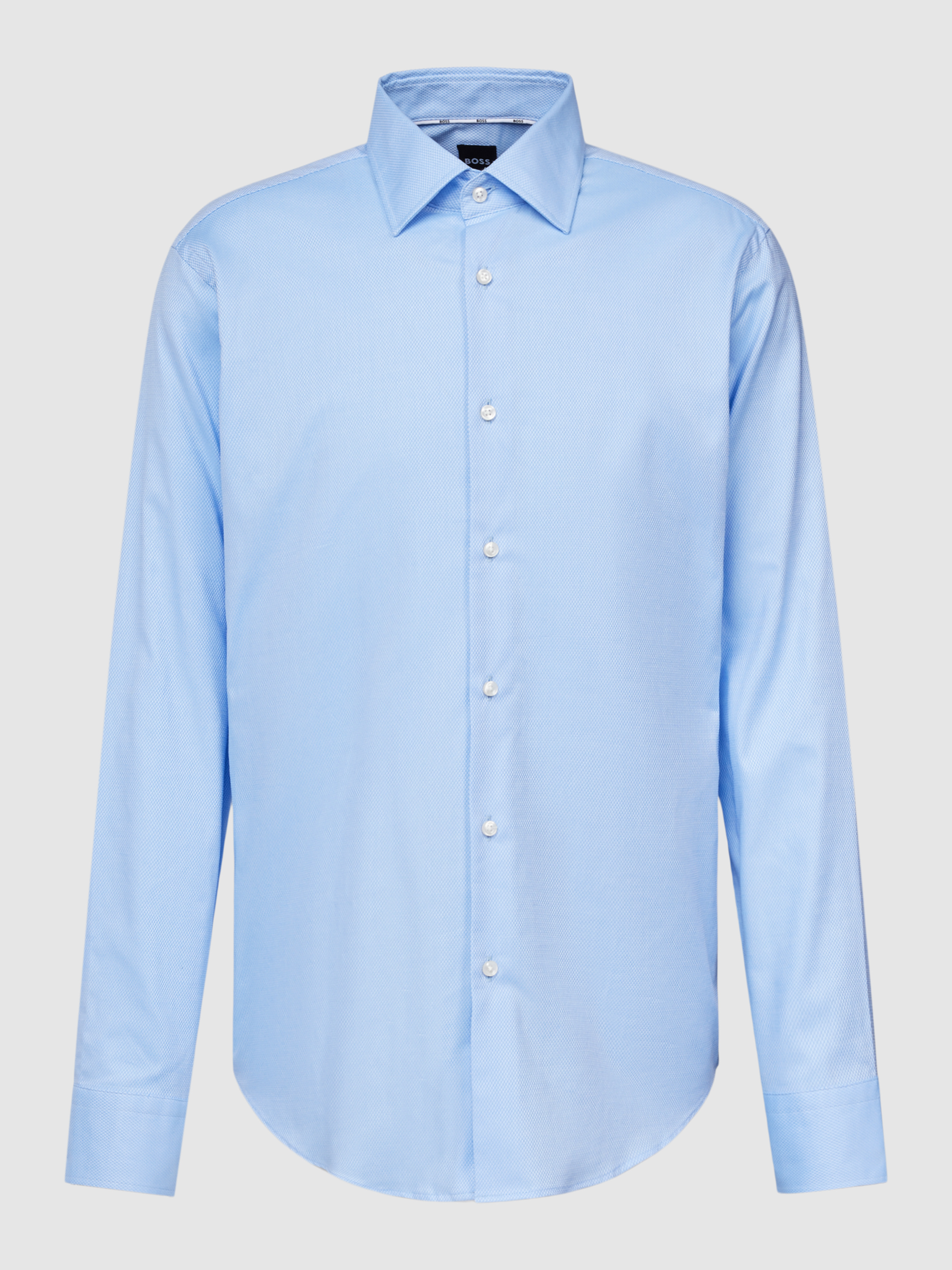 Das Herrenhemd von BOSS, Modell Joe, zeigt sich im Regular Fit und bringt durch seinen Baumwoll-Mix mit Stretch-Anteil angenehme Bewegungsfreiheit in den Alltag. Das unifarbene Design und der klassische Kentkragen passen zu unterschiedlichen Business-Looks. Dank Easycare-Ausrüstung bleibt das Hemd unkompliziert in der Pflege.