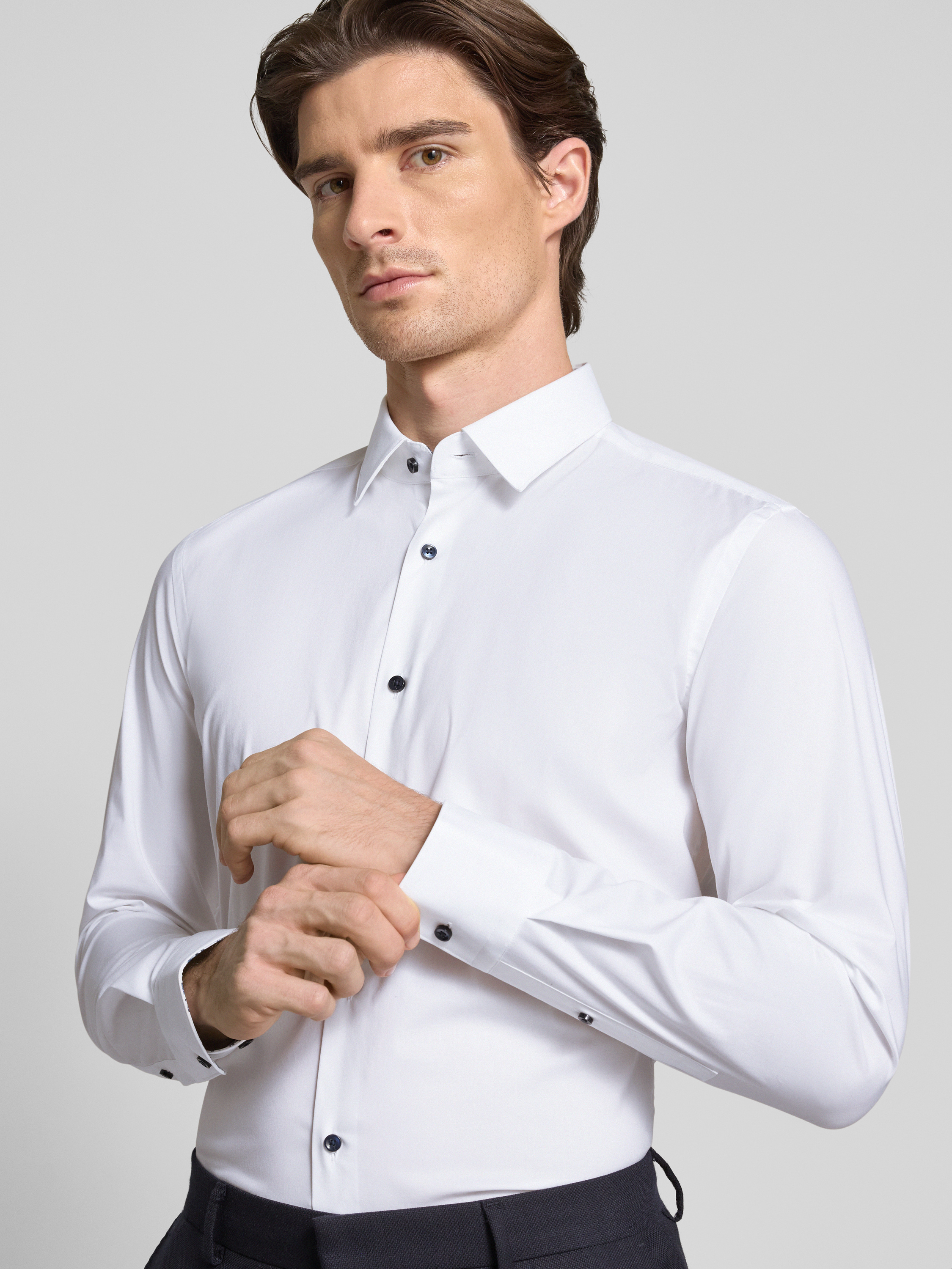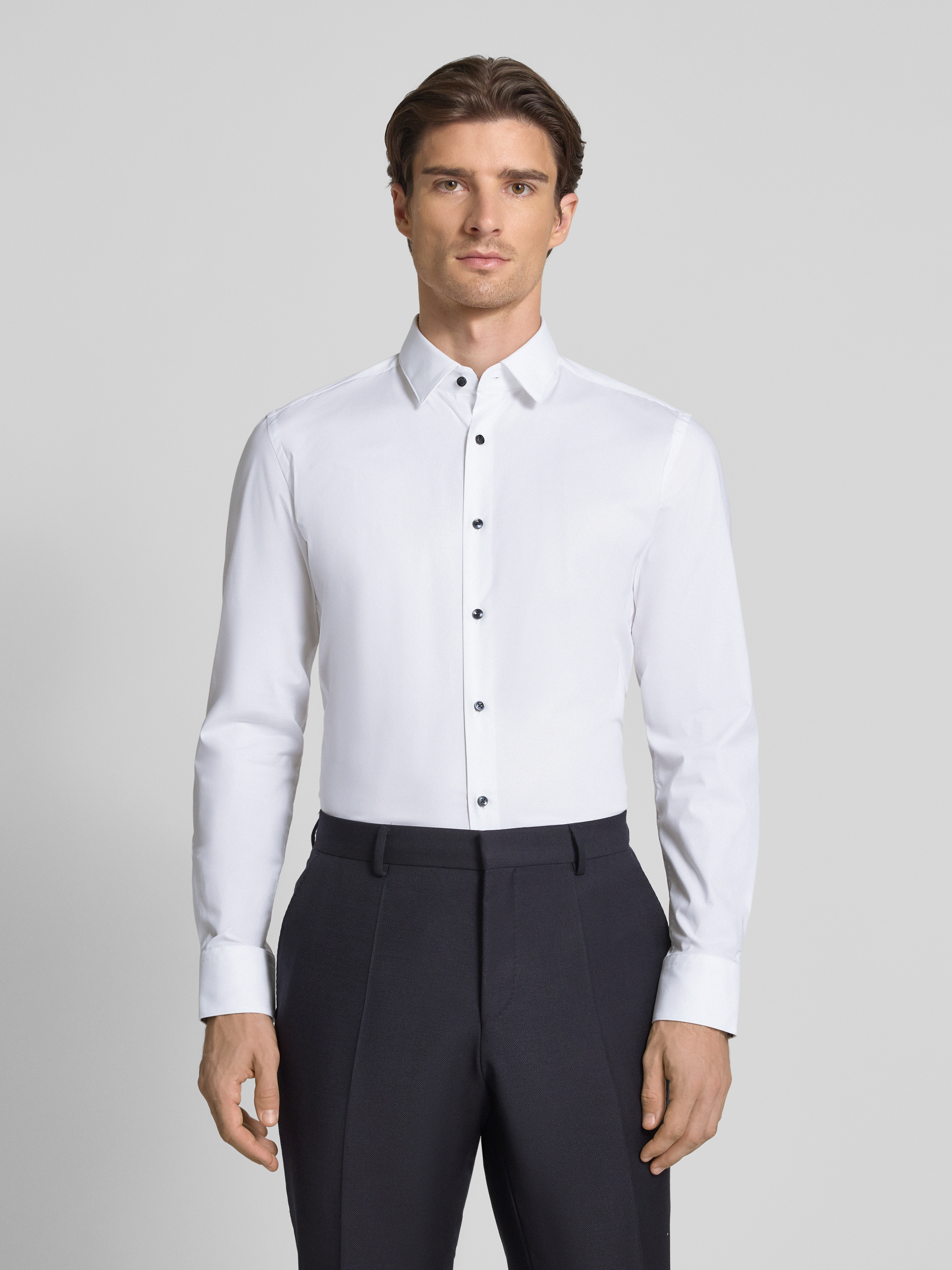 BOSSSlim Fit Businesshemd aus Baumwoll-Mix Modell 'HANK' in weiss