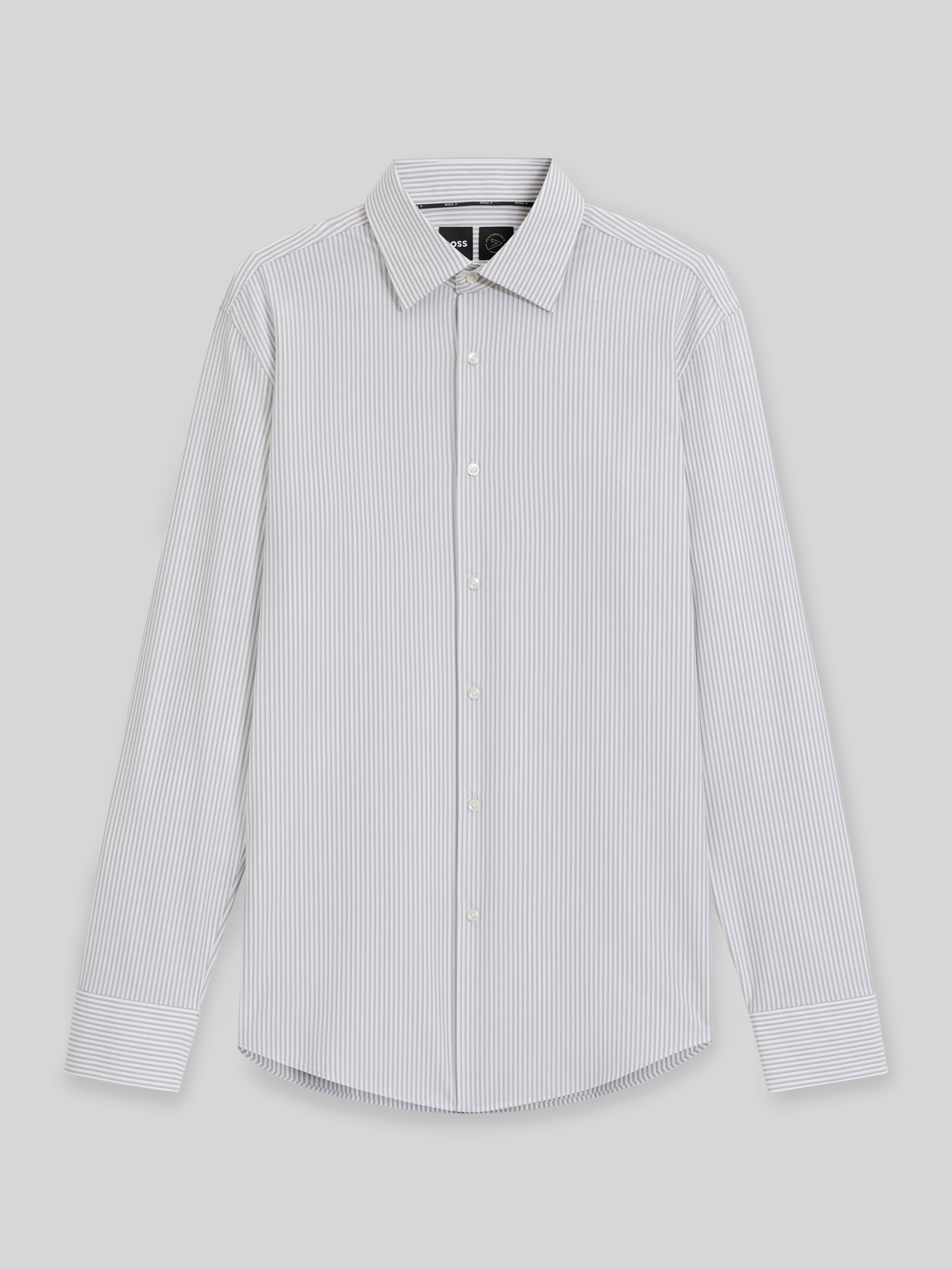 Das Herrenhemd BOSS Hank fällt durch sein dezentes Streifenmuster angenehm ins Auge und bringt dank schlanker Passform eine moderne Silhouette hervor. Ein klassischer Kentkragen sorgt für einen gepflegten Eindruck, während das atmungsaktive Material angenehmen Tragekomfort auch an langen Tagen ermöglicht. Stretch-Anteil unterstützt Bewegungsfreiheit im Alltag.