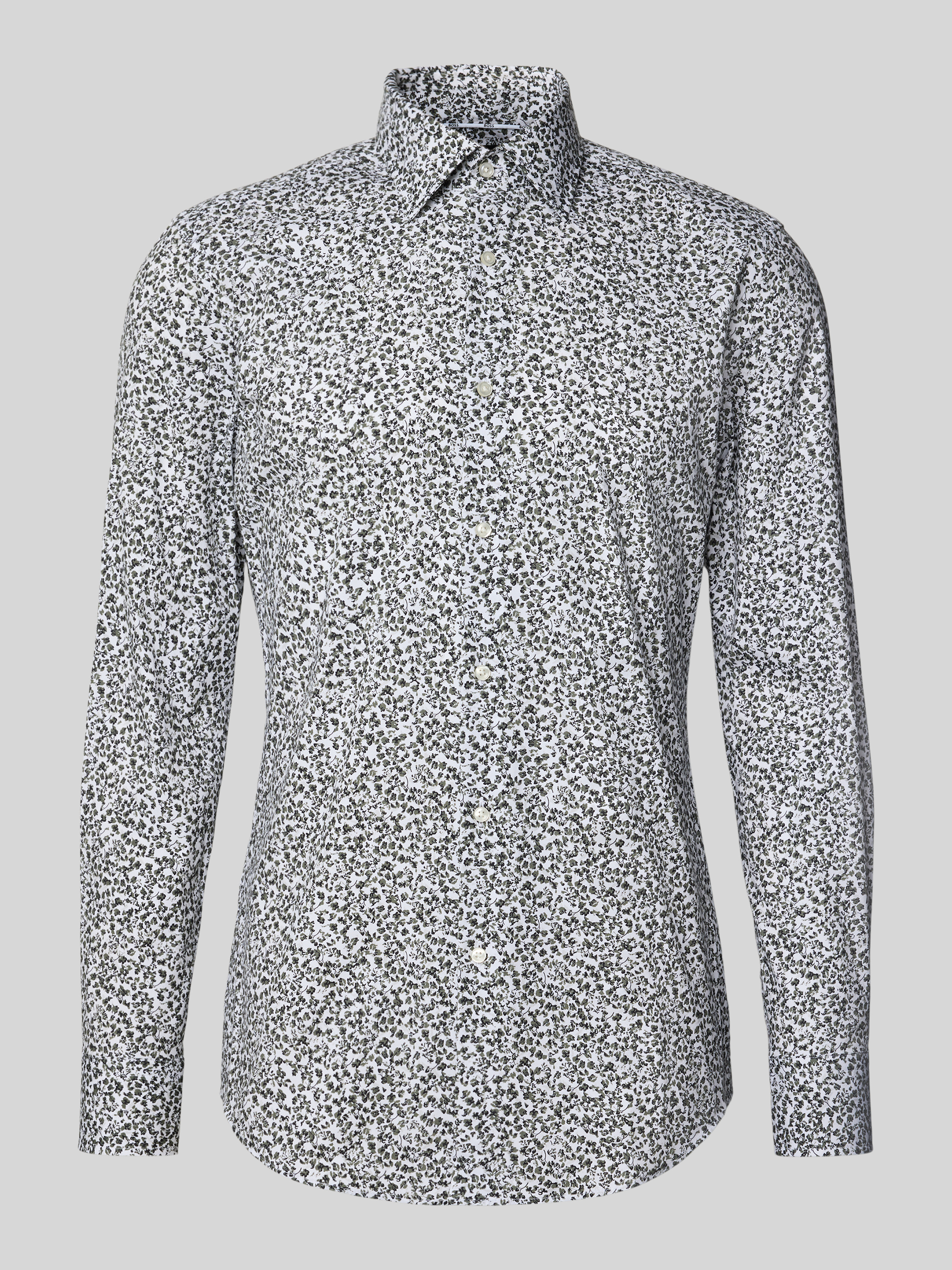 Das Slim Fit Hemd von BOSS mit floralem Allover-Muster vereint stilvolle Eleganz mit einem angenehmen Tragegefühl. Der Baumwoll-Mix sorgt für Komfort und Atmungsaktivität, während der Kentkragen eine klassische Note verleiht. Ideal für moderne Herren, die Wert auf zeitloses Design legen.