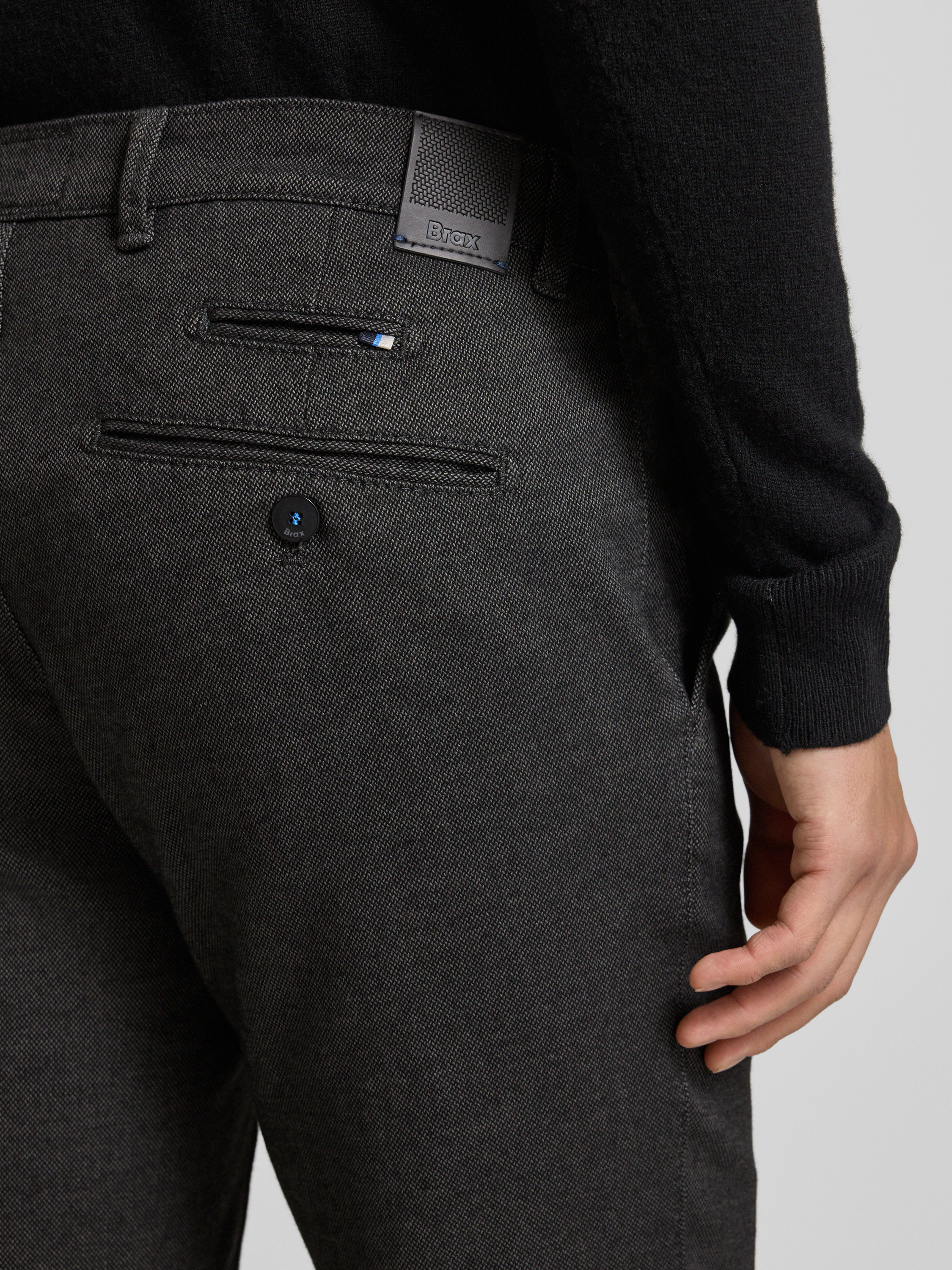 Die Herren Hose von Brax, Modell 'Fabio', fällt durch ihren schmalen Slim Fit-Schnitt auf, der modern wirkt und zugleich Bewegungsfreiheit lässt. Durch den Baumwoll-Mix mit Viskose-Anteil entsteht ein angenehmes Tragegefühl, das man sowohl im Alltag als auch bei besonderen Anlässen schätzt. Eine dezente Paspeltasche ergänzt das zurückhaltende Design auf praktische Weise und sorgt für einen stimmigen Gesamteindruck.