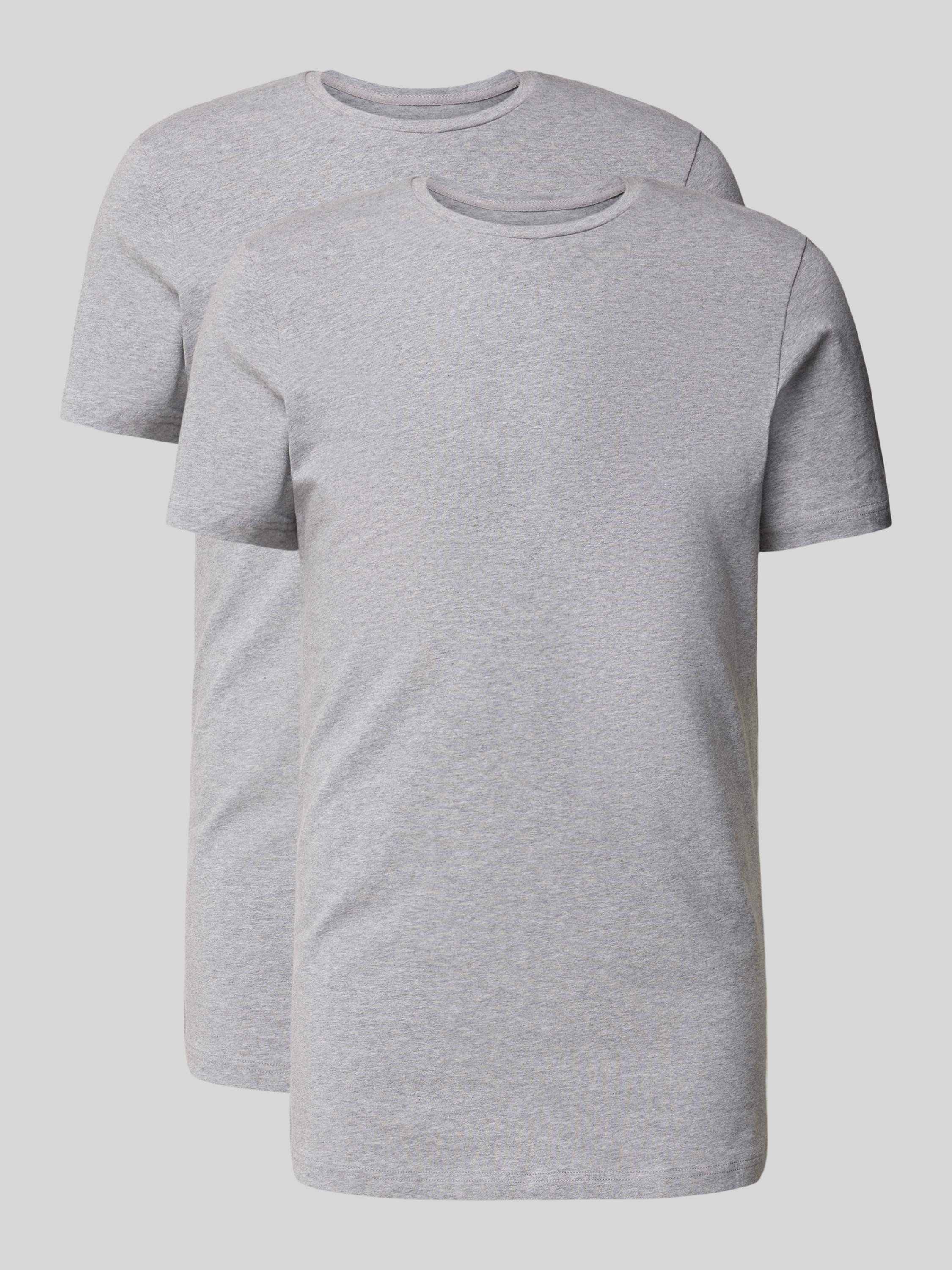 • Bread & Boxers T-Shirt mit geripptem Rundhalsausschnitt Hellgrau Melange