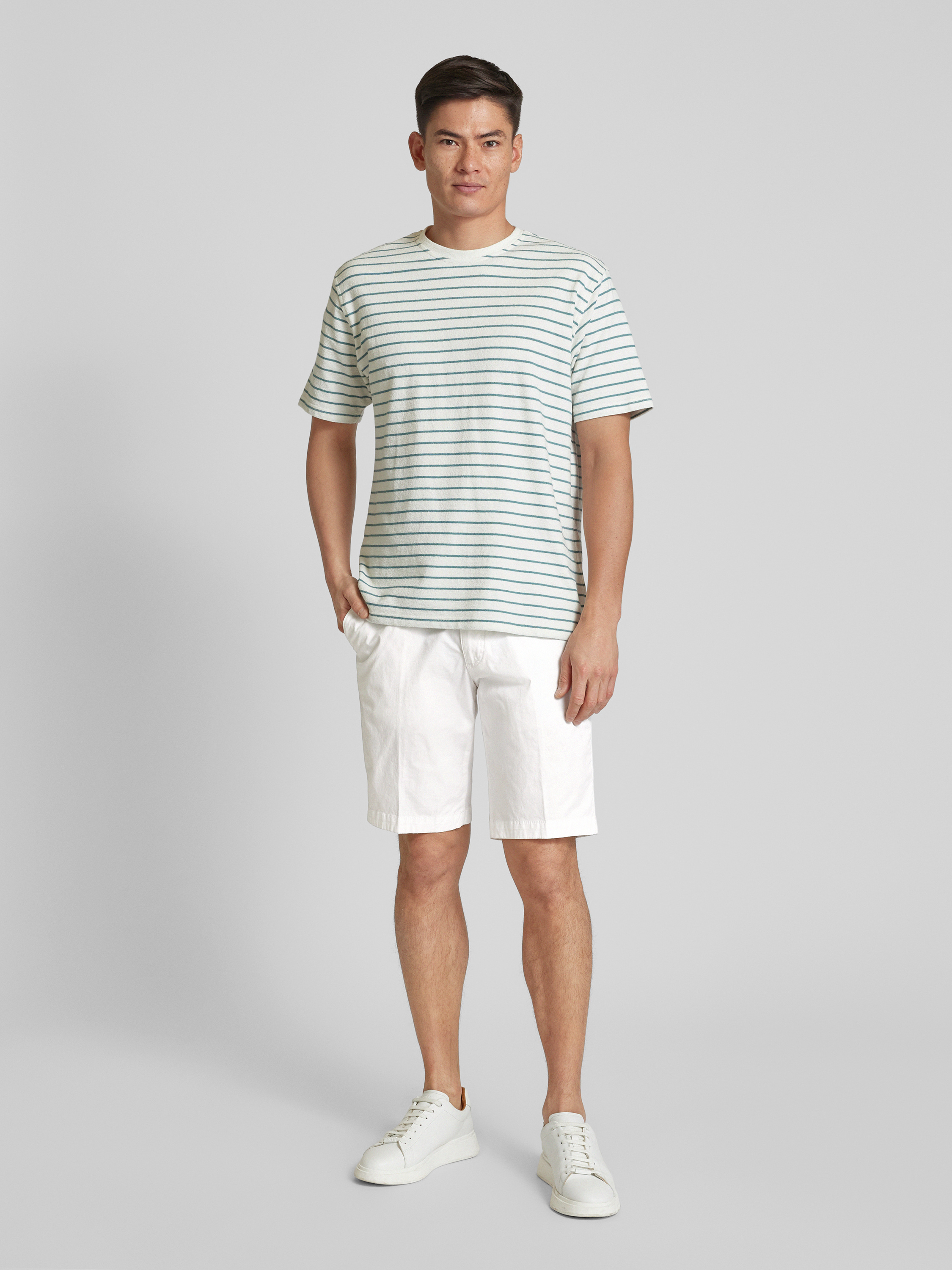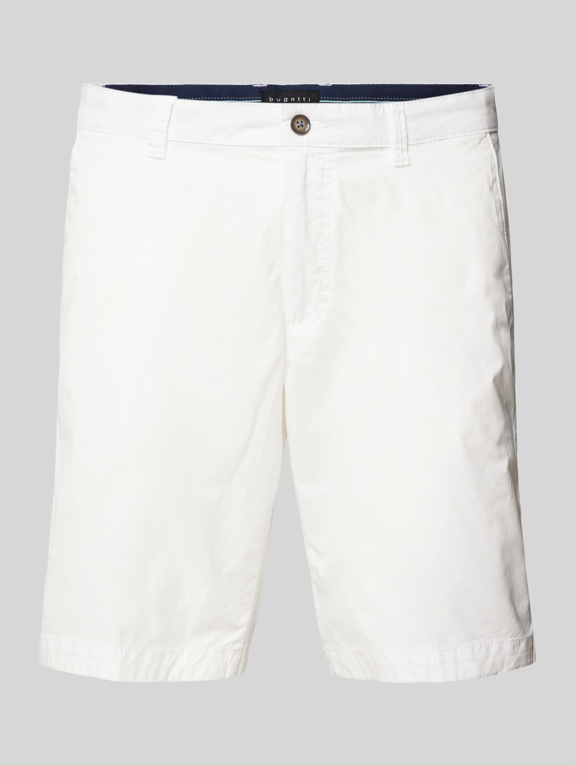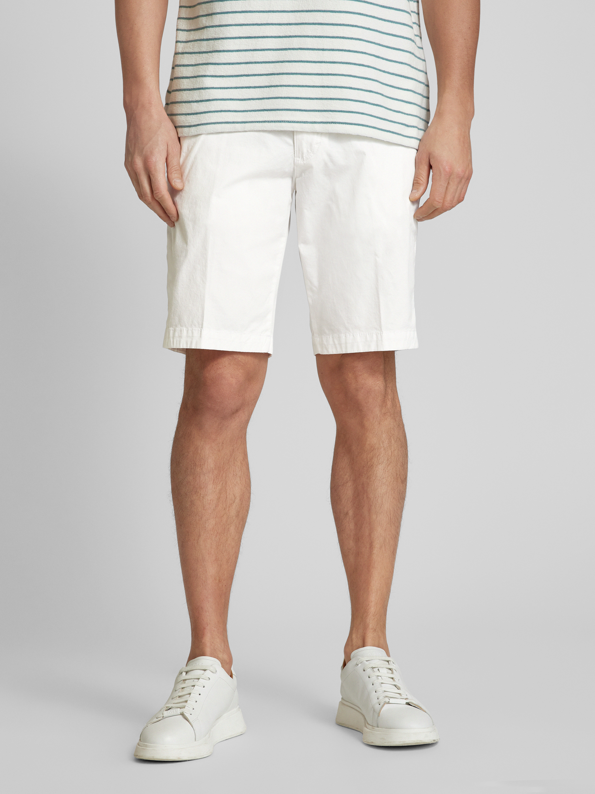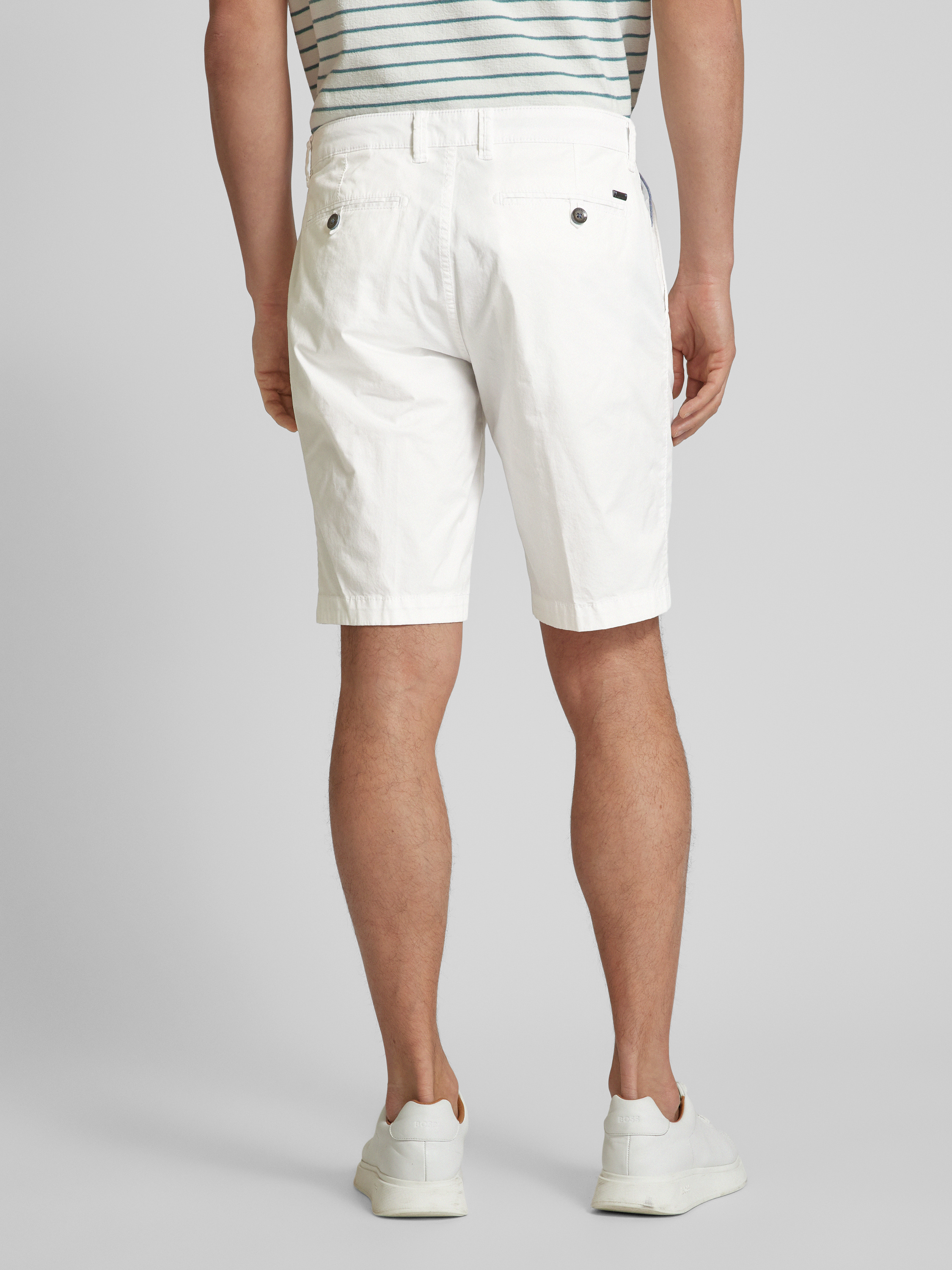 Die Bermudas von bugatti, gefertigt aus einem hochwertigen Baumwoll-Elasthan-Mix, bieten eine angenehme Kombination aus Komfort und Bewegungsfreiheit. Der gerade Schnitt sorgt für eine lässige Passform, während die französischen Eingrifftaschen praktisch und stilvoll zugleich sind. Unifarben gehalten, lassen sie sich vielseitig kombinieren.